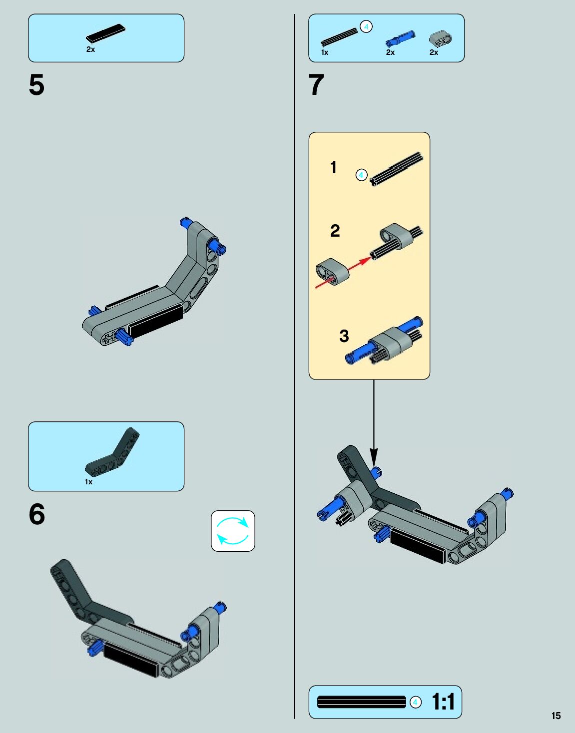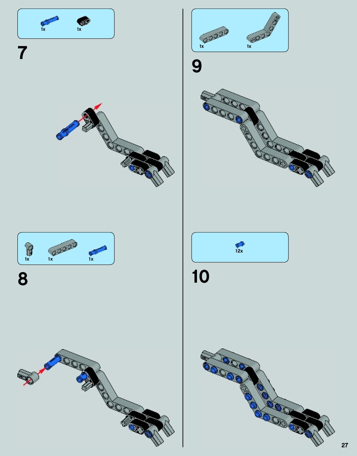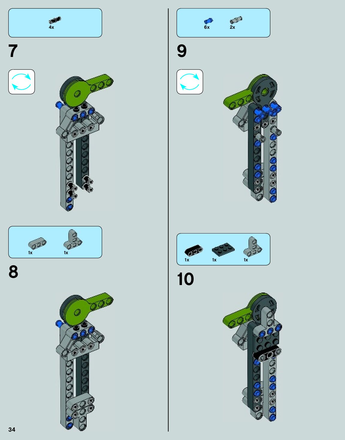 The assembly guide is prepared in a very understandable way for children and adult LEGO enthusiasts. A total of 104 picture galleries are shown, explaining the step-by-step construction stages for 2 different structures.
