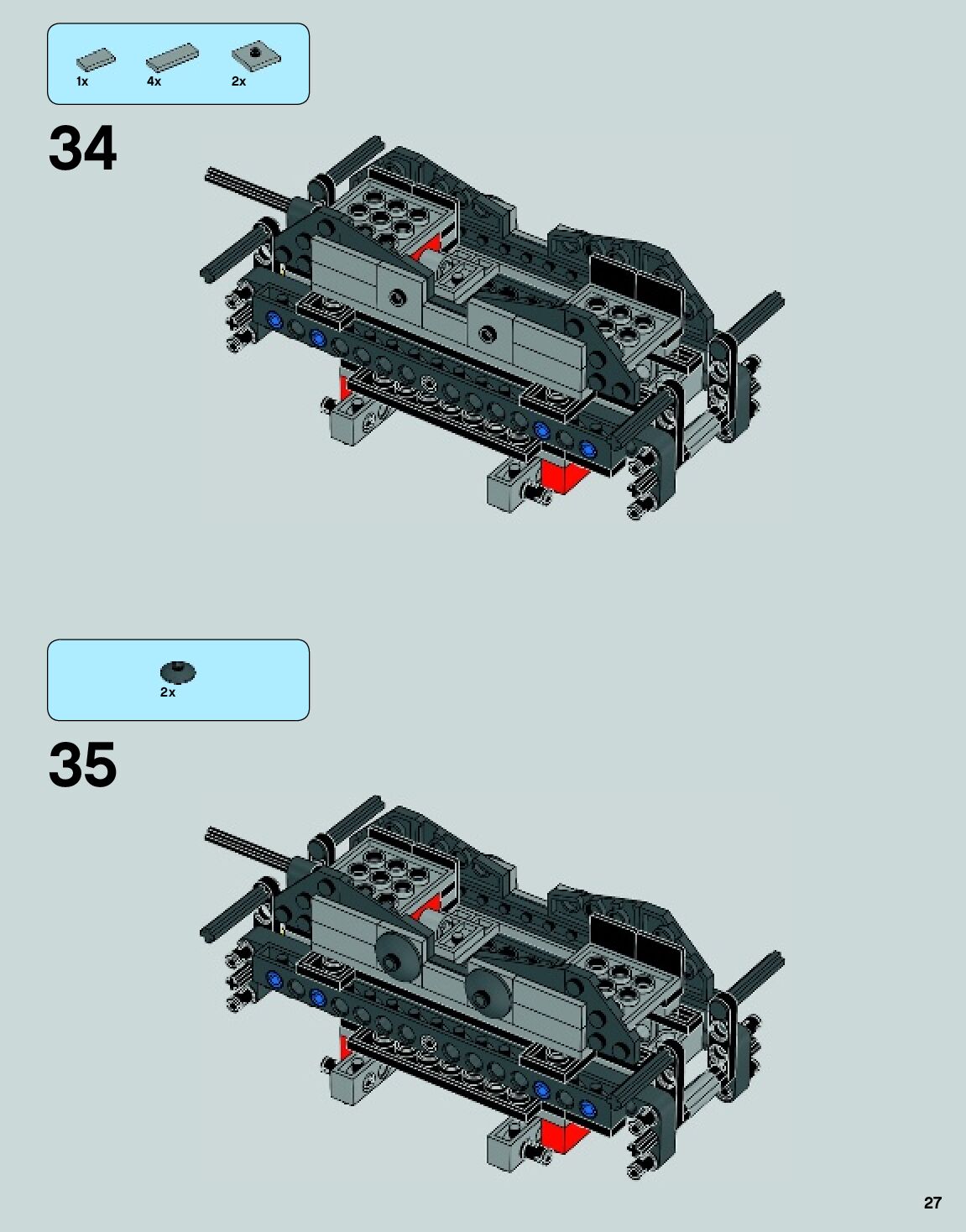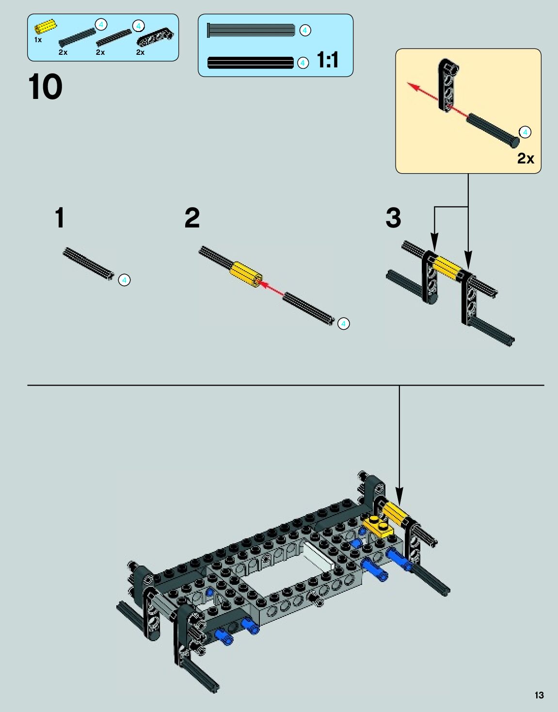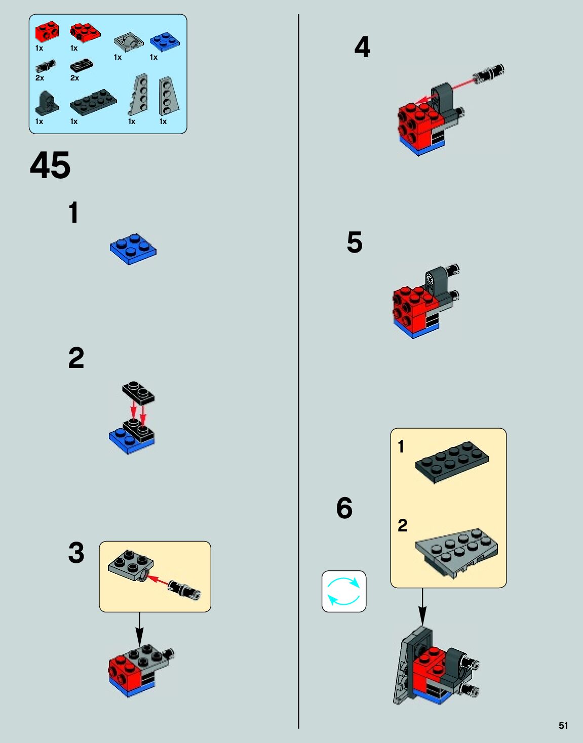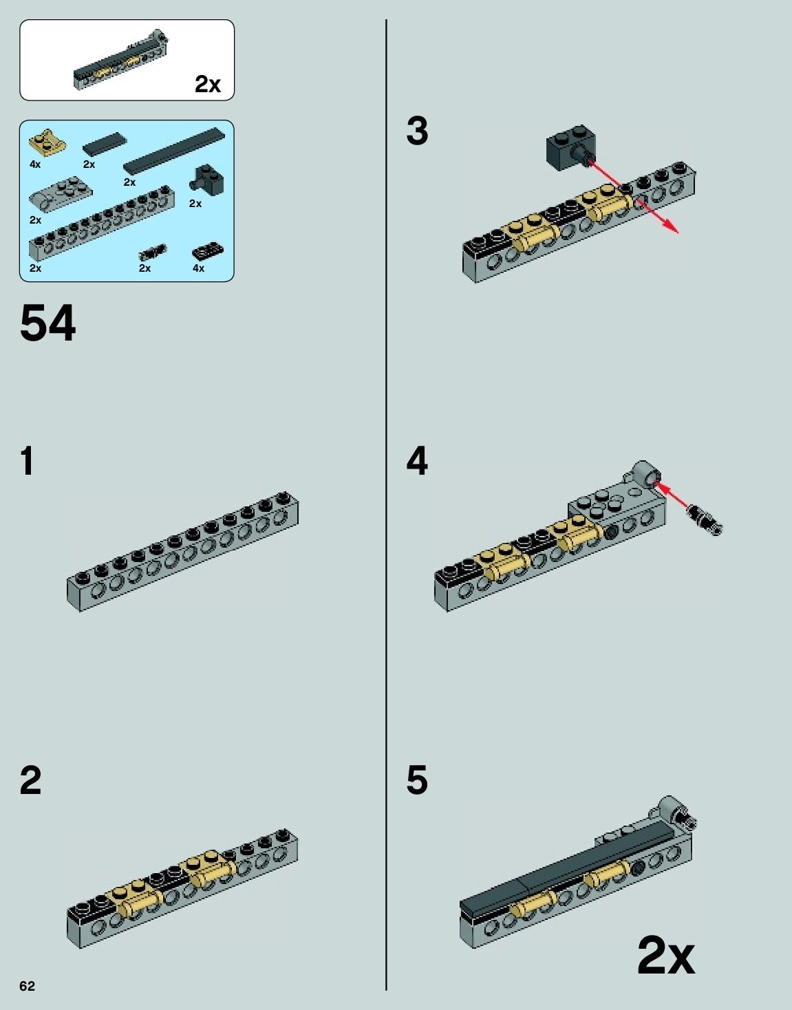 The assembly guide is prepared in a very understandable way for children and adult LEGO enthusiasts. A total of 140 picture galleries are shown, explaining the step-by-step construction stages for 2 different structures.
