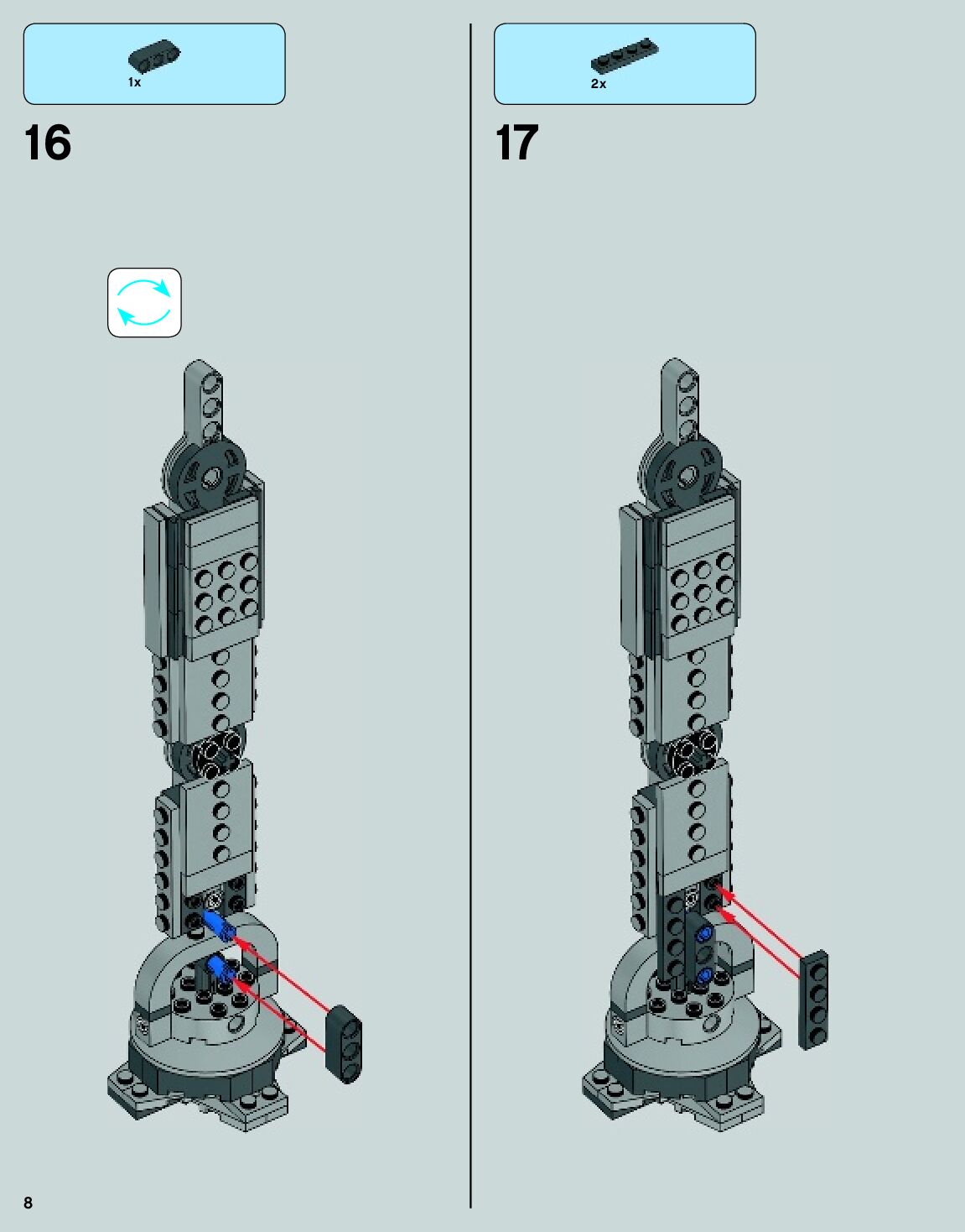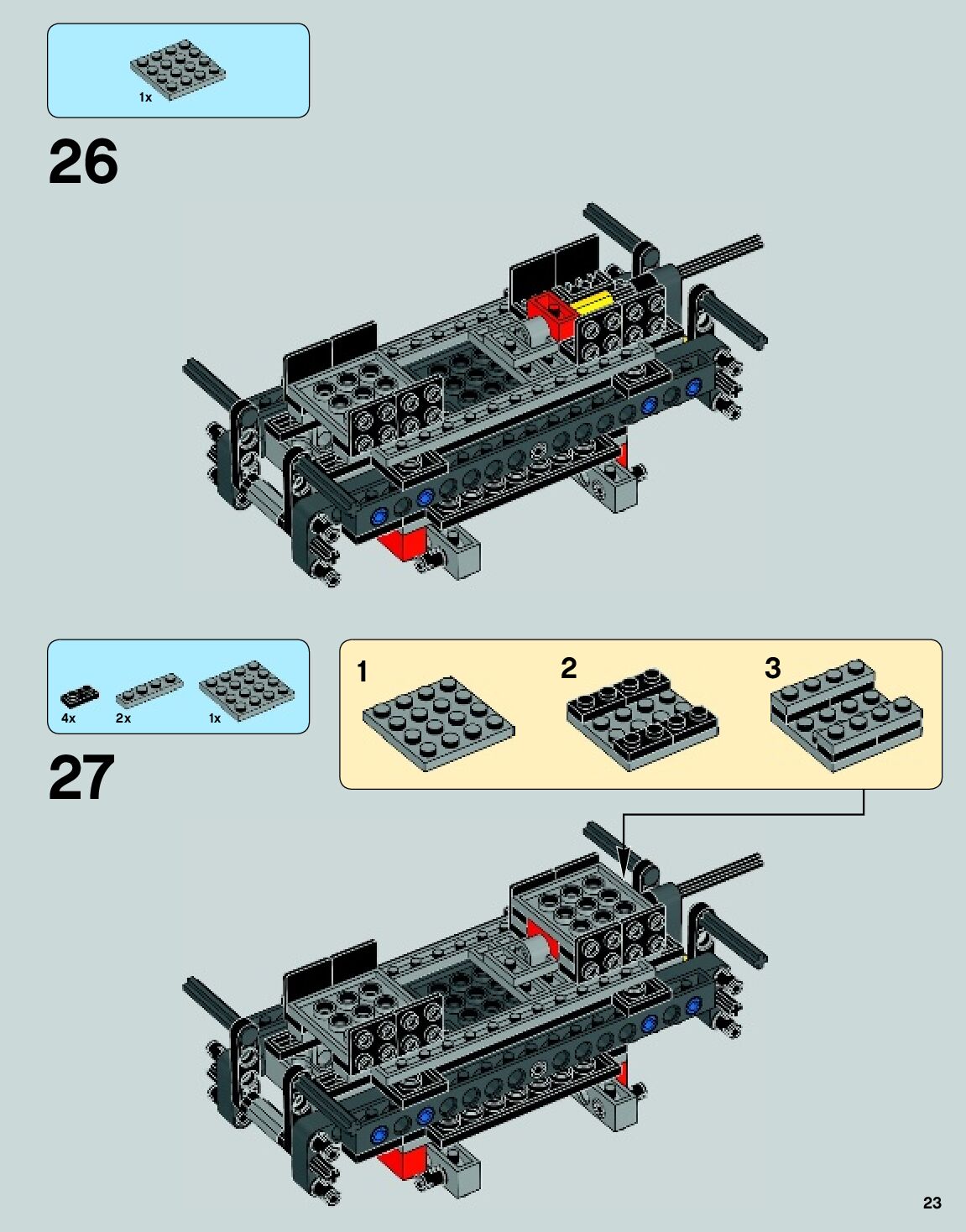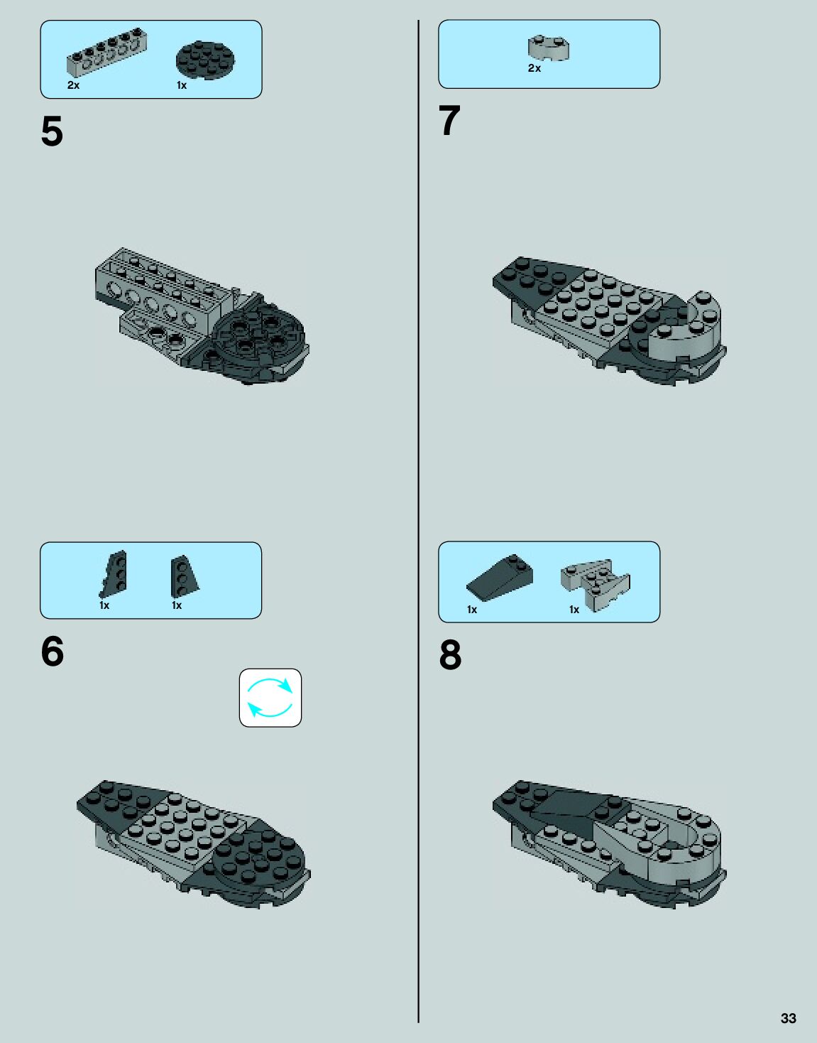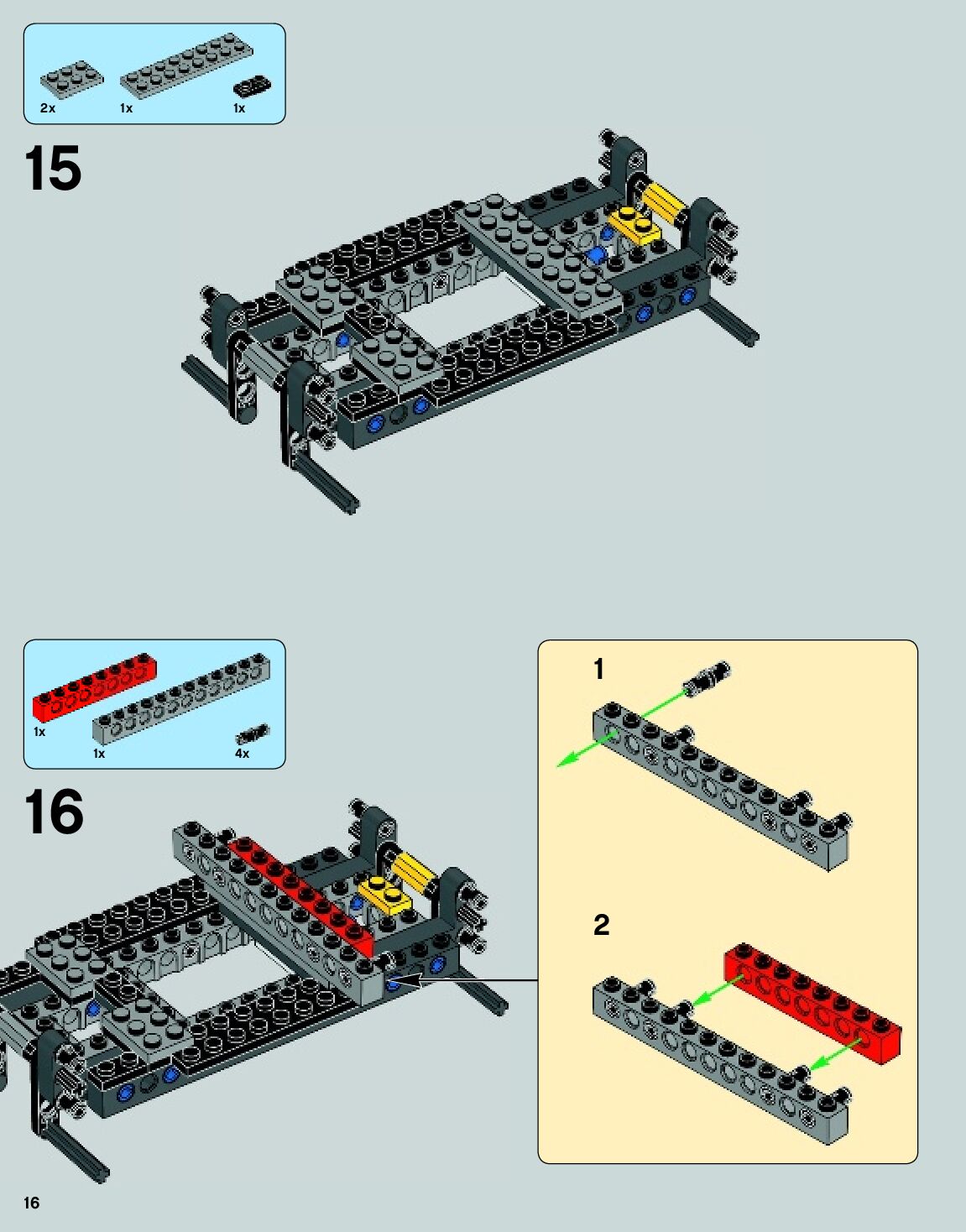The assembly guide is prepared in a very understandable way for children and adult LEGO enthusiasts. A total of 140 picture galleries are shown, explaining the step-by-step construction stages for 2 different structures.