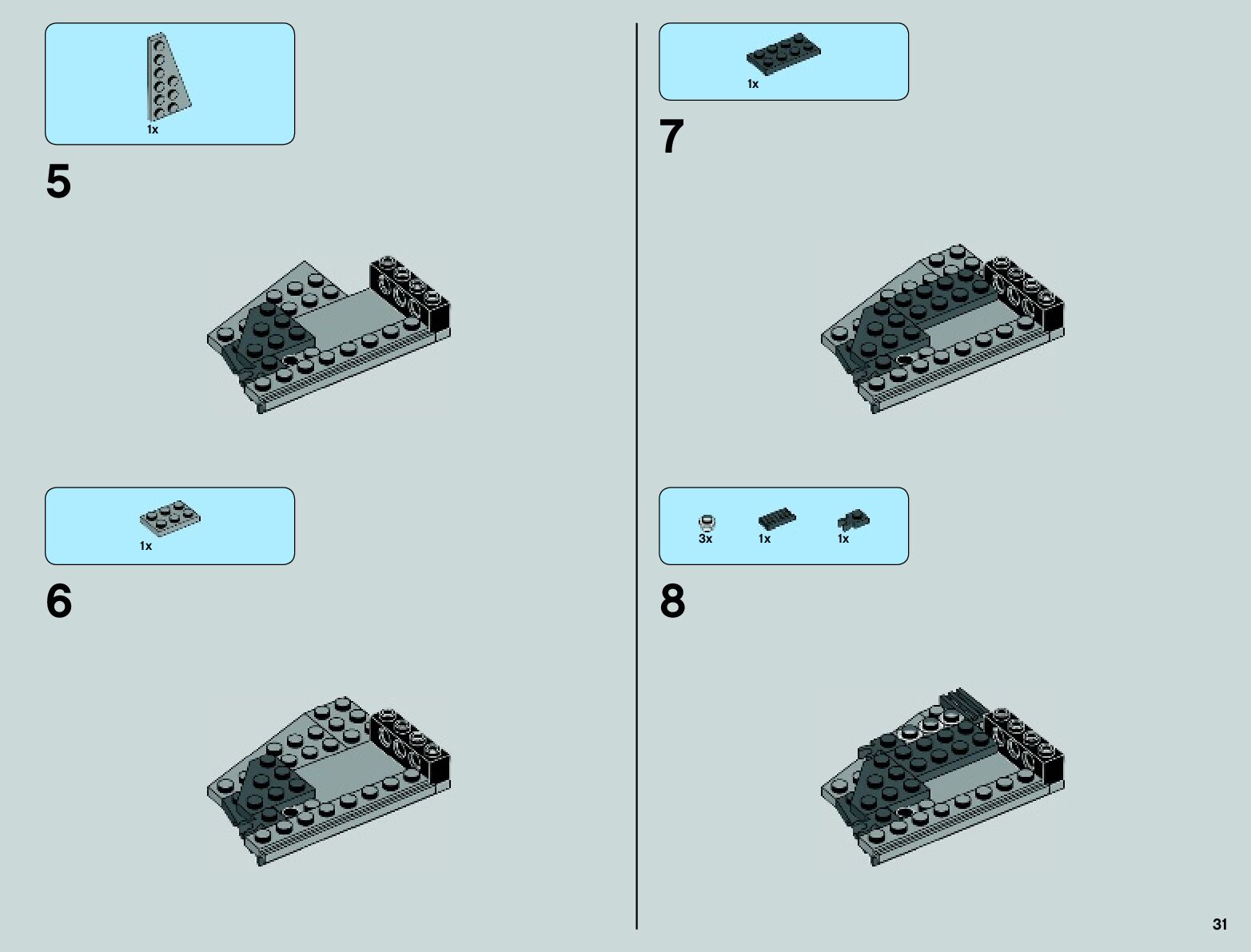 The assembly guide is prepared in a very understandable way for children and adult LEGO enthusiasts. A total of 240 picture galleries are shown, explaining the step-by-step construction stages for 3 different structures.