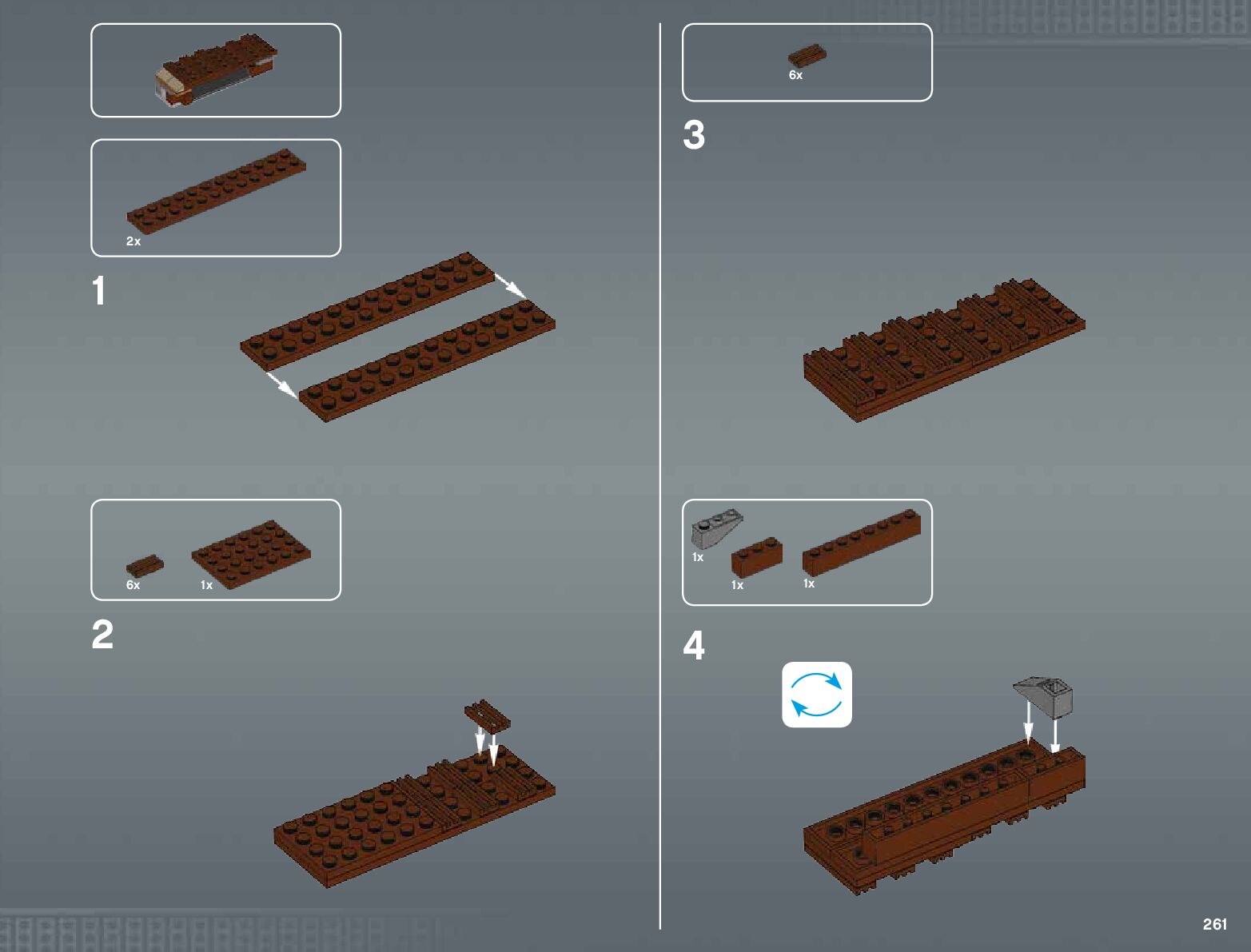 The assembly guide is prepared in a very understandable way for children and adult LEGO enthusiasts. A total of 308 picture galleries are shown, explaining the step-by-step construction stages for 1 different structures.