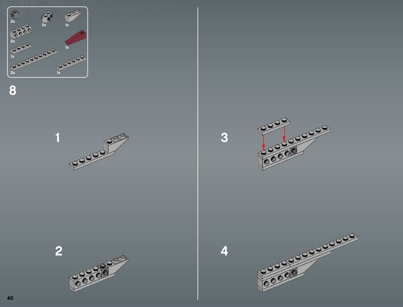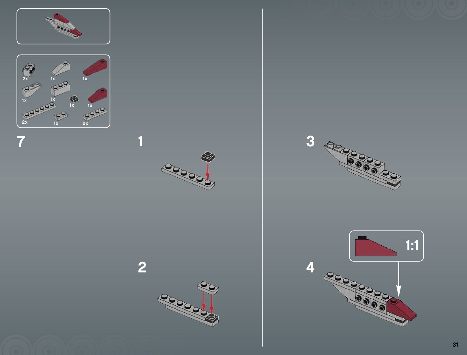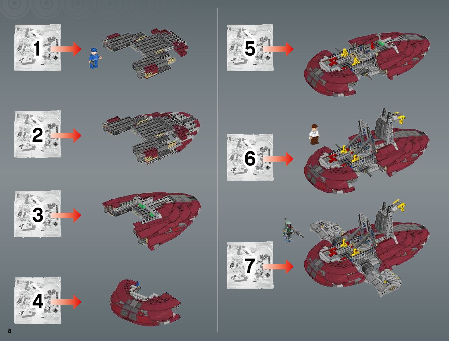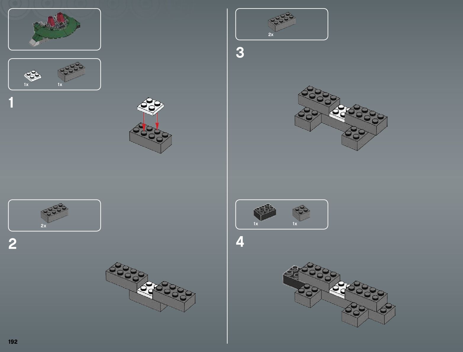 The assembly guide is prepared in a very understandable way for children and adult LEGO enthusiasts. A total of 300 picture galleries are shown, explaining the step-by-step construction stages for 1 different structures.