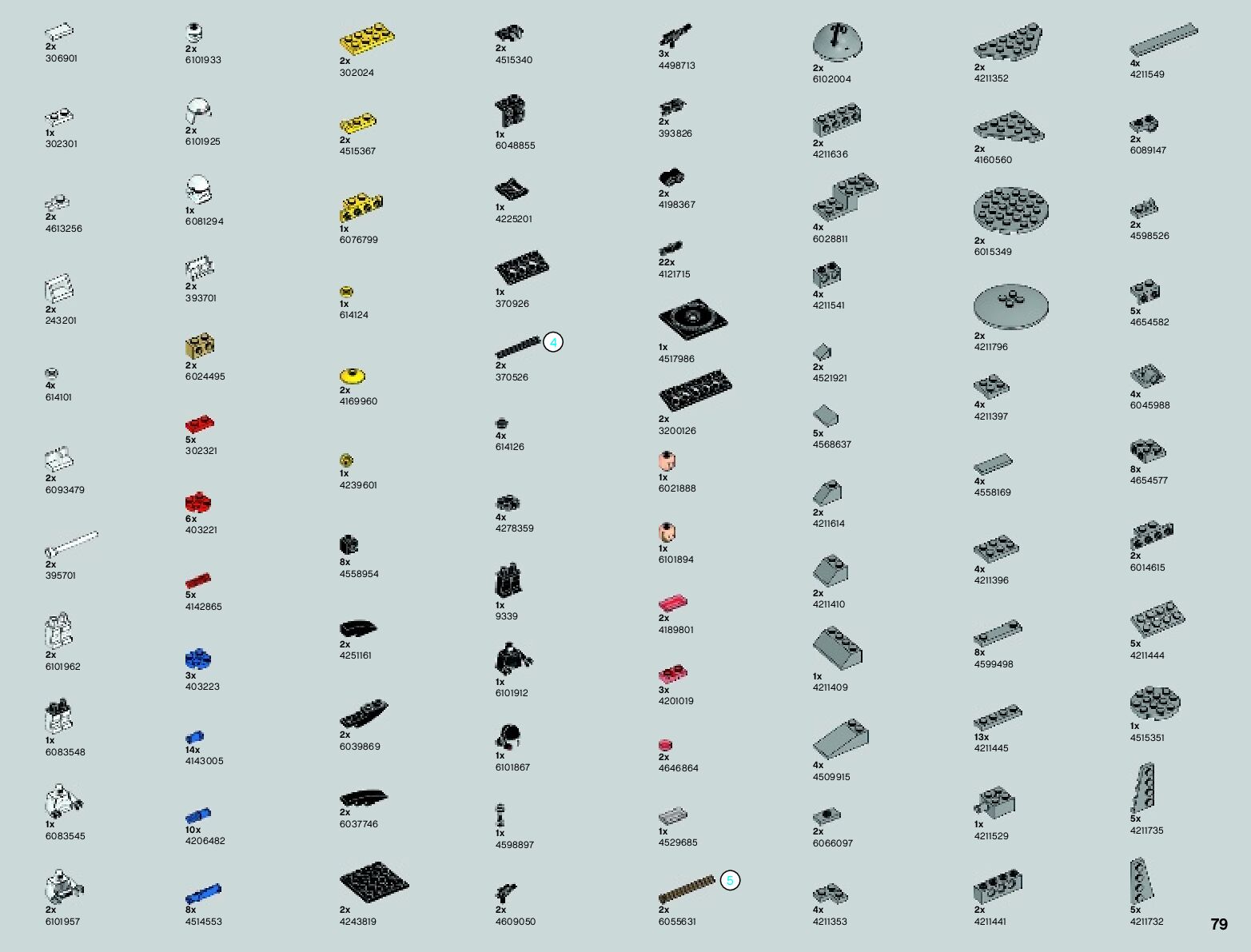 The assembly guide is prepared in a very understandable way for children and adult LEGO enthusiasts. A total of 84 picture galleries are shown, explaining the step-by-step construction stages for 1 different structures.