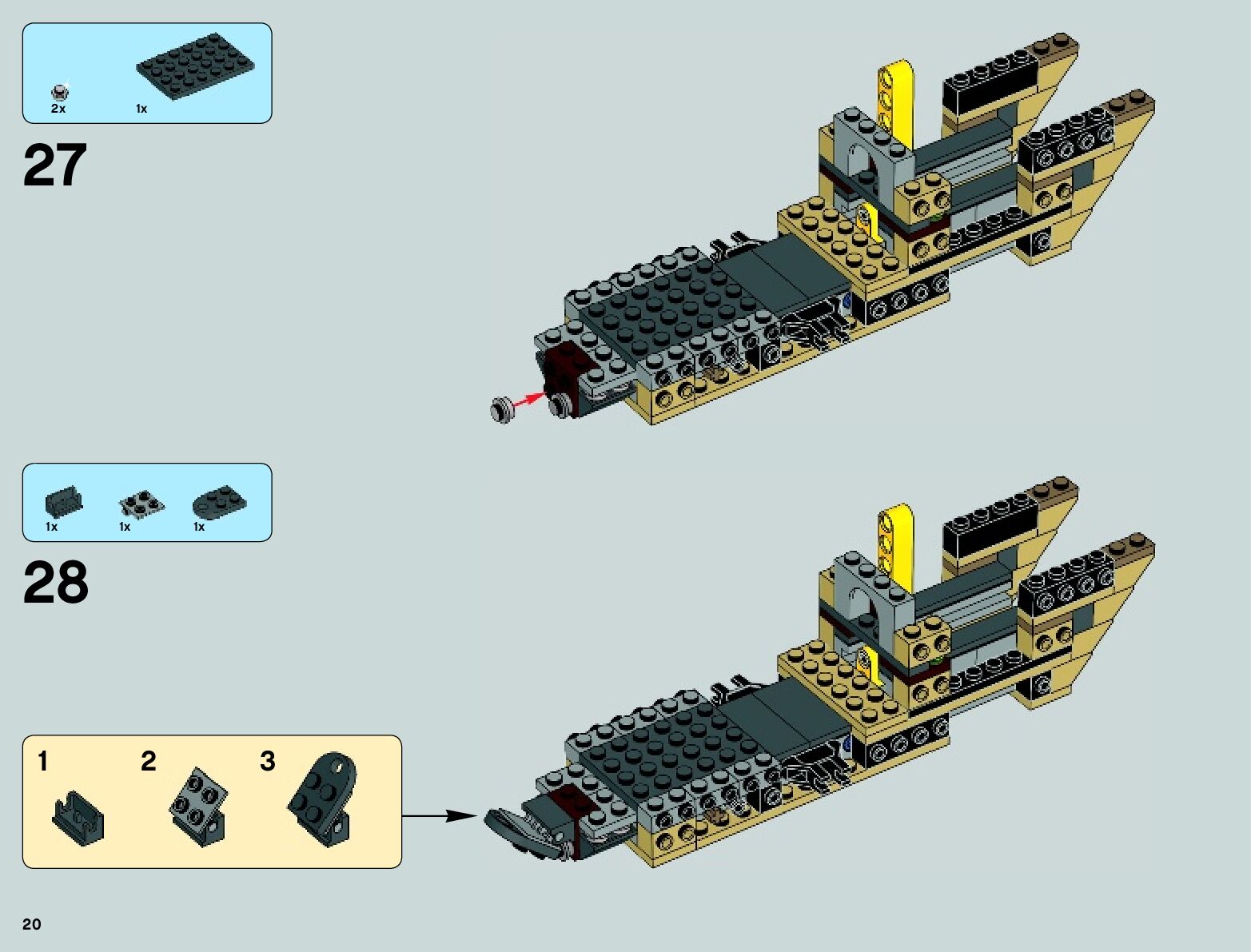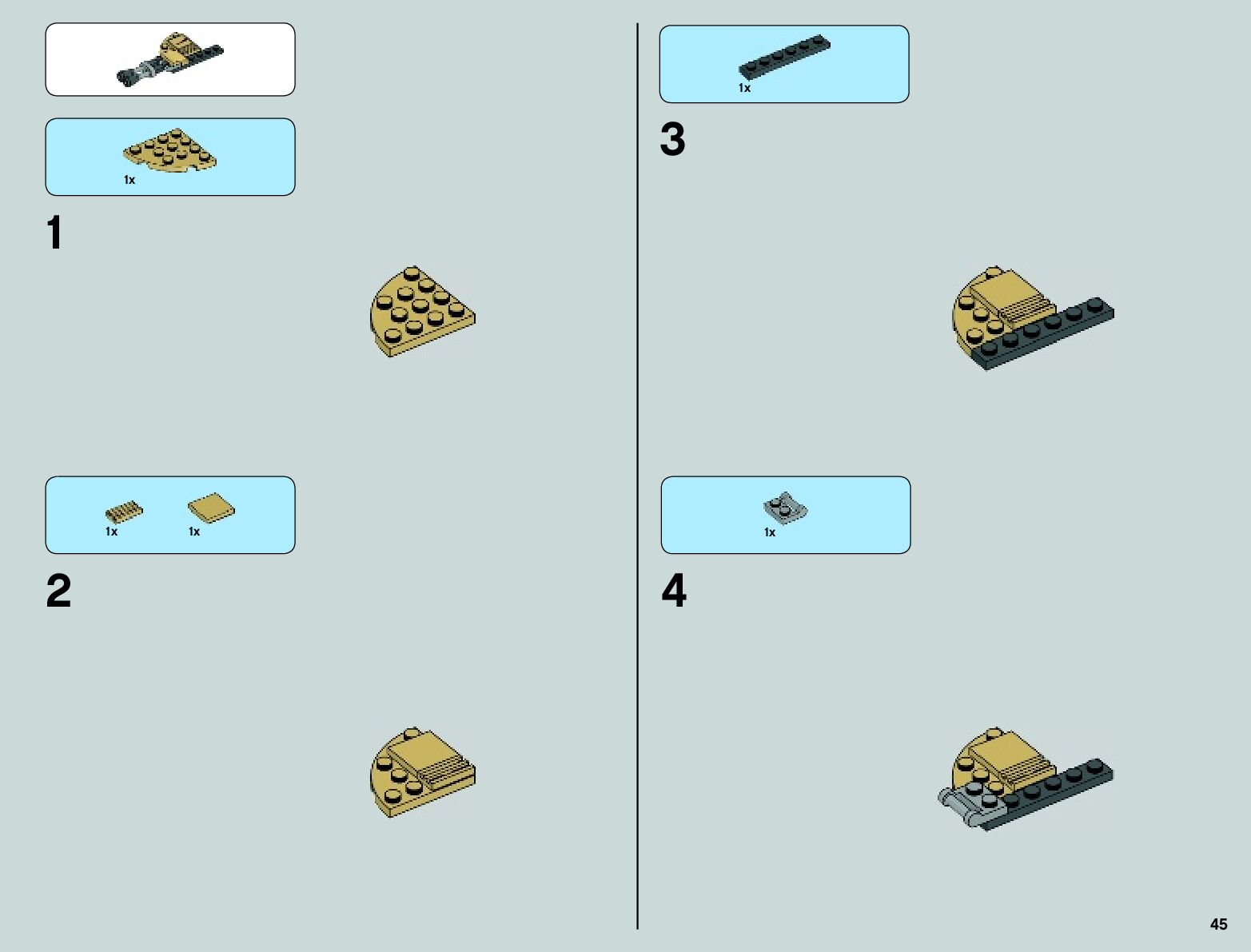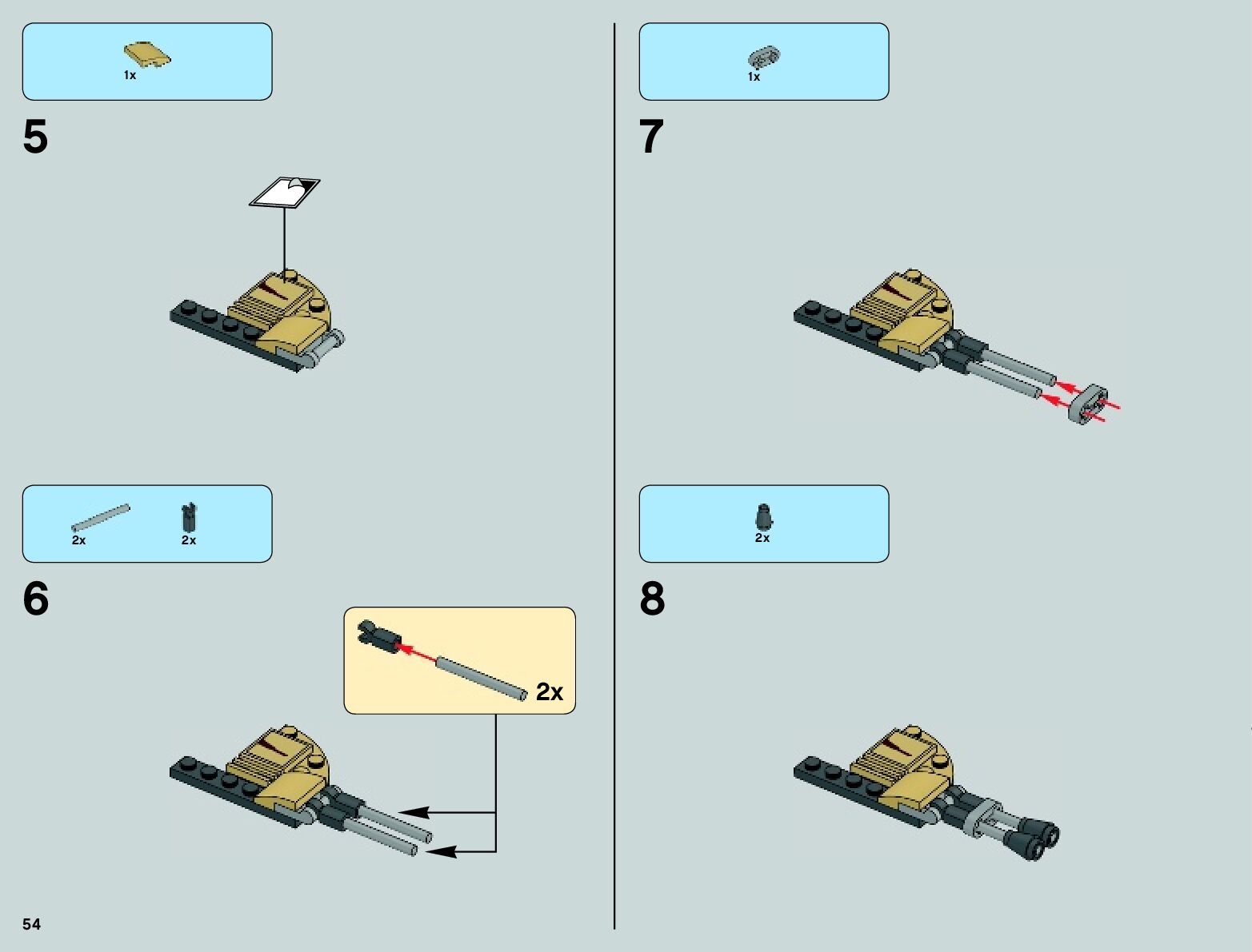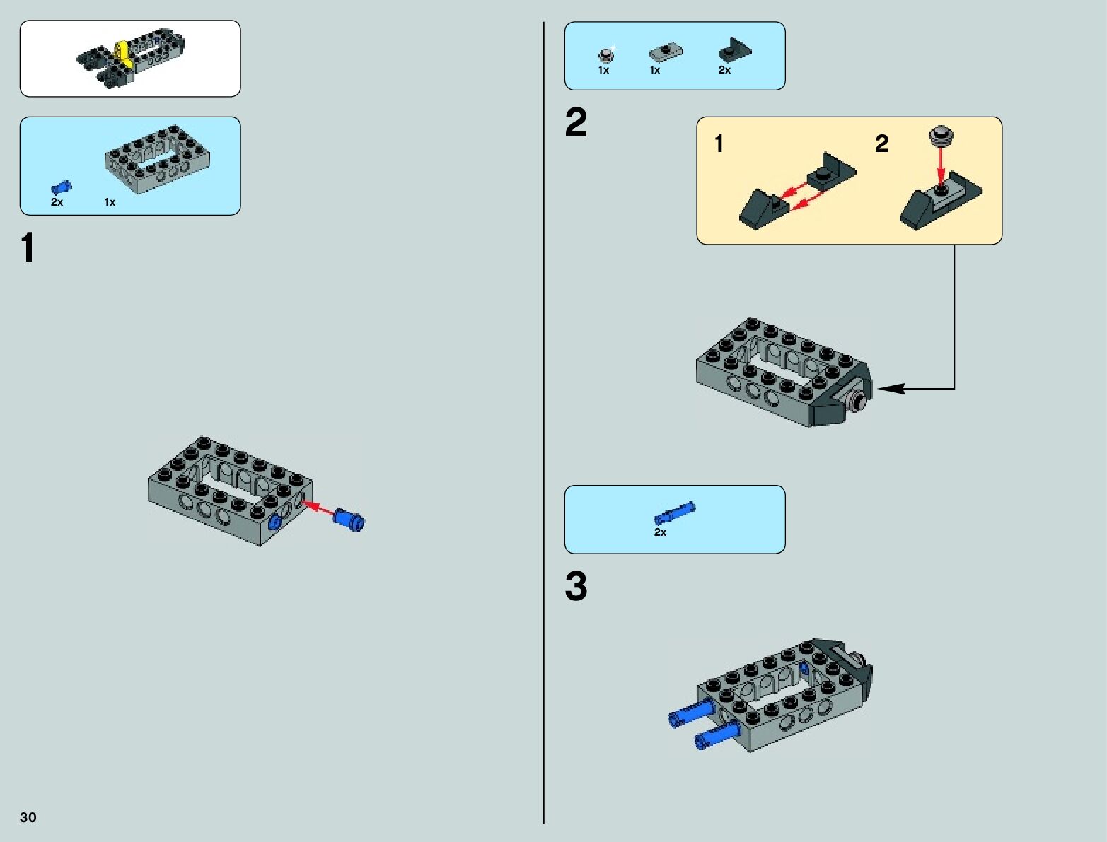 The assembly guide is prepared in a very understandable way for children and adult LEGO enthusiasts. A total of 100 picture galleries are shown, explaining the step-by-step construction stages for 2 different structures.