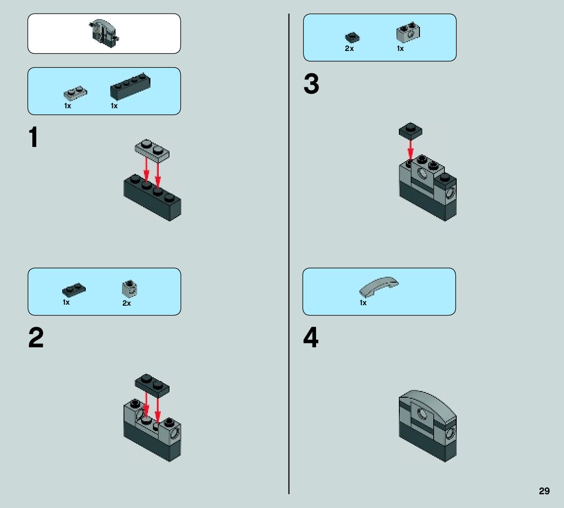 The assembly guide is prepared in a very understandable way for children and adult LEGO enthusiasts. A total of 72 picture galleries are shown, explaining the step-by-step construction stages for 1 different structures.