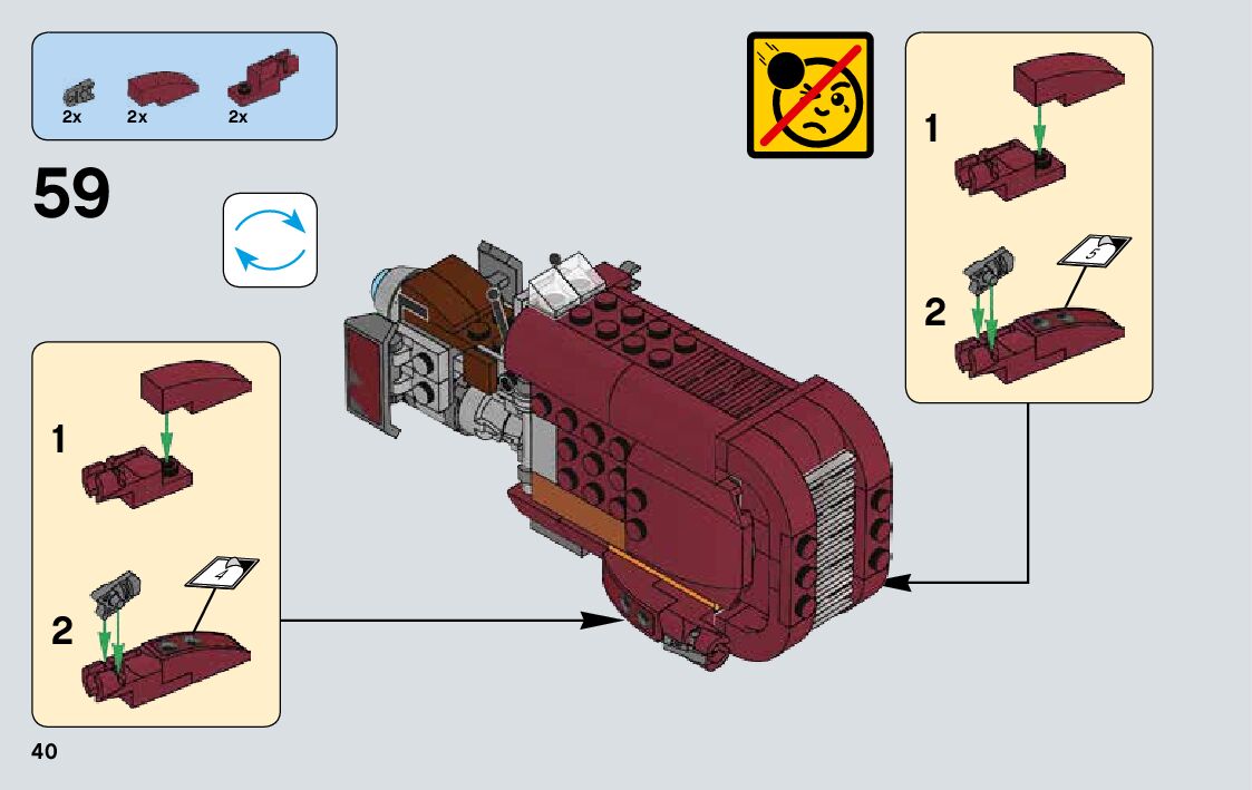 This page shares information about LEGO 75099 Rey's Speeder manual, LEGO 75099 PDF instructions, LEGO 75099 Rey's Speeder building guide online, How to build 75099 Rey's Speeder LEGO.
