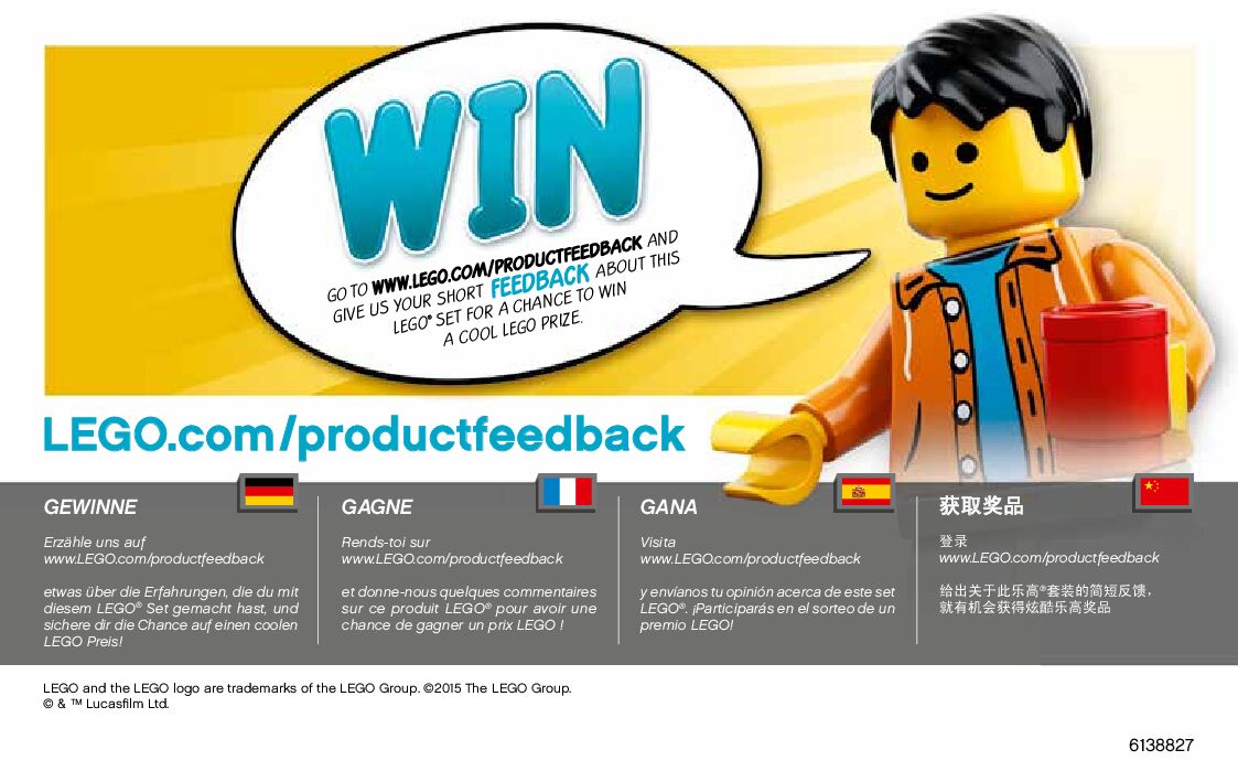 On this page you can find the original construction manual for the LEGO 75099 set. With the assembly manual you can easily learn how to build the 75099 Rey's Speeder step by step. The set was released in 2015.