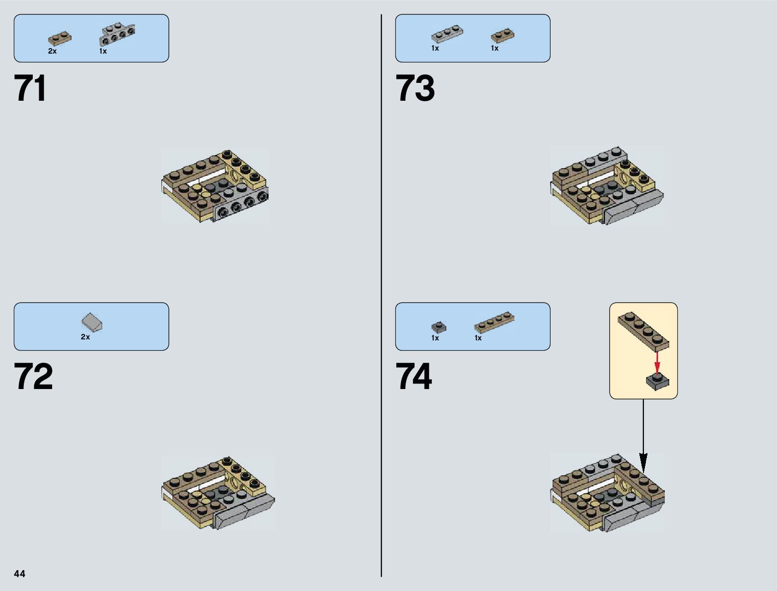 The assembly guide is prepared in a very understandable way for children and adult LEGO enthusiasts. A total of 84 picture galleries are shown, explaining the step-by-step construction stages for 1 different structures.