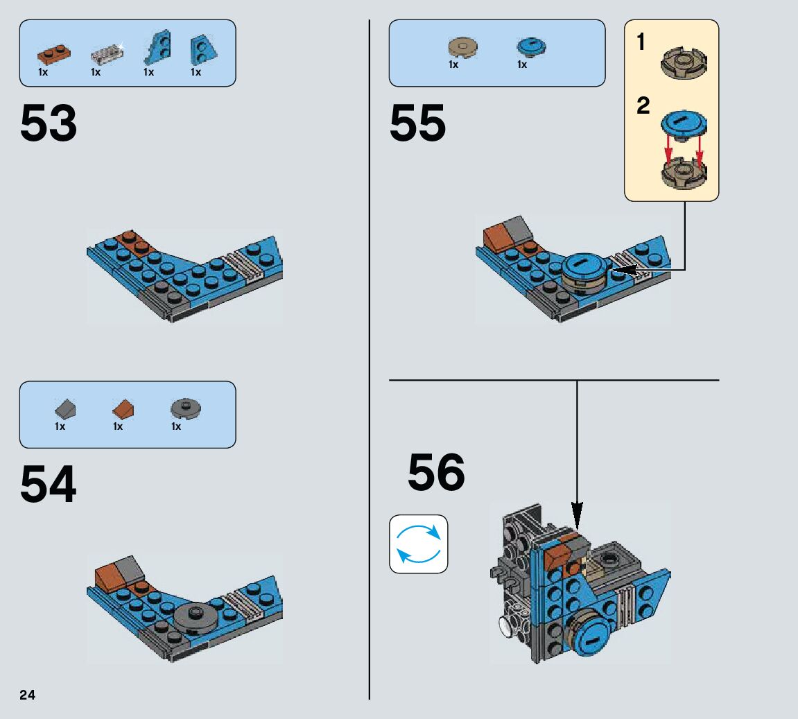 The assembly guide is prepared in a very understandable way for children and adult LEGO enthusiasts. A total of 100 picture galleries are shown, explaining the step-by-step construction stages for 1 different structures.