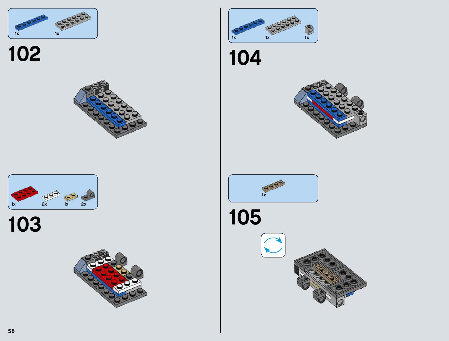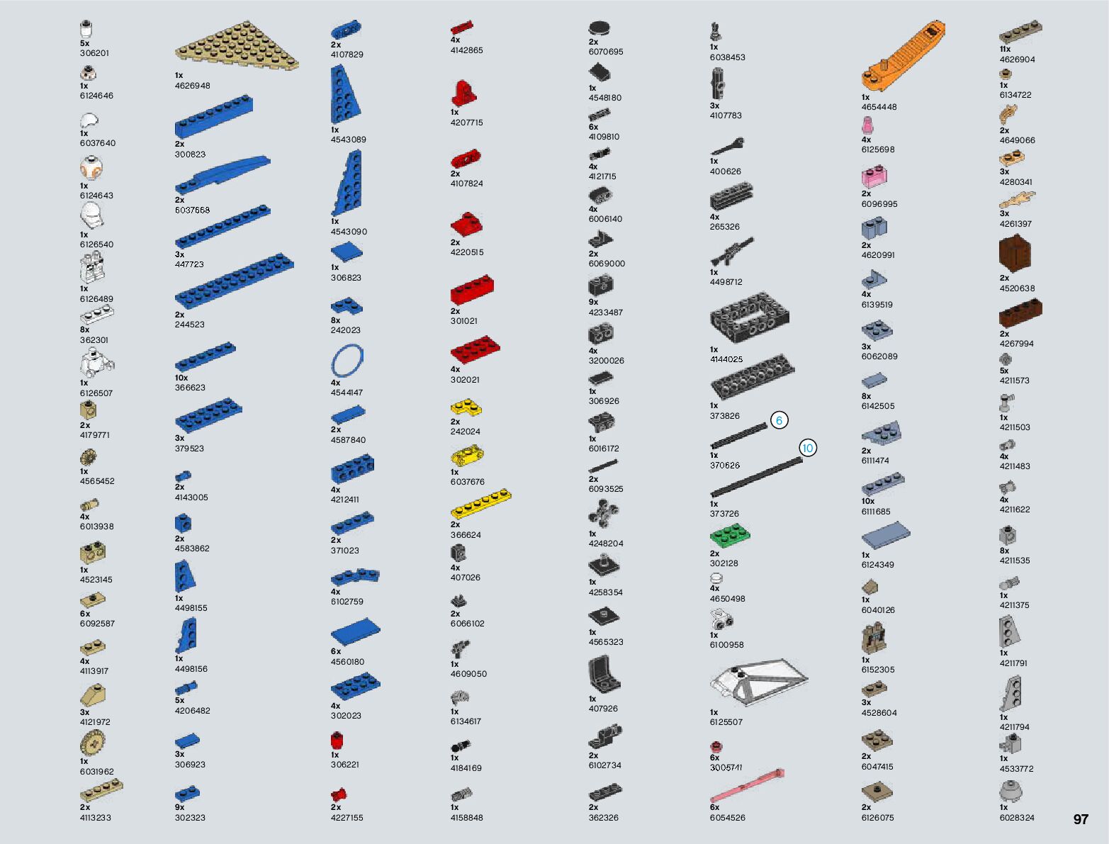 The assembly guide is prepared in a very understandable way for children and adult LEGO enthusiasts. A total of 104 picture galleries are shown, explaining the step-by-step construction stages for 1 different structures.