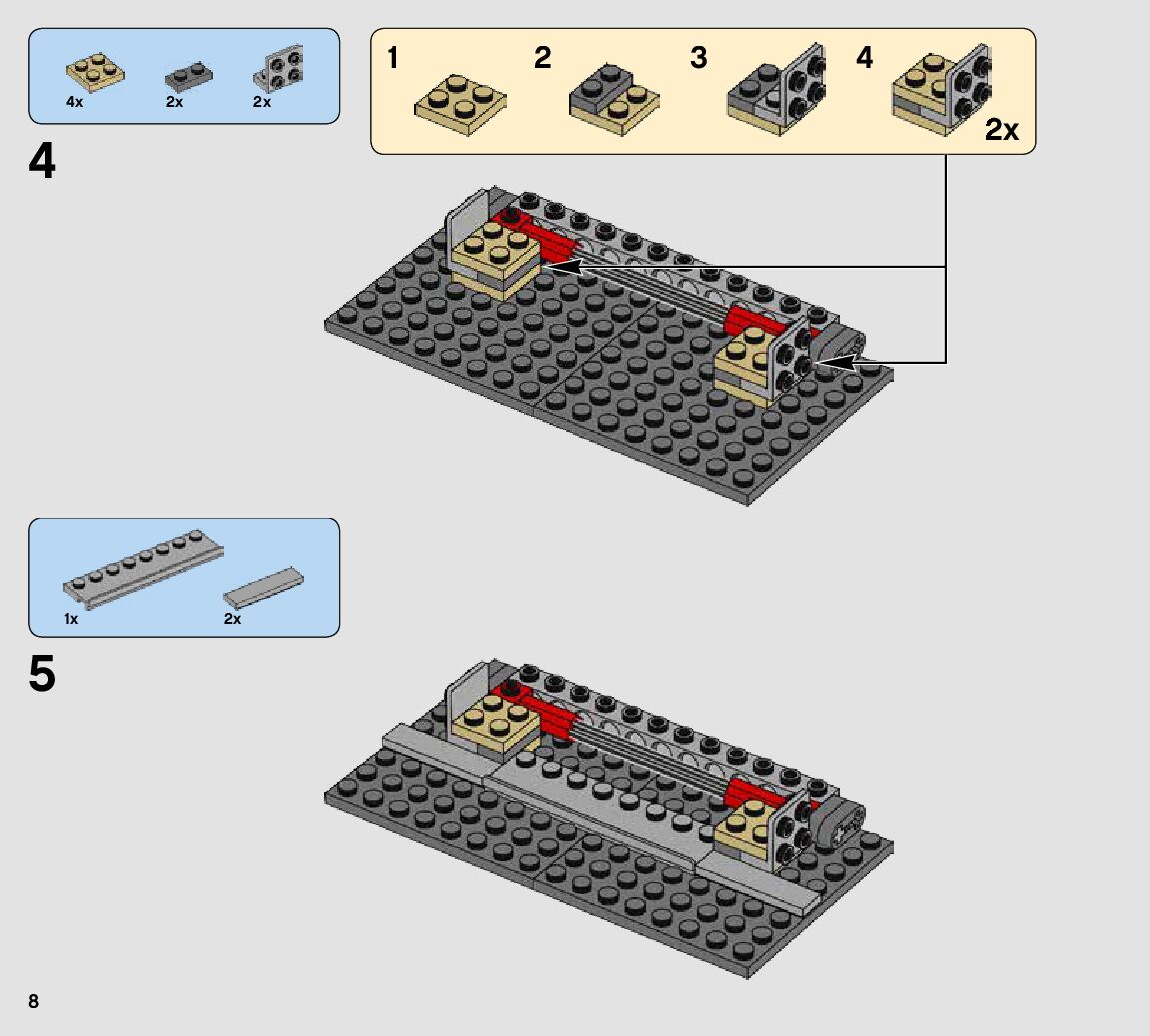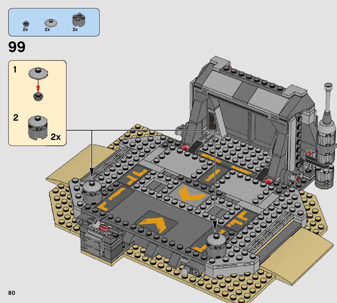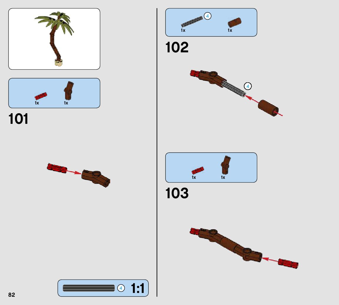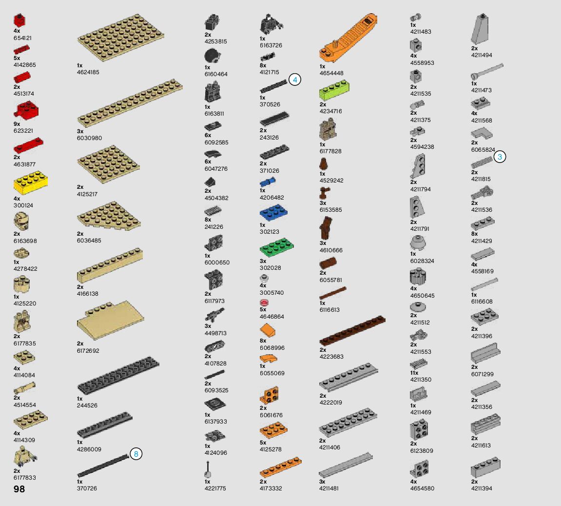 The assembly guide is prepared in a very understandable way for children and adult LEGO enthusiasts. A total of 100 picture galleries are shown, explaining the step-by-step construction stages for 1 different structures.
