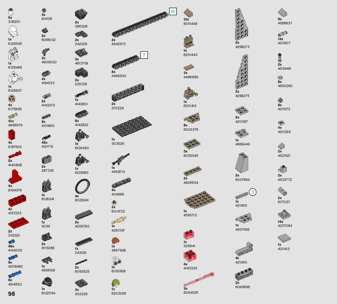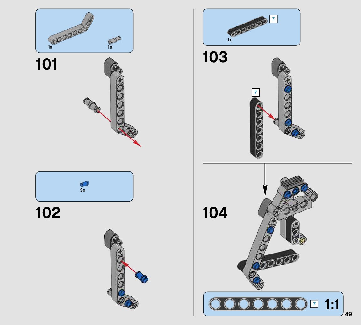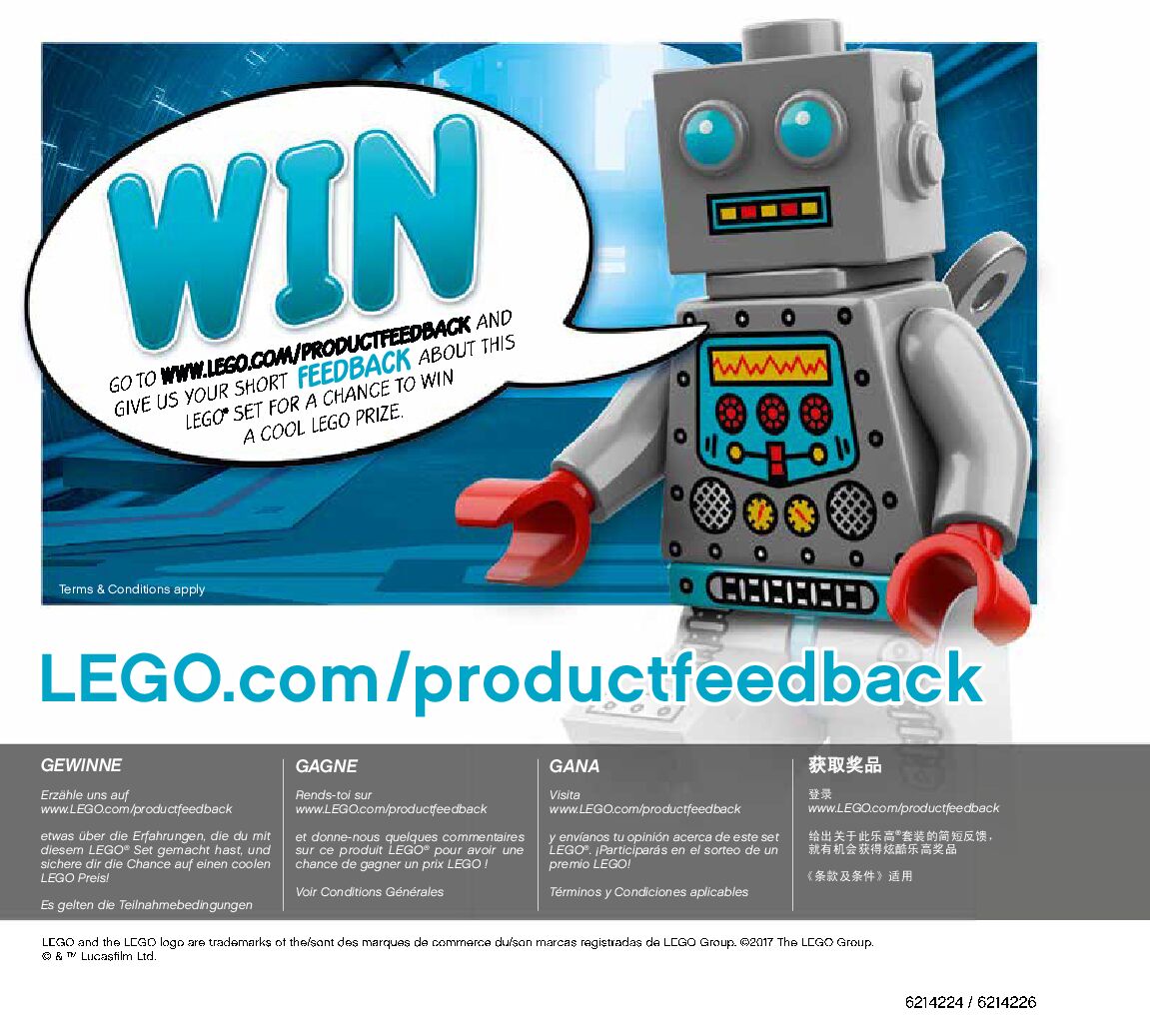 The assembly guide is prepared in a very understandable way for children and adult LEGO enthusiasts. A total of 100 picture galleries are shown, explaining the step-by-step construction stages for 1 different structures.