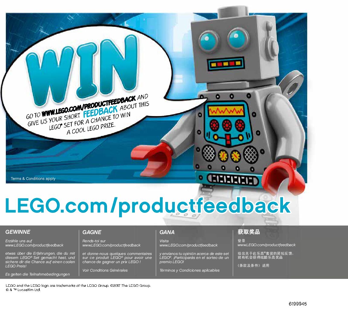 The assembly guide is prepared in a very understandable way for children and adult LEGO enthusiasts. A total of 100 picture galleries are shown, explaining the step-by-step construction stages for 1 different structures.