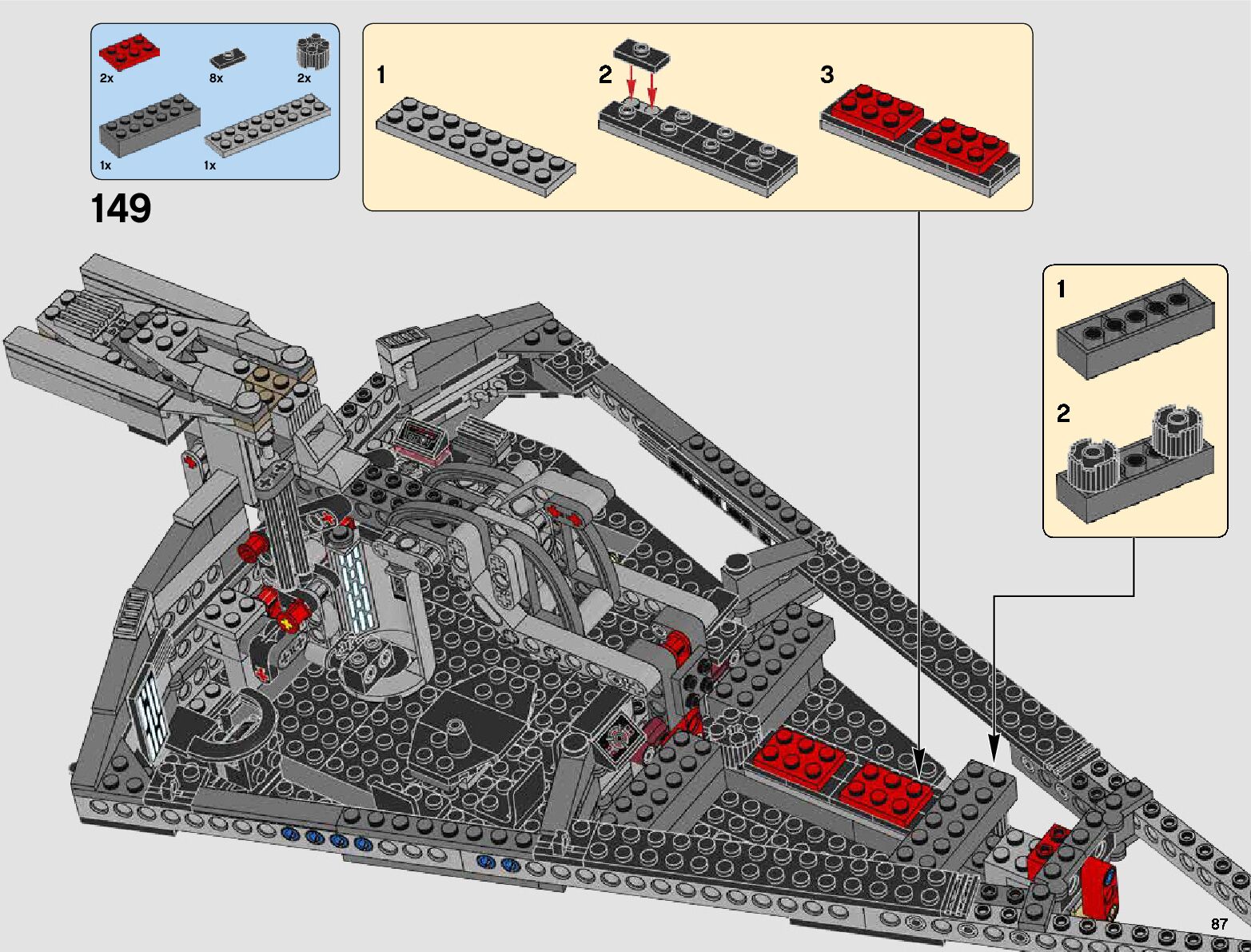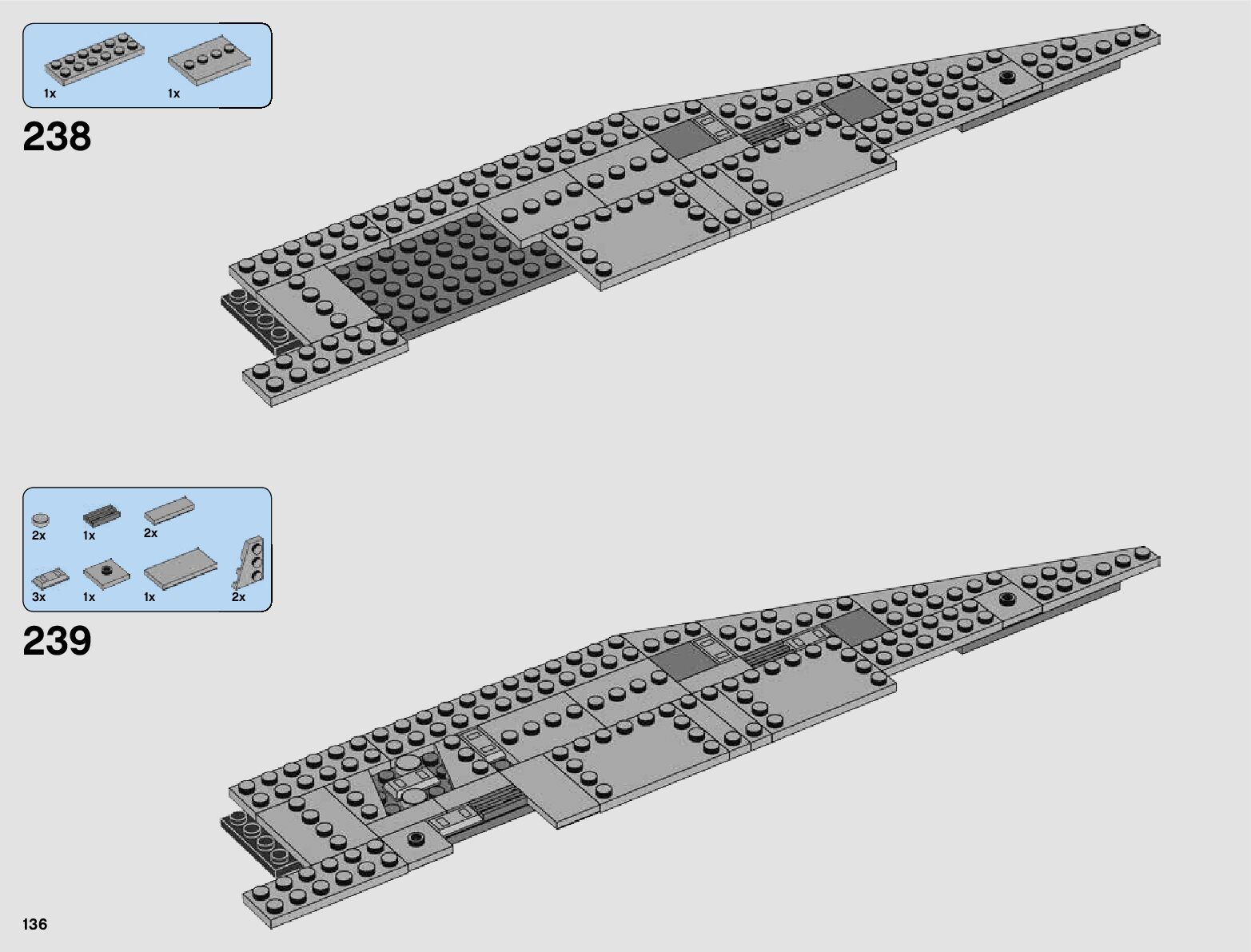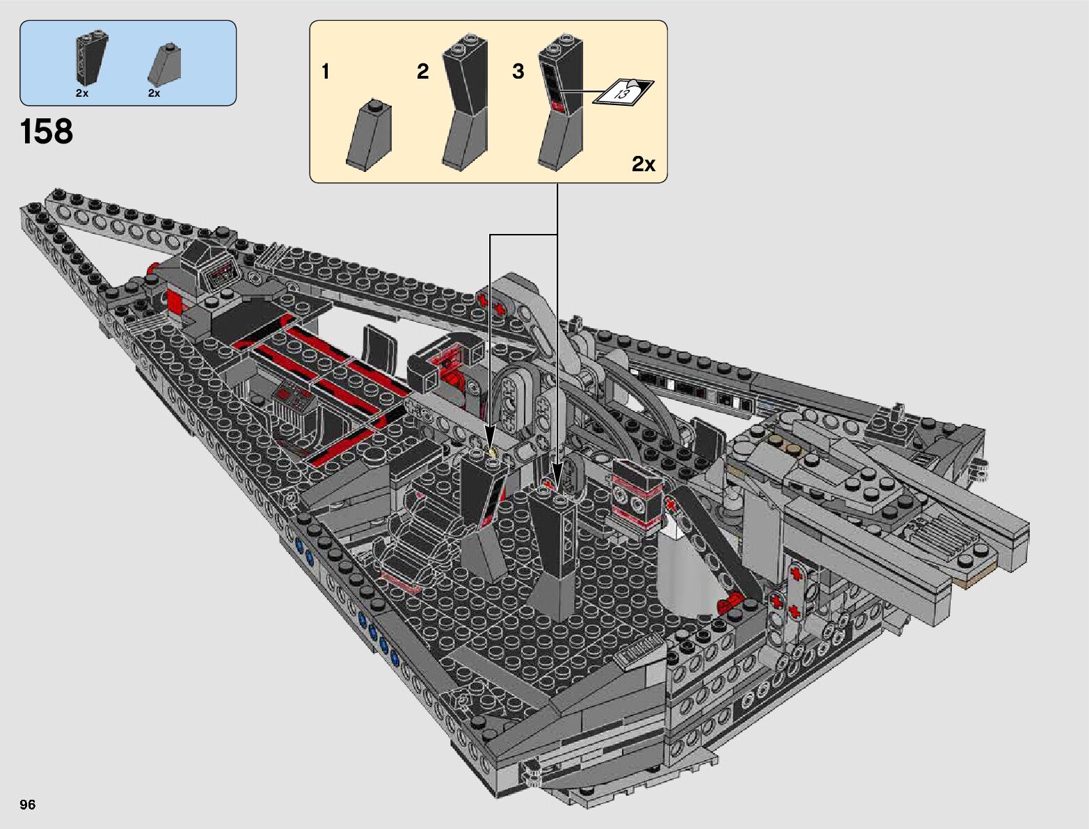 On this page you can find the original construction manual for the LEGO 75190 set. With the assembly manual you can easily learn how to build the 75190 First Order Star Destroyer step by step. The set was released in 2017.