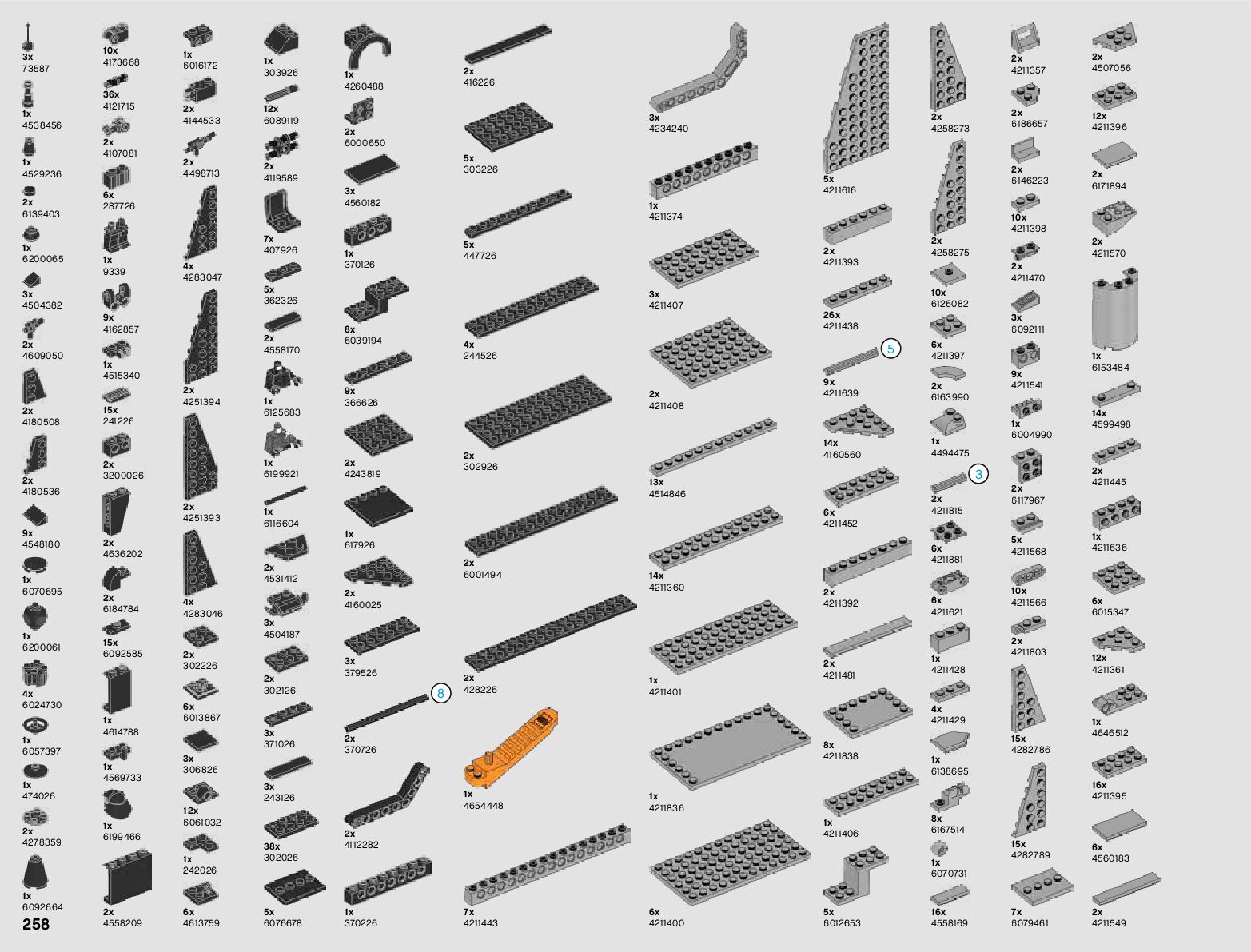 The assembly guide is prepared in a very understandable way for children and adult LEGO enthusiasts. A total of 260 picture galleries are shown, explaining the step-by-step construction stages for 1 different structures.