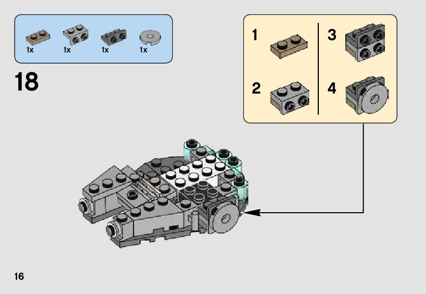 On this page you can find the original construction manual for the LEGO 75193 set. With the assembly manual you can easily learn how to build the 75193 Millennium Falcon Microfighter step by step. The set was released in 2018.