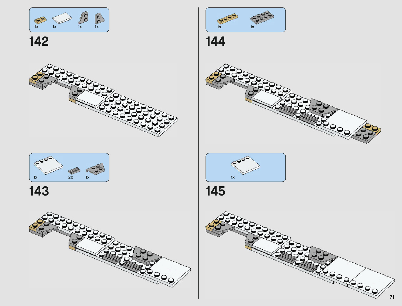 The assembly guide is prepared in a very understandable way for children and adult LEGO enthusiasts. A total of 148 picture galleries are shown, explaining the step-by-step construction stages for 1 different structures.