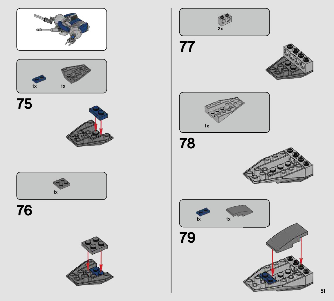 On this page you can find the original construction manual for the LEGO 75233 set. With the assembly manual you can easily learn how to build the 75233 Droid Gunship step by step. The set was released in 2019.