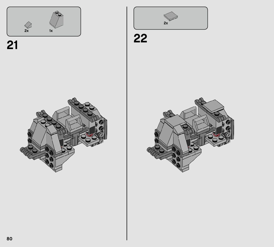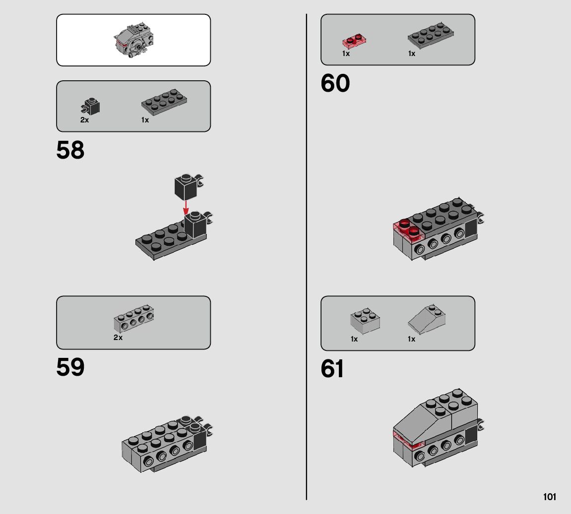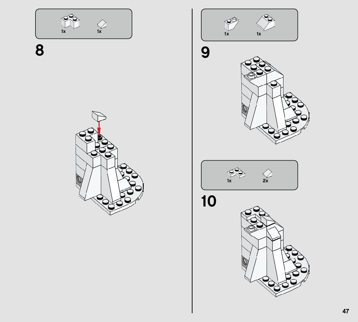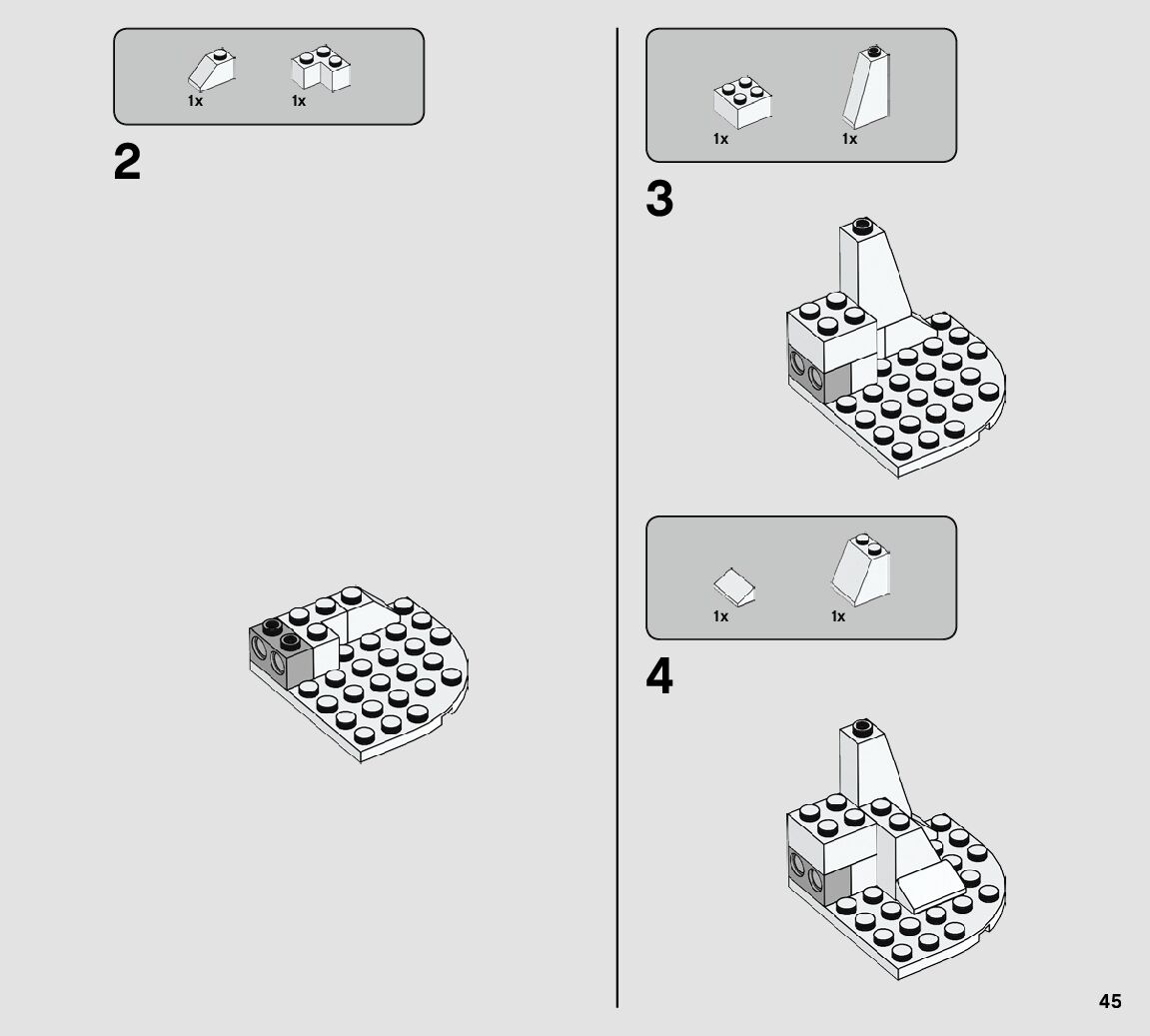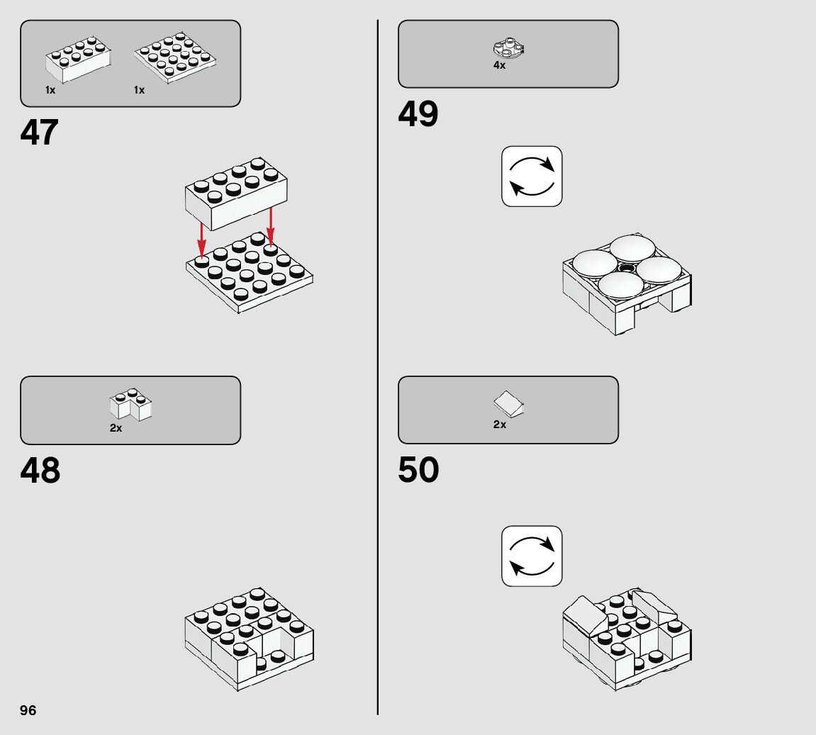 The assembly guide is prepared in a very understandable way for children and adult LEGO enthusiasts. A total of 112 picture galleries are shown, explaining the step-by-step construction stages for 1 different structures.