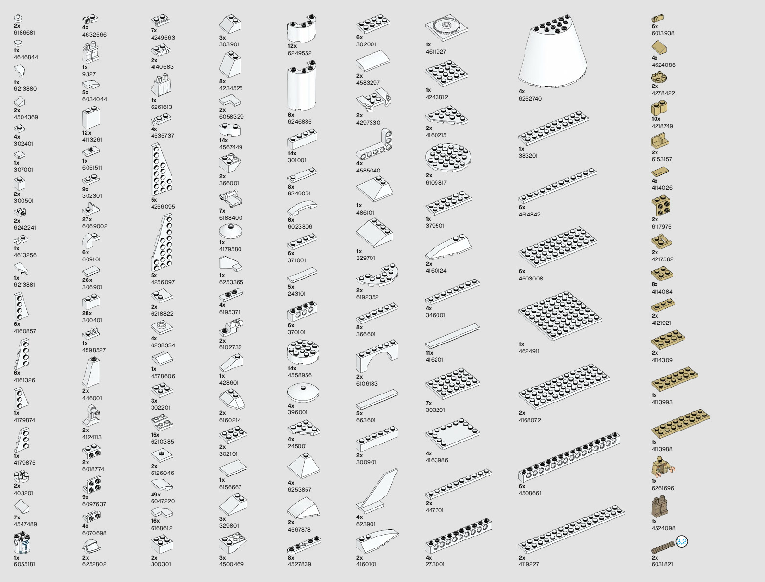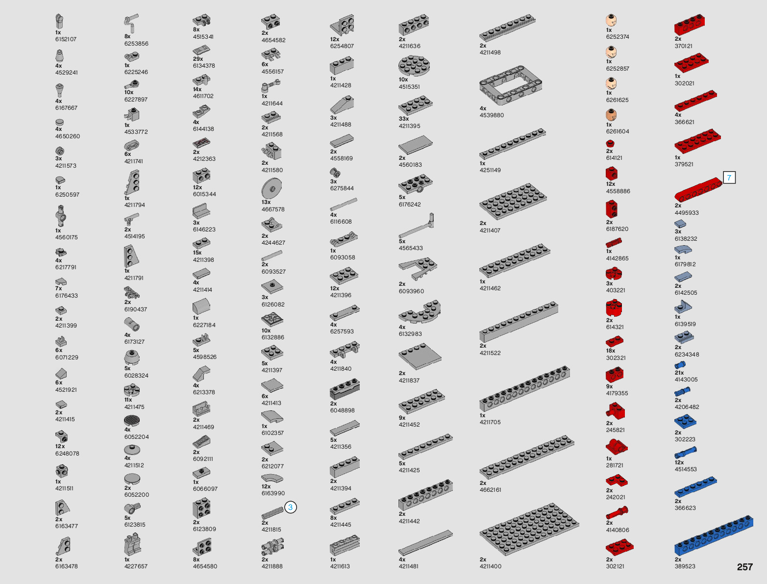 The assembly guide is prepared in a very understandable way for children and adult LEGO enthusiasts. A total of 260 picture galleries are shown, explaining the step-by-step construction stages for 1 different structures.