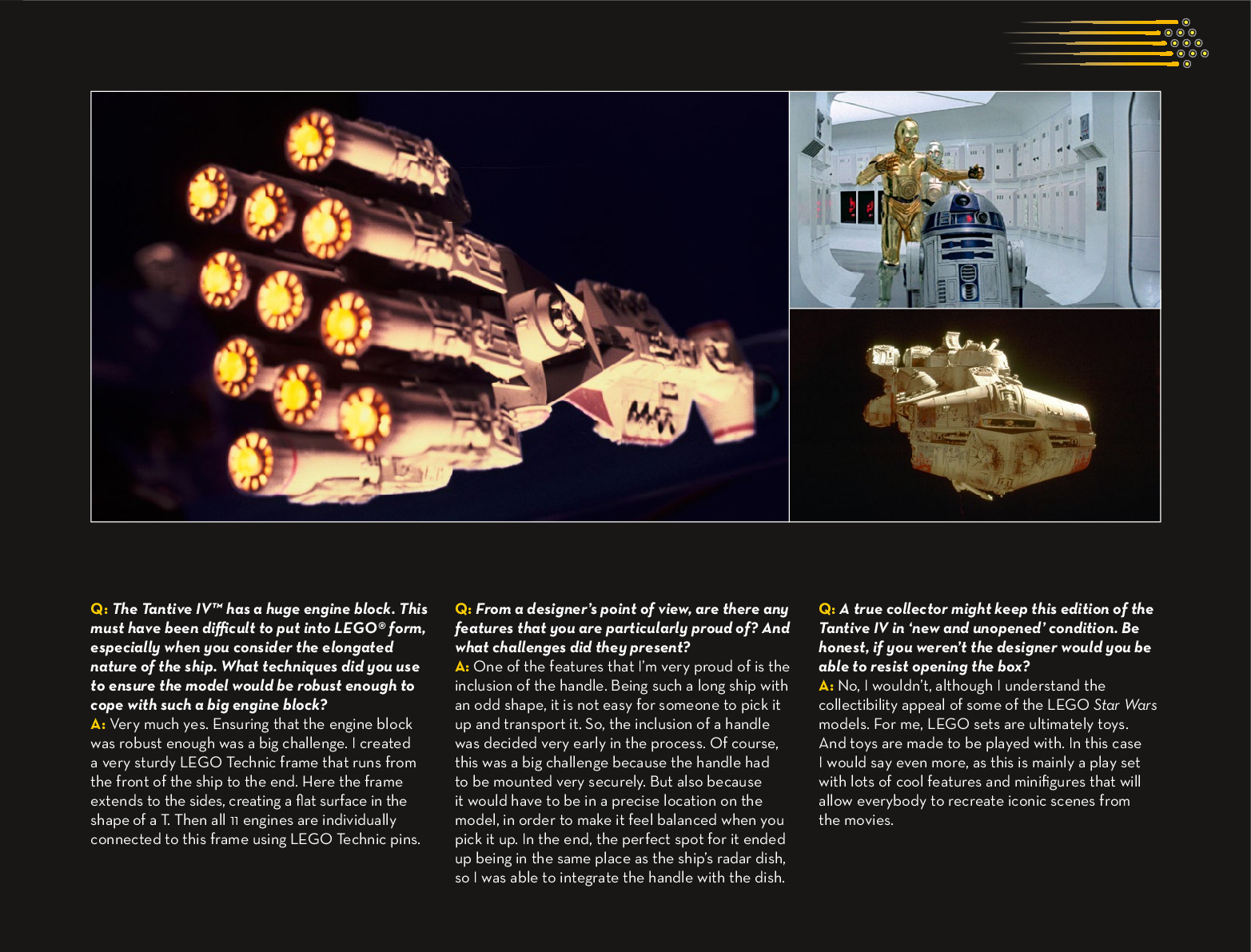 On this page you can find the original construction manual for the LEGO 75244 set. With the assembly manual you can easily learn how to build the 75244 Tantive IV step by step. The set was released in 2019.