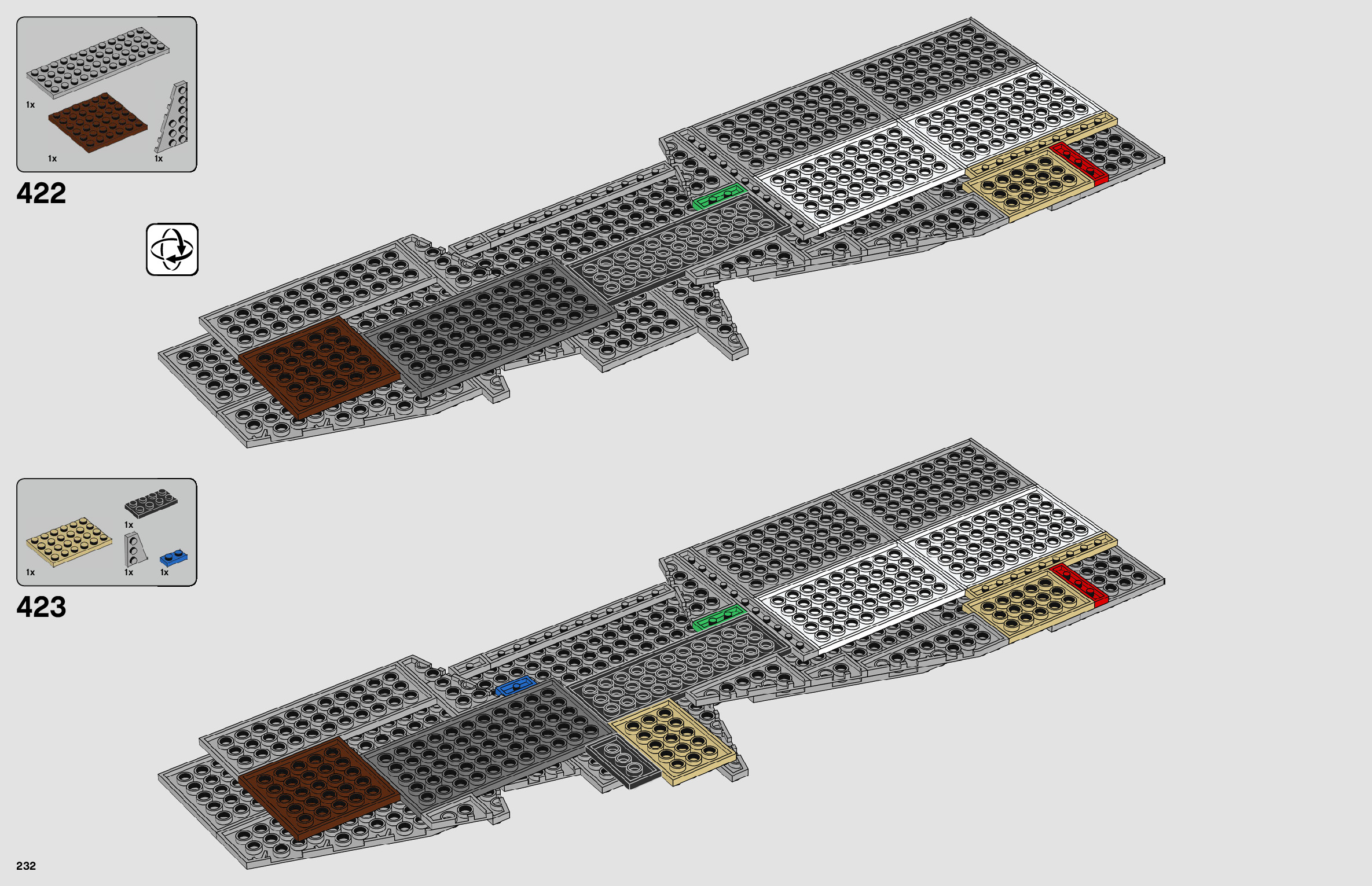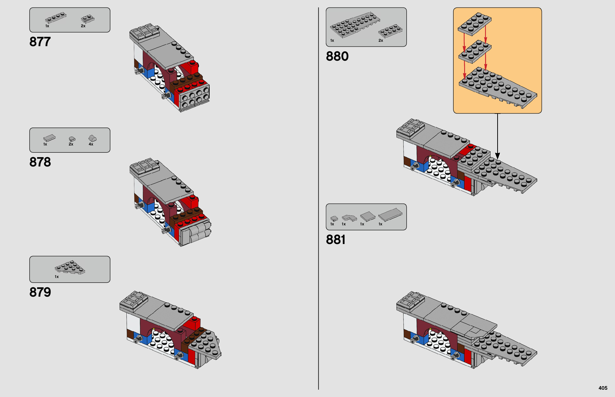 The assembly guide is prepared in a very understandable way for children and adult LEGO enthusiasts. A total of 444 picture galleries are shown, explaining the step-by-step construction stages for 1 different structures.