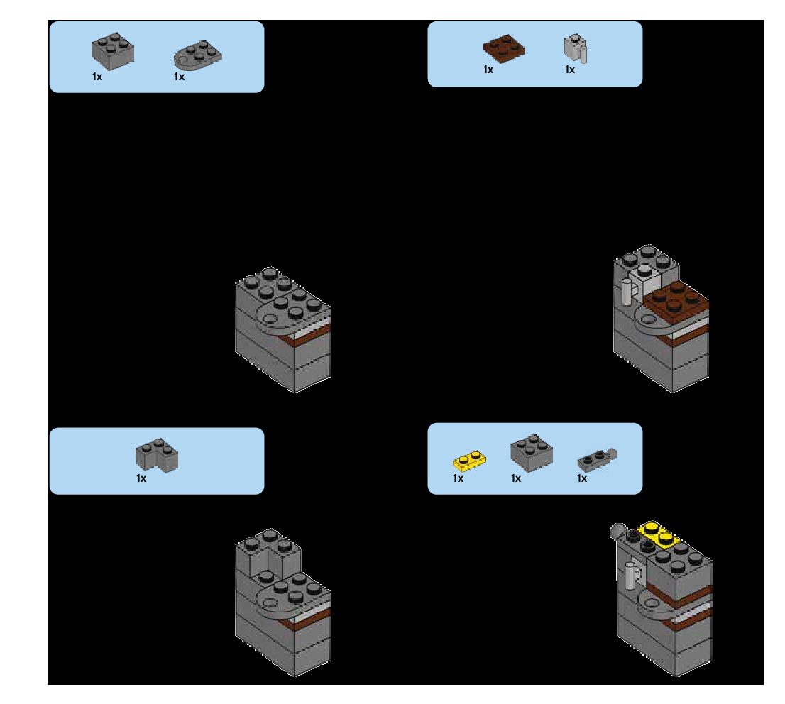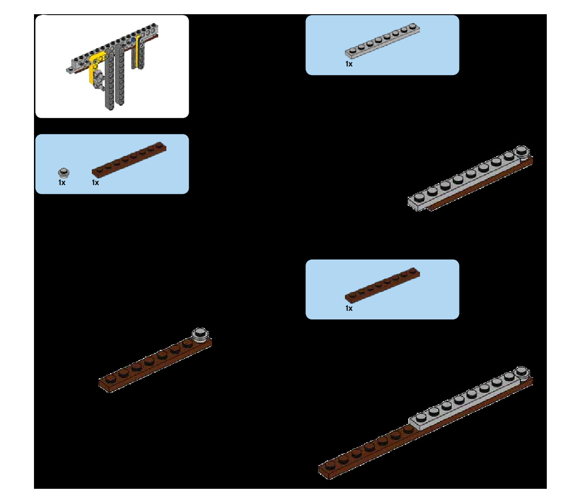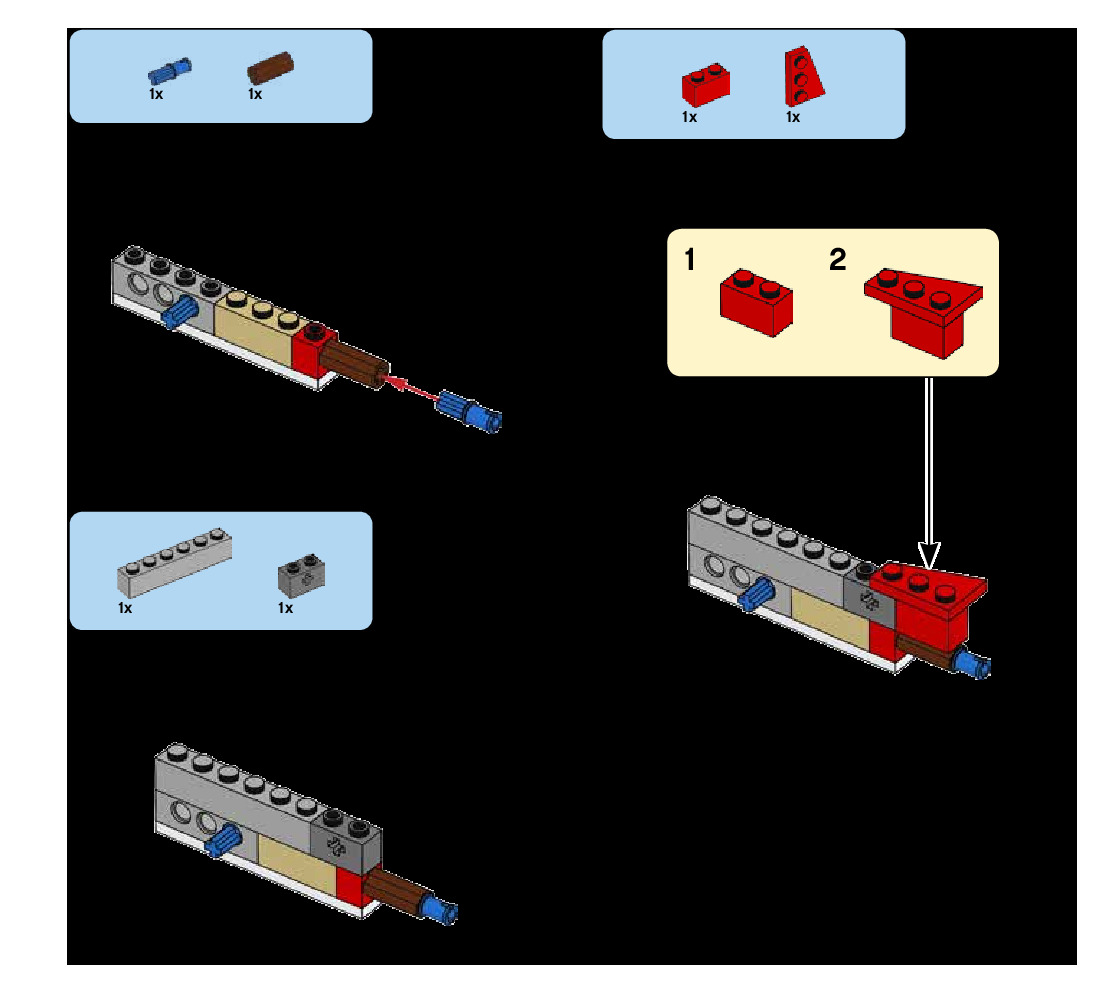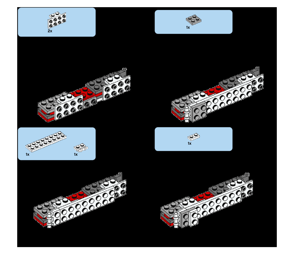 The assembly guide is prepared in a very understandable way for children and adult LEGO enthusiasts. A total of 363 picture galleries are shown, explaining the step-by-step construction stages for 4 different structures.