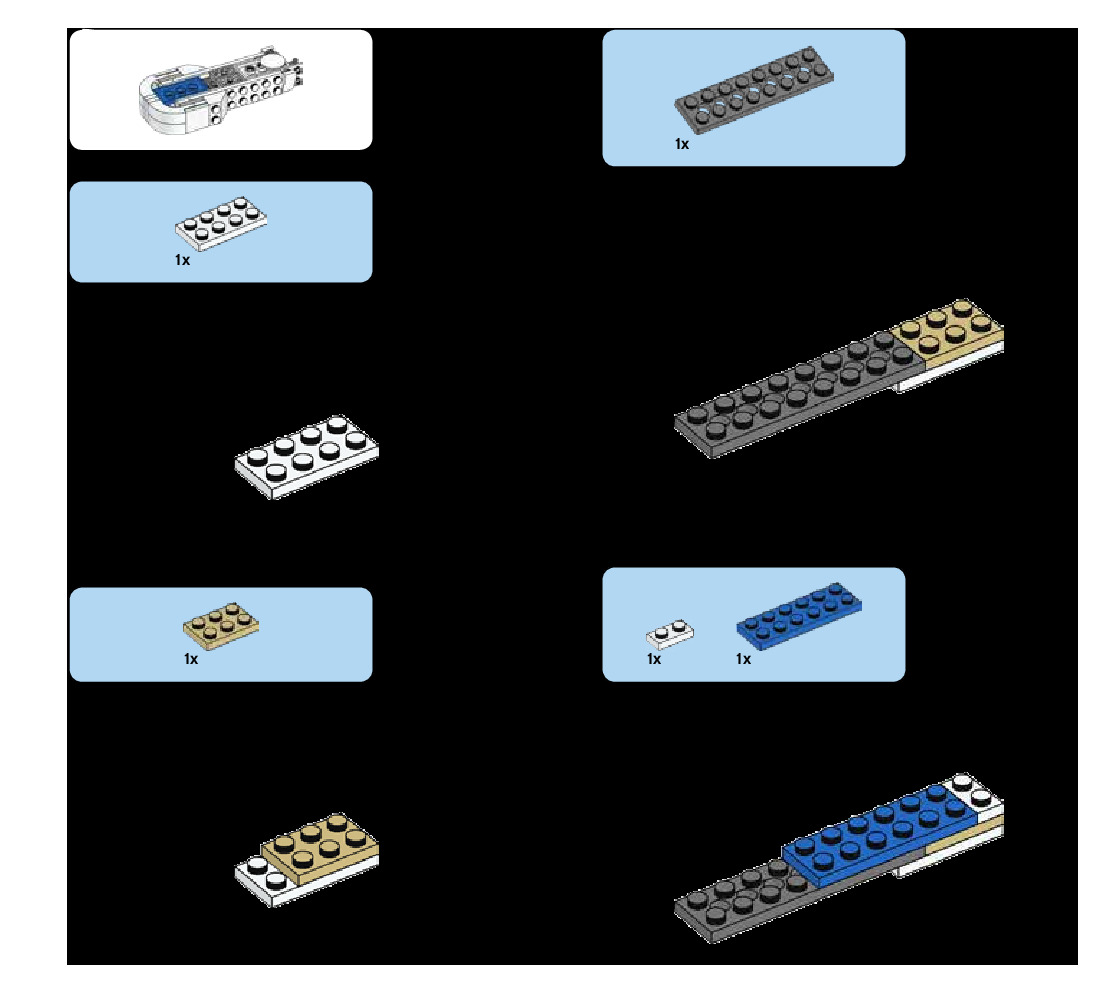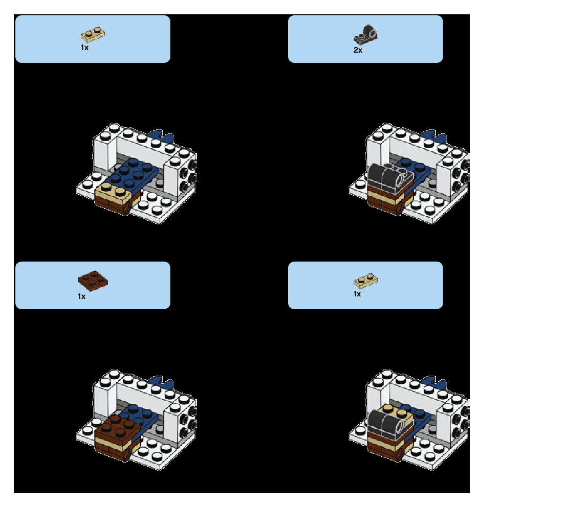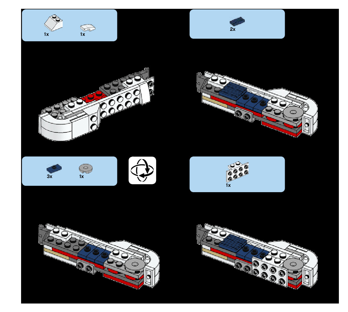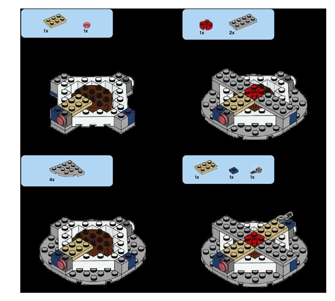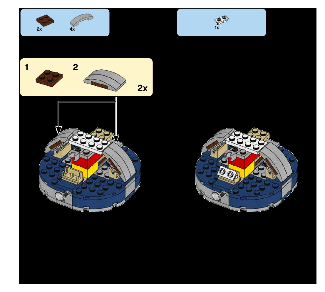 The assembly guide is prepared in a very understandable way for children and adult LEGO enthusiasts. A total of 363 picture galleries are shown, explaining the step-by-step construction stages for 4 different structures.