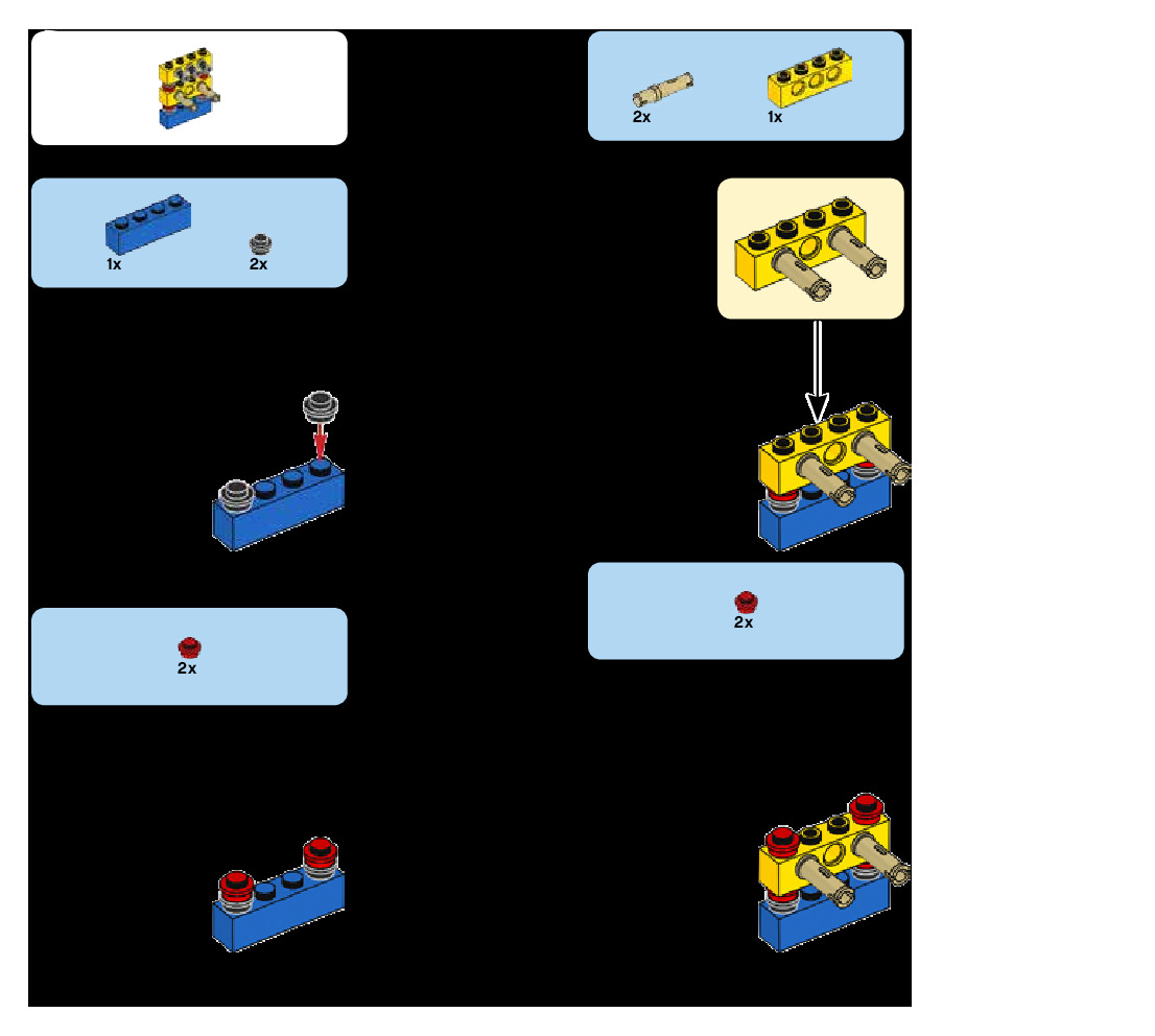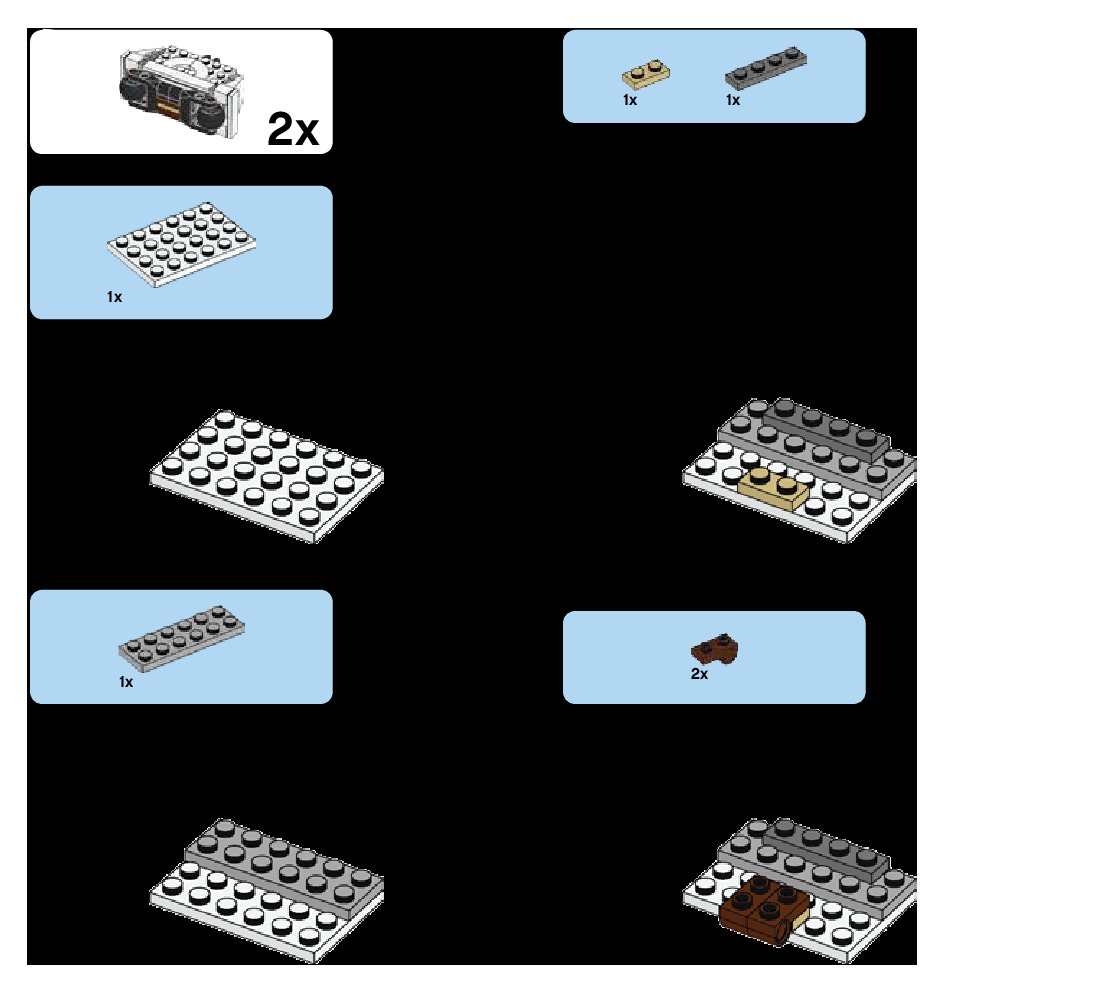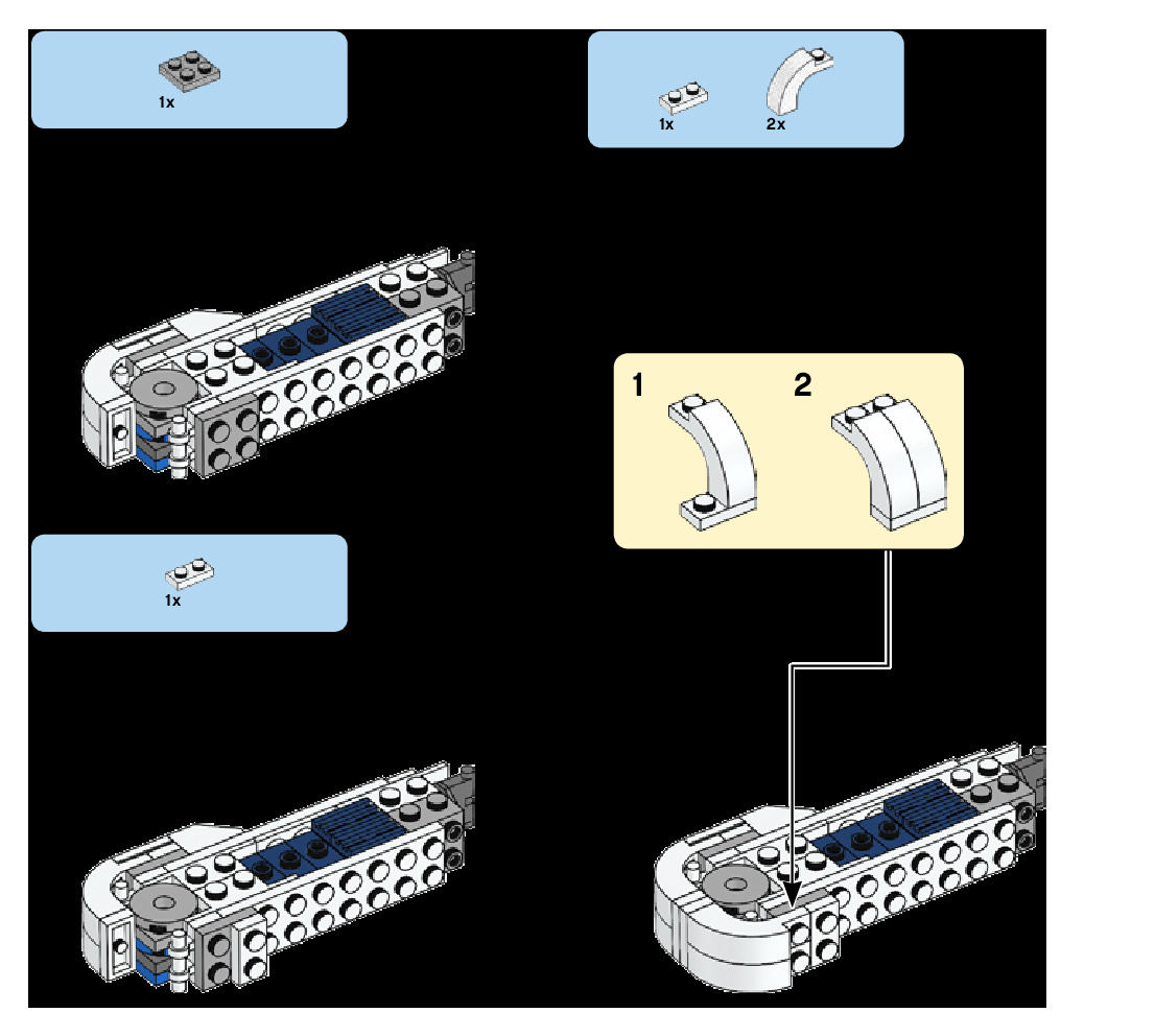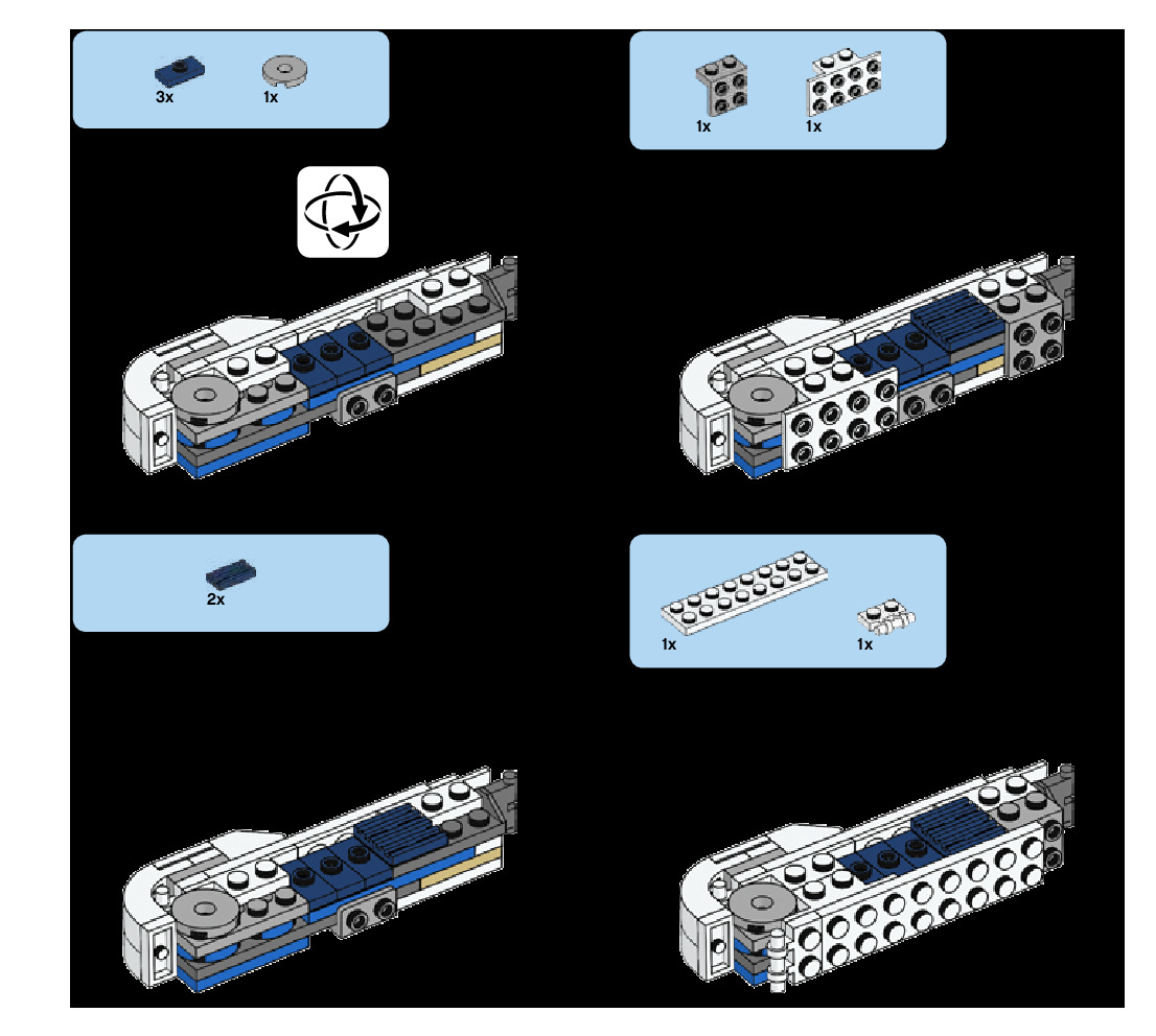 The assembly guide is prepared in a very understandable way for children and adult LEGO enthusiasts. A total of 363 picture galleries are shown, explaining the step-by-step construction stages for 4 different structures.