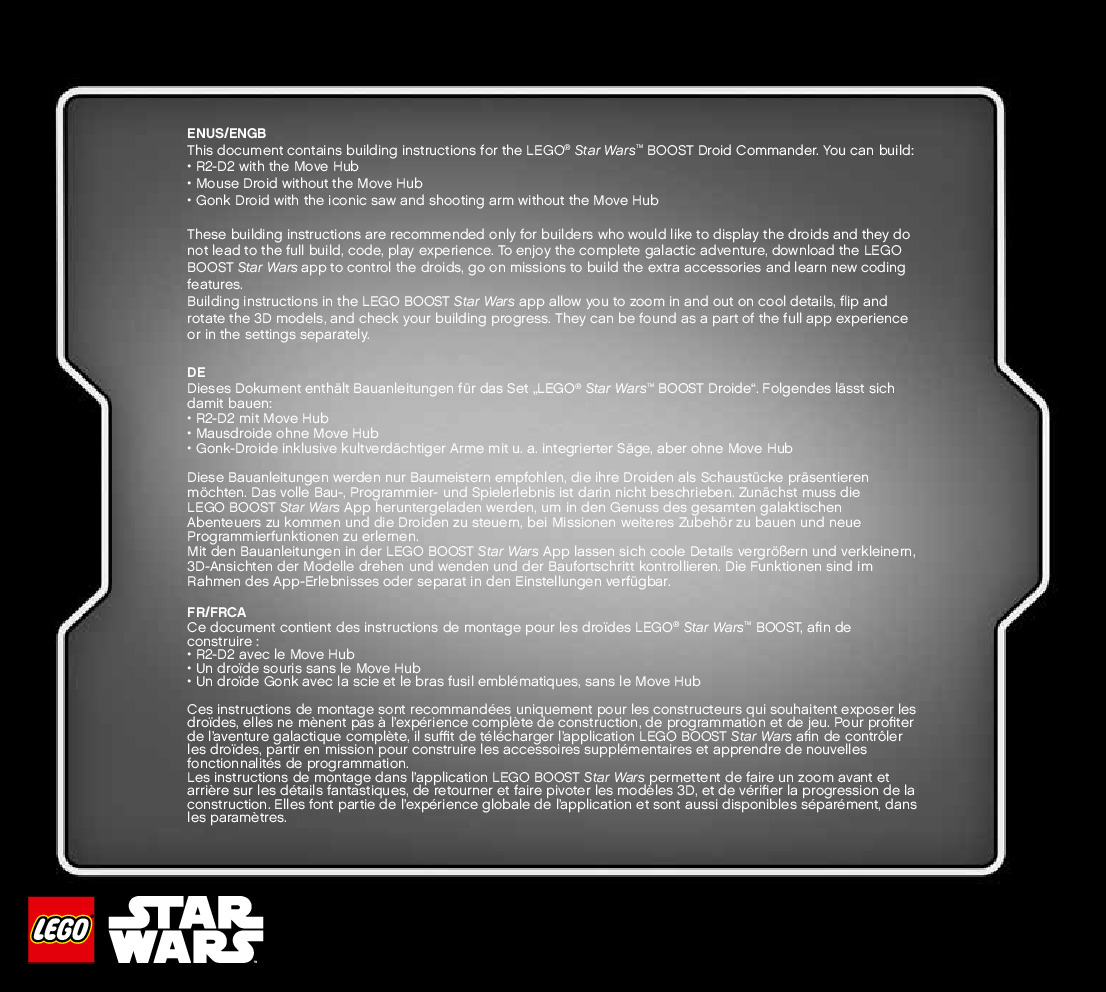 This page shares information about LEGO 75253 Droid Commander manual, LEGO 75253 PDF instructions, LEGO 75253 Droid Commander building guide online, How to build 75253 Droid Commander LEGO.