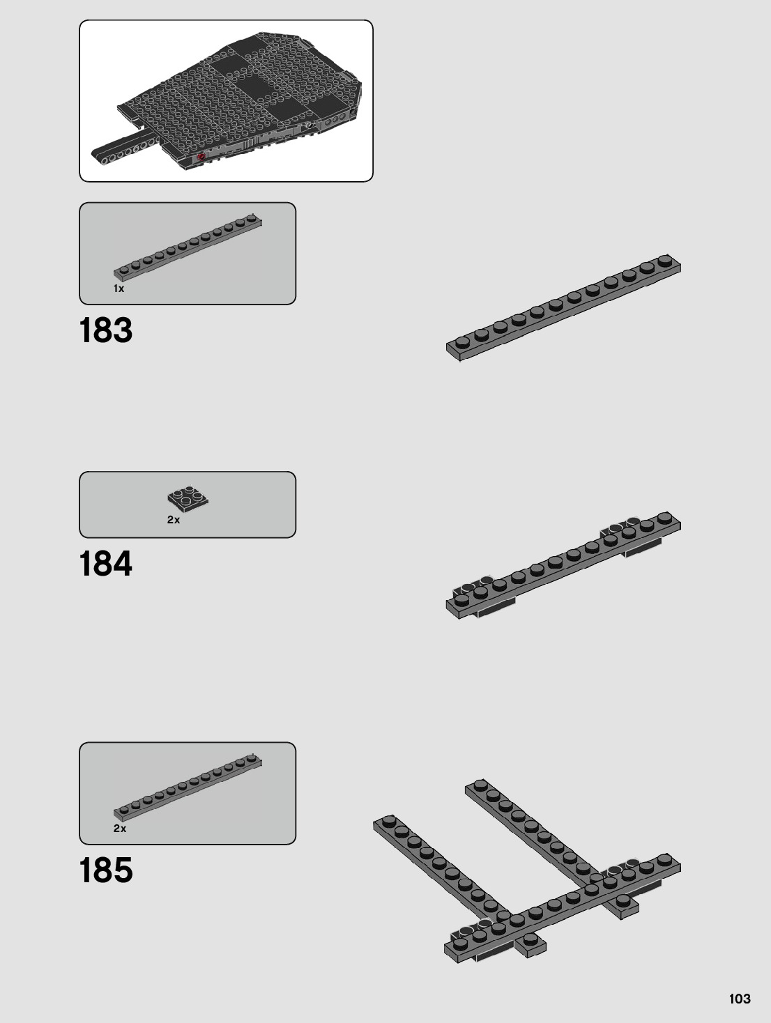 The assembly guide is prepared in a very understandable way for children and adult LEGO enthusiasts. A total of 184 picture galleries are shown, explaining the step-by-step construction stages for 1 different structures.