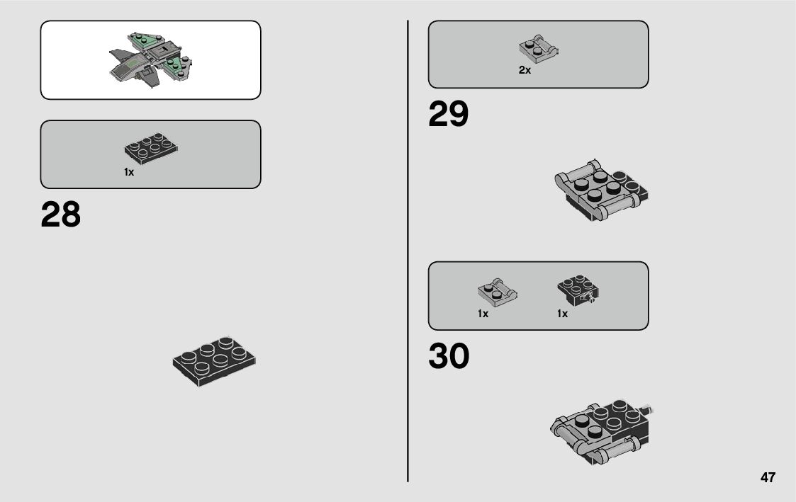 The assembly guide is prepared in a very understandable way for children and adult LEGO enthusiasts. A total of 80 picture galleries are shown, explaining the step-by-step construction stages for 1 different structures.