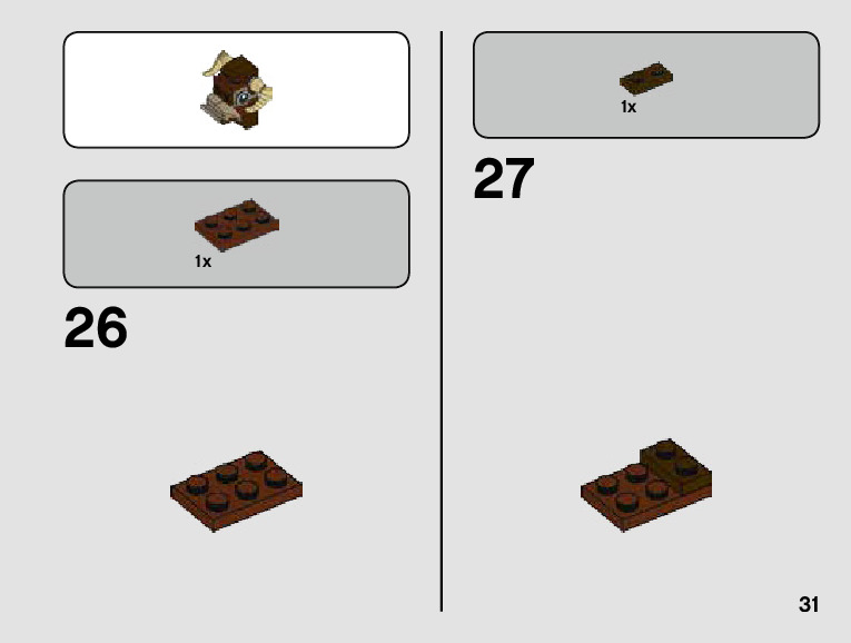 The assembly guide is prepared in a very understandable way for children and adult LEGO enthusiasts. A total of 84 picture galleries are shown, explaining the step-by-step construction stages for 2 different structures.
