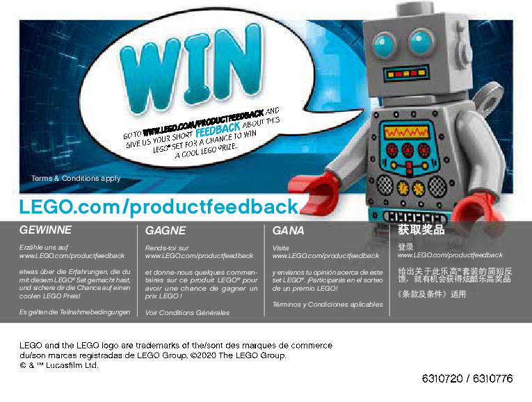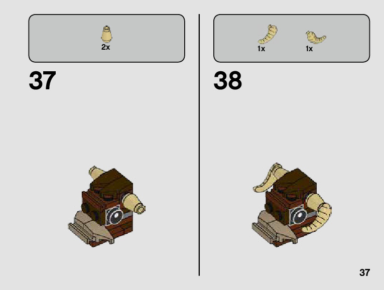 On this page you can find the original construction manual for the LEGO 75265 set. With the assembly manual you can easily learn how to build the 75265 T-16 Skyhopper vs Bantha Microfighters step by step. The set was released in 2020.