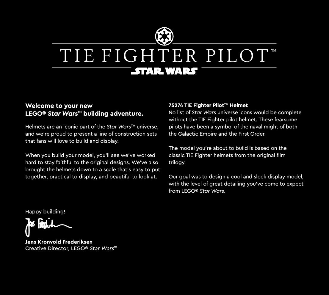 This page shares information about LEGO 75274 TIE Fighter Pilot Helmet manual, LEGO 75274 PDF instructions, LEGO 75274 TIE Fighter Pilot Helmet building guide online, How to build 75274 TIE Fighter Pilot Helmet LEGO.