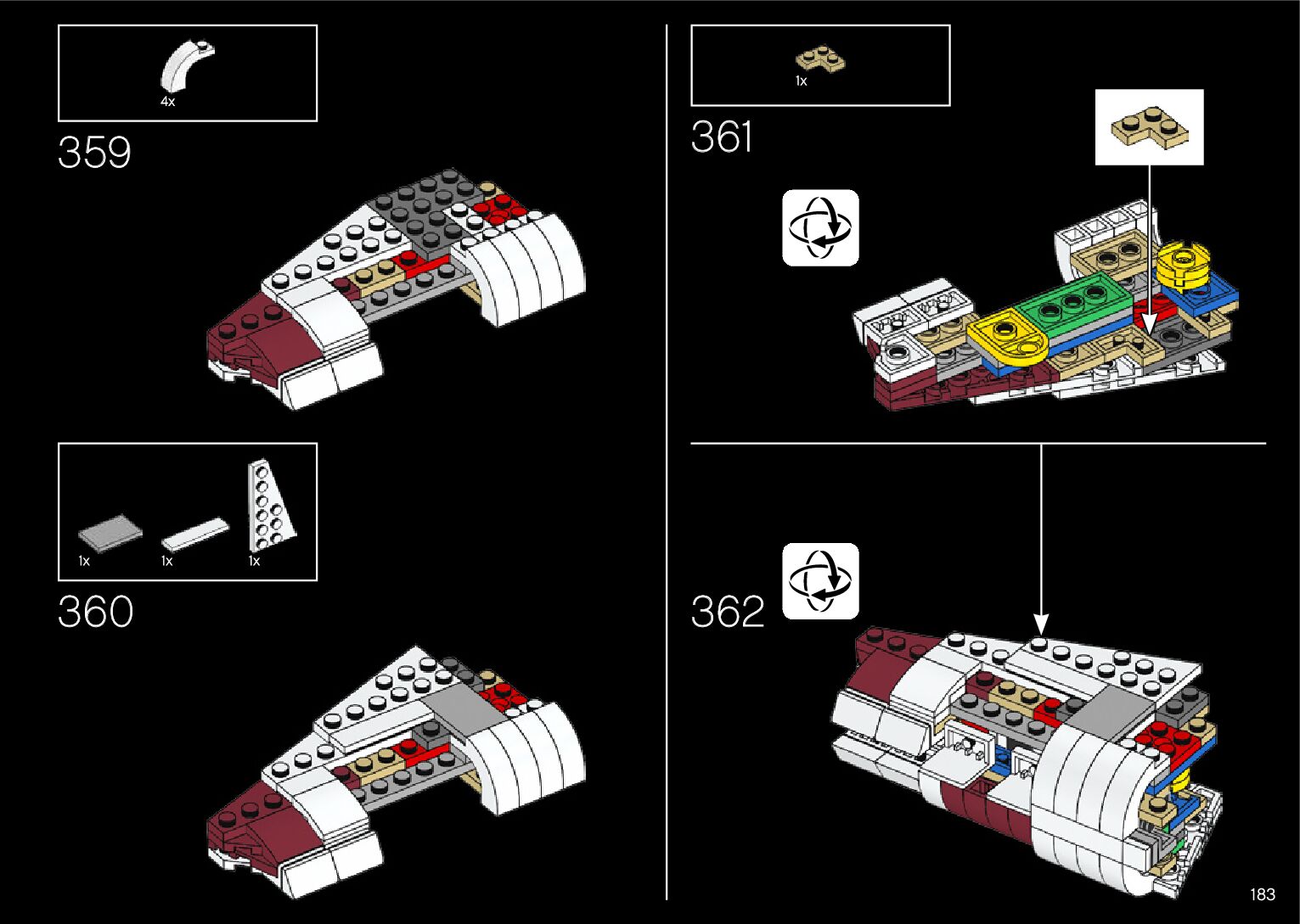 The assembly guide is prepared in a very understandable way for children and adult LEGO enthusiasts. A total of 272 picture galleries are shown, explaining the step-by-step construction stages for 1 different structures.
