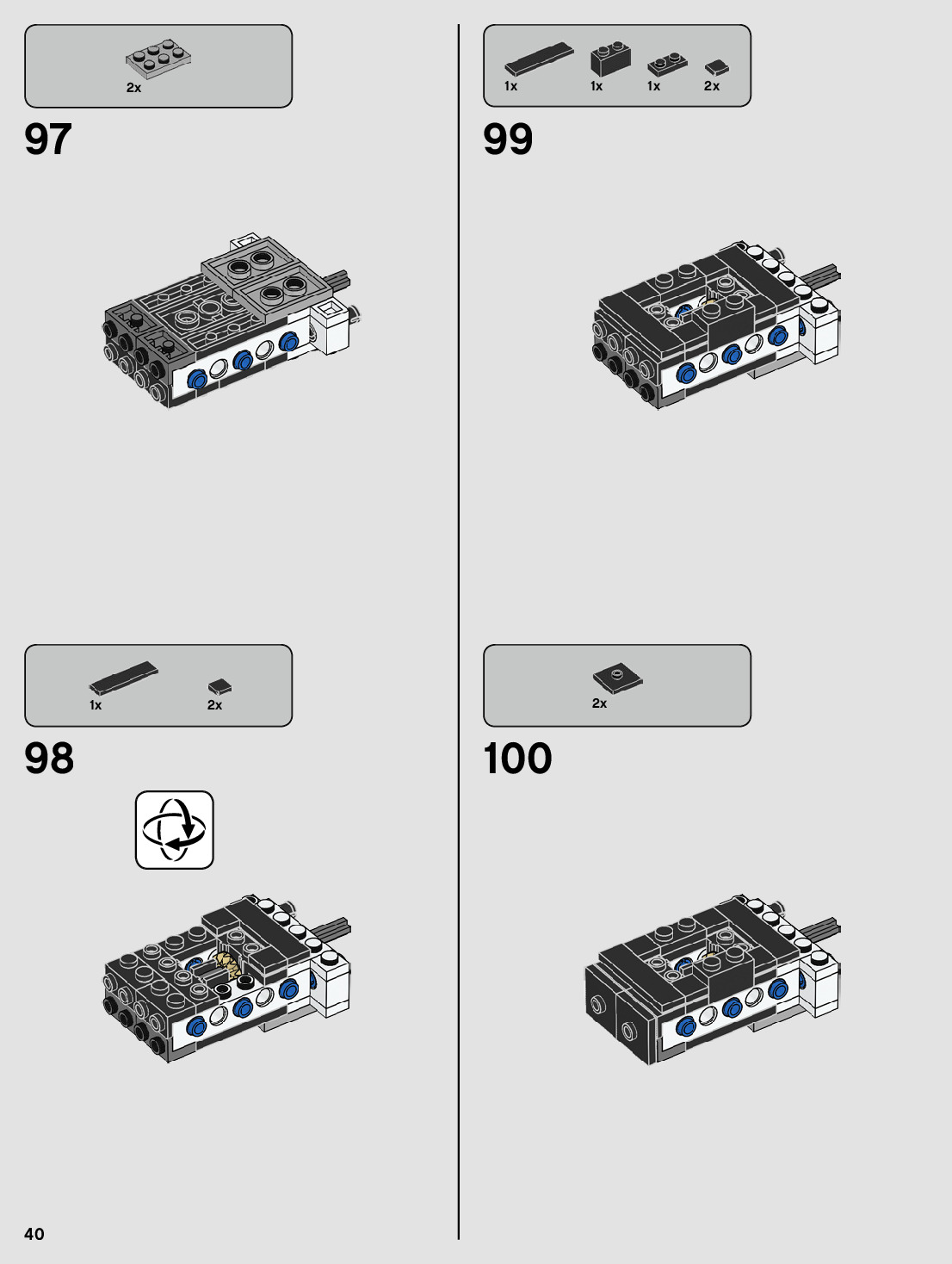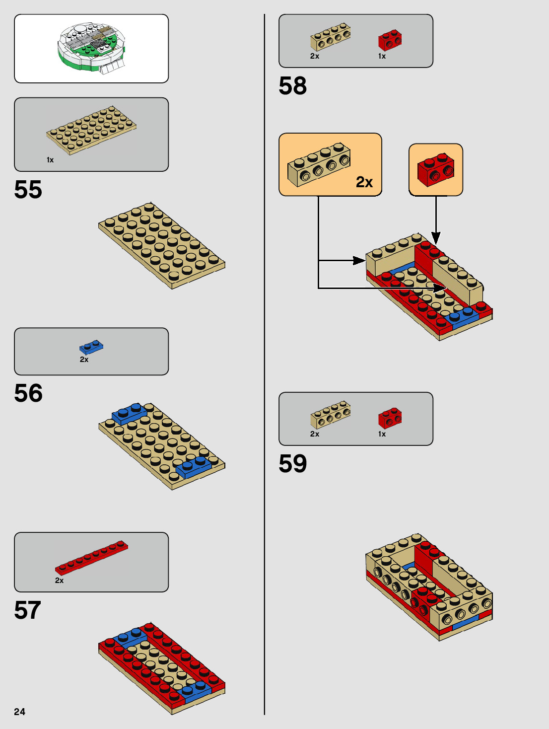 The assembly guide is prepared in a very understandable way for children and adult LEGO enthusiasts. A total of 72 picture galleries are shown, explaining the step-by-step construction stages for 1 different structures.