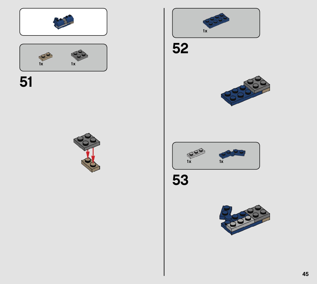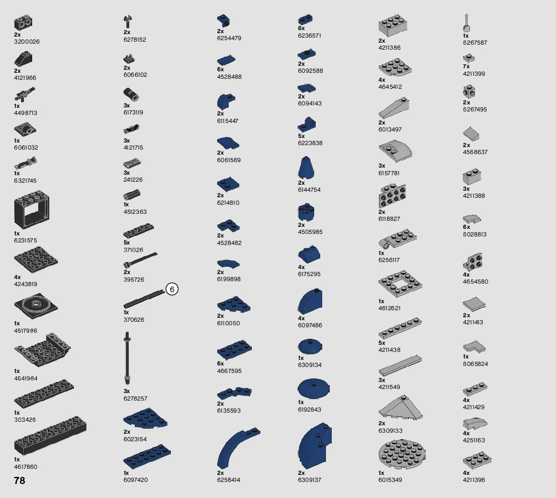 The assembly guide is prepared in a very understandable way for children and adult LEGO enthusiasts. A total of 80 picture galleries are shown, explaining the step-by-step construction stages for 1 different structures.
