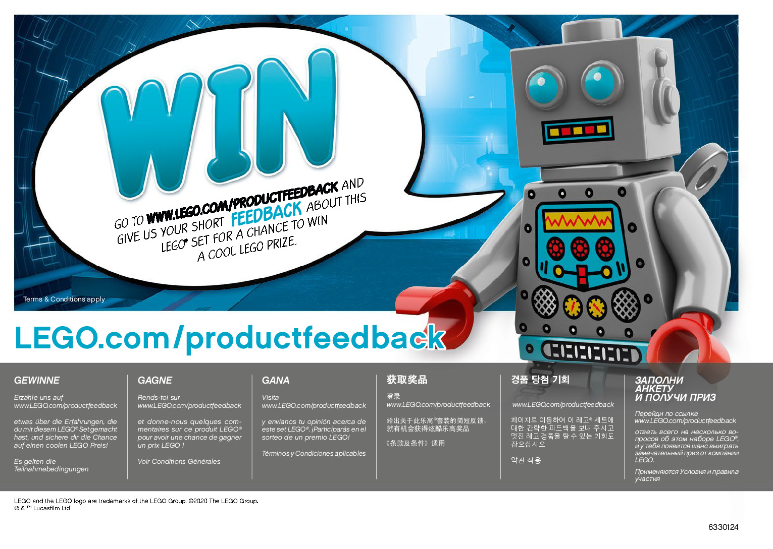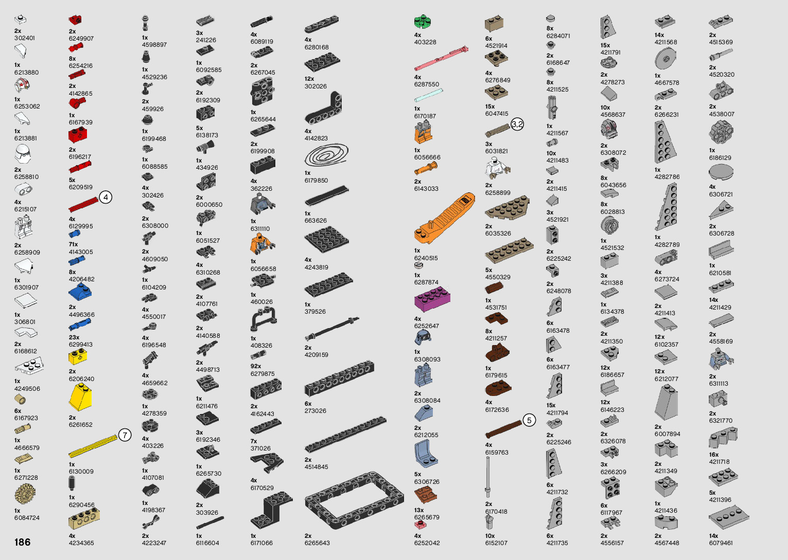 The assembly guide is prepared in a very understandable way for children and adult LEGO enthusiasts. A total of 188 picture galleries are shown, explaining the step-by-step construction stages for 1 different structures.