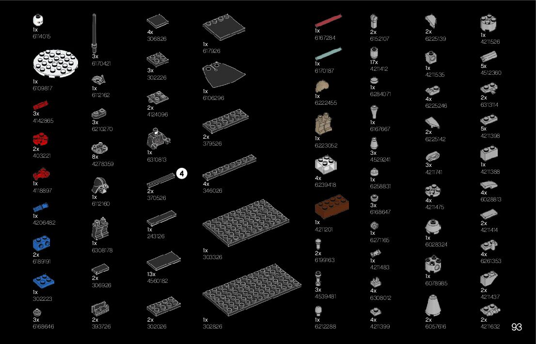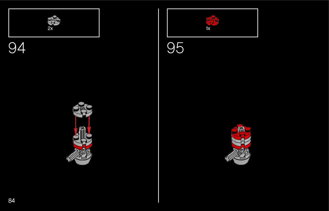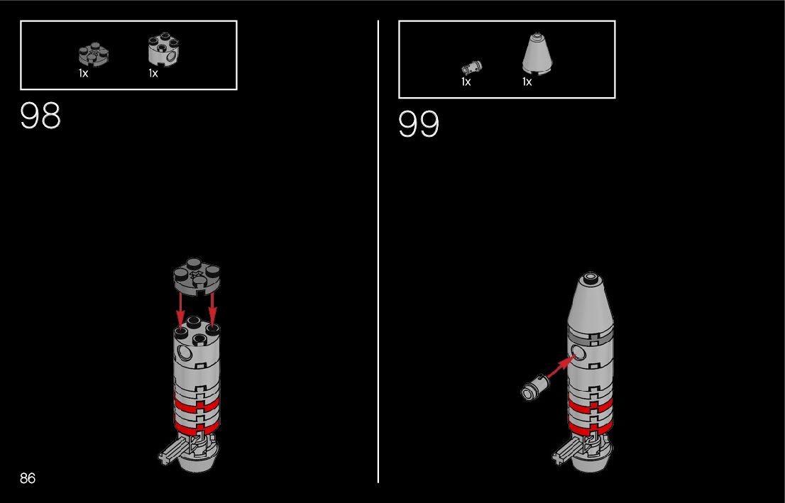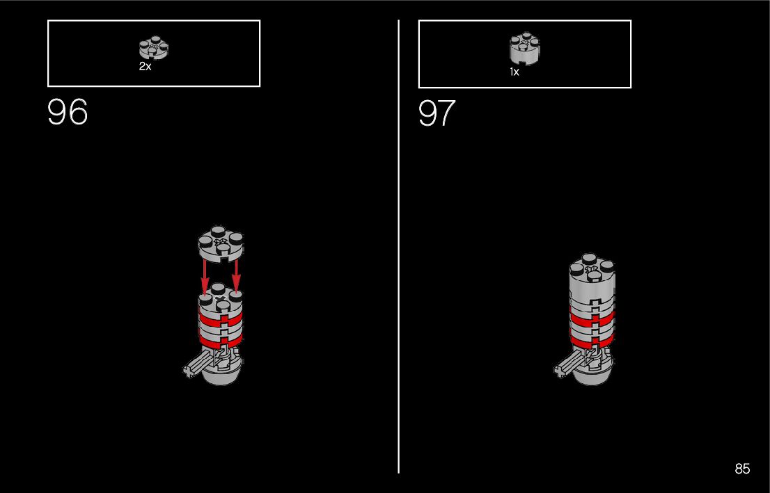The assembly guide is prepared in a very understandable way for children and adult LEGO enthusiasts. A total of 96 picture galleries are shown, explaining the step-by-step construction stages for 1 different structures.