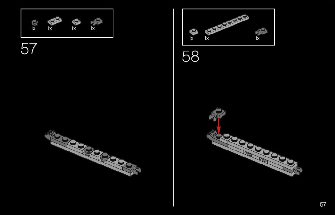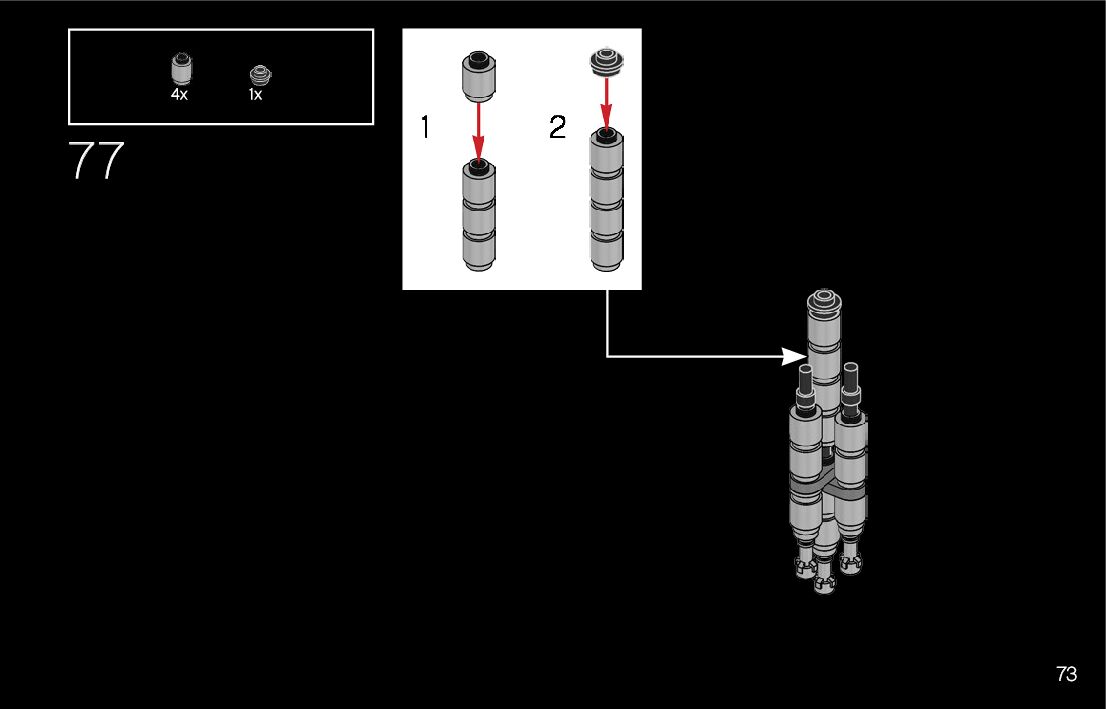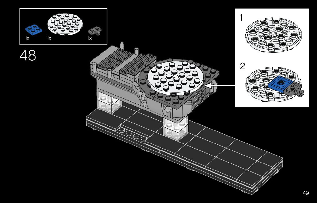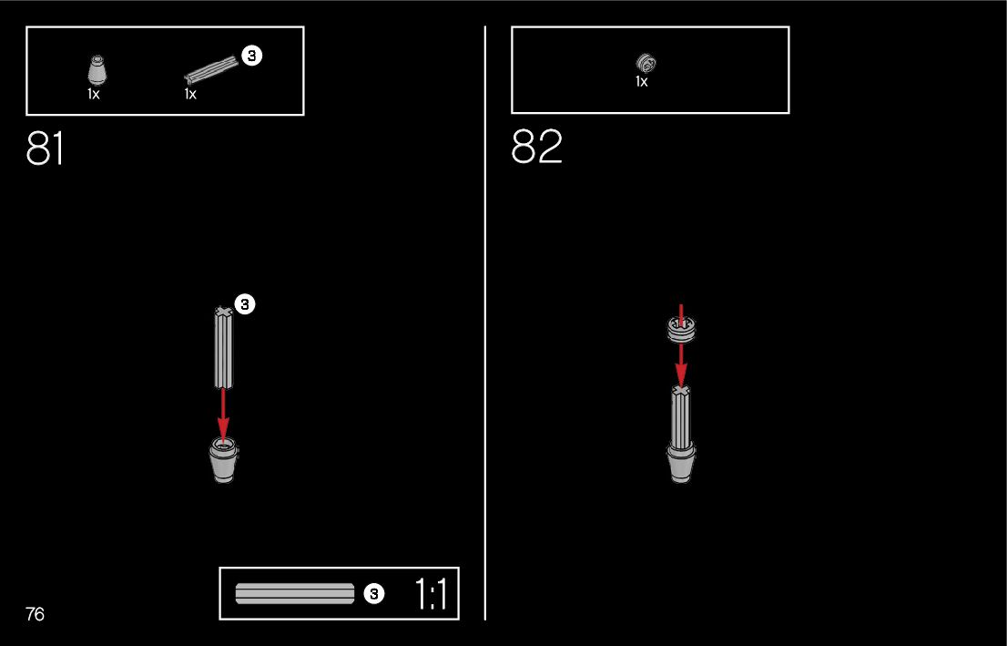 The assembly guide is prepared in a very understandable way for children and adult LEGO enthusiasts. A total of 96 picture galleries are shown, explaining the step-by-step construction stages for 1 different structures.