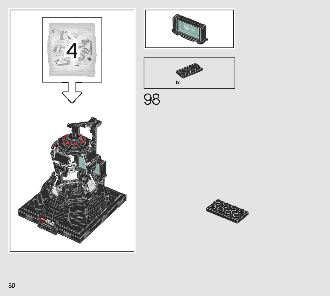 On this page you can find the original construction manual for the LEGO 75296 set. With the assembly manual you can easily learn how to build the 75296 Darth Vader Meditation Chamber step by step. The set was released in 2021.