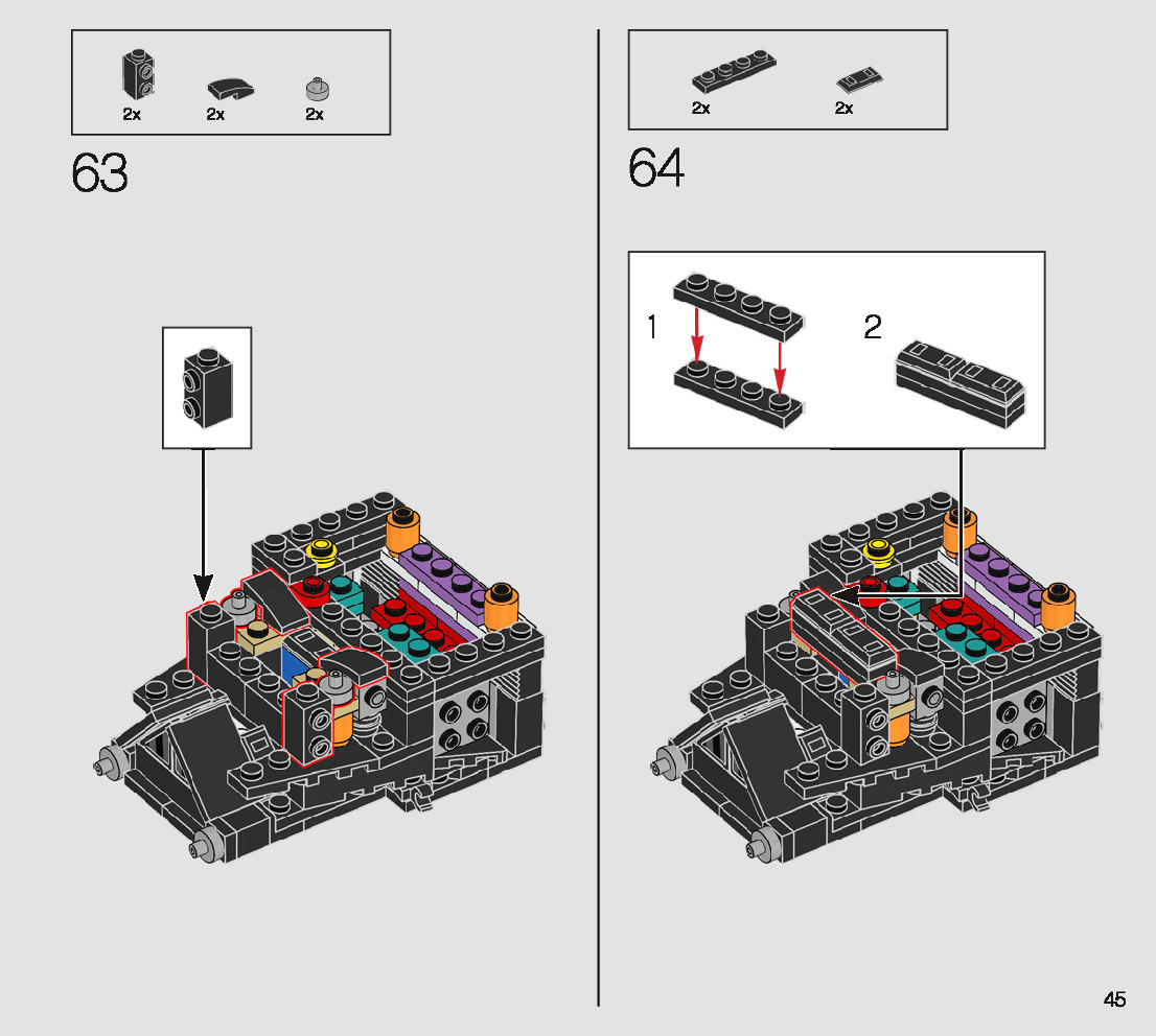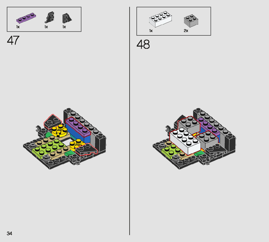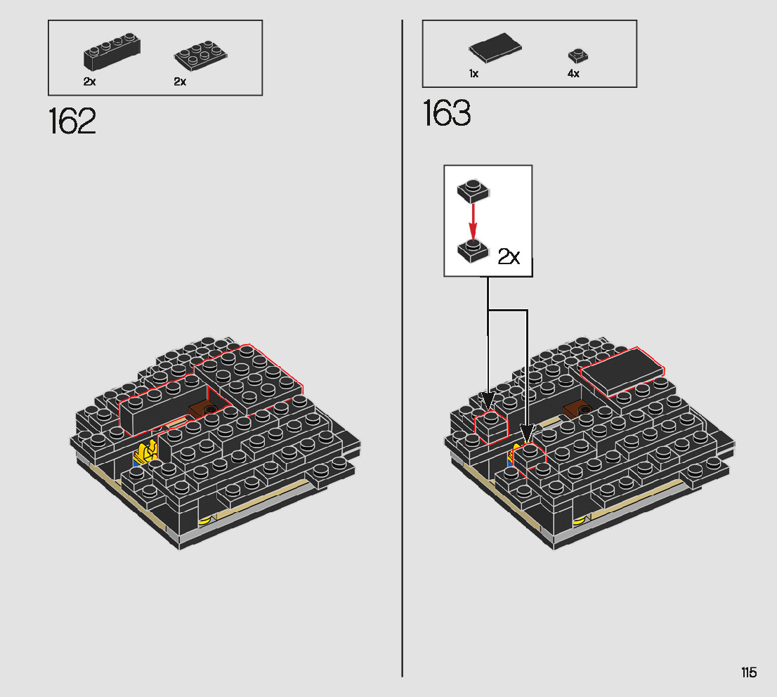 The assembly guide is prepared in a very understandable way for children and adult LEGO enthusiasts. A total of 164 picture galleries are shown, explaining the step-by-step construction stages for 2 different structures.