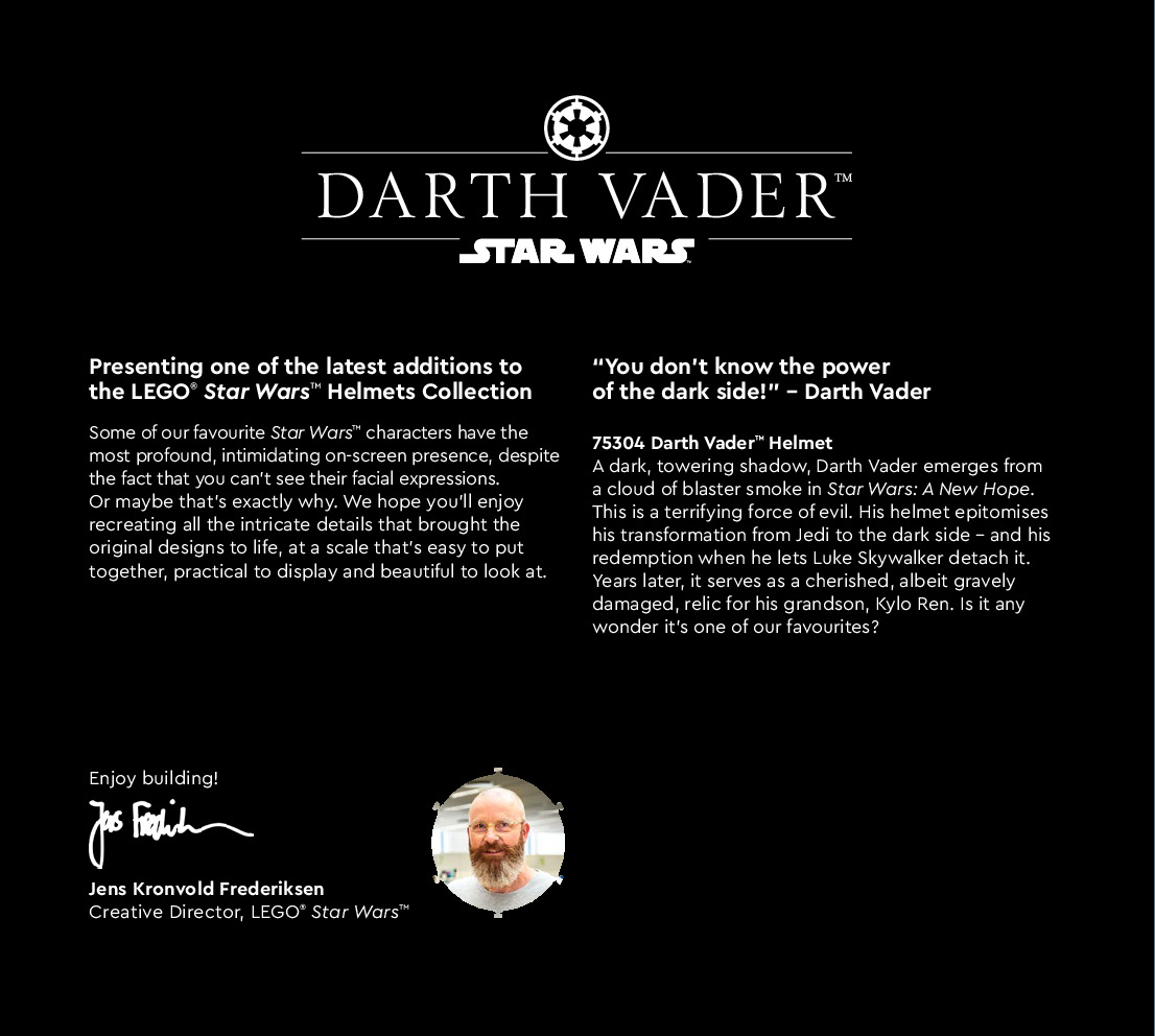 On this page you can find the original construction manual for the LEGO 75304 set. With the assembly manual you can easily learn how to build the 75304 Darth Vader Helmet step by step. The set was released in 2021.