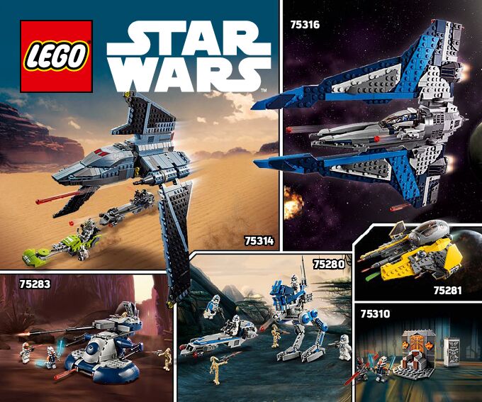 This page shares information about LEGO 75310 Duel on Mandalore manual, LEGO 75310 PDF instructions, LEGO 75310 Duel on Mandalore building guide online, How to build 75310 Duel on Mandalore LEGO.