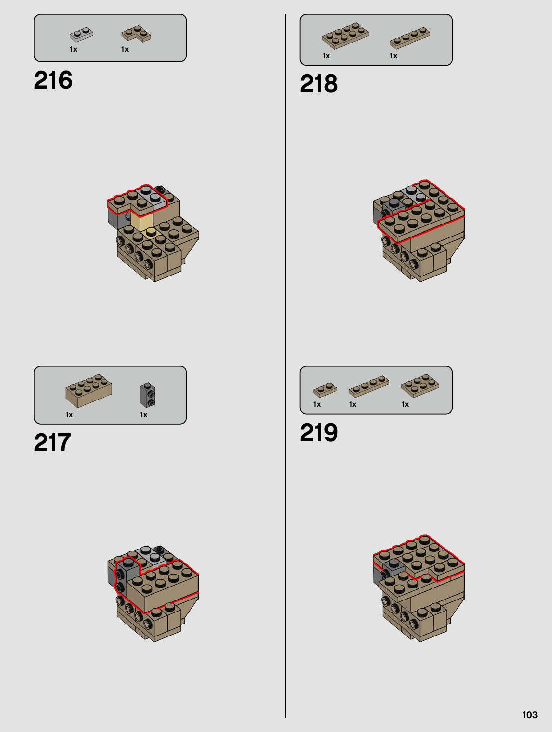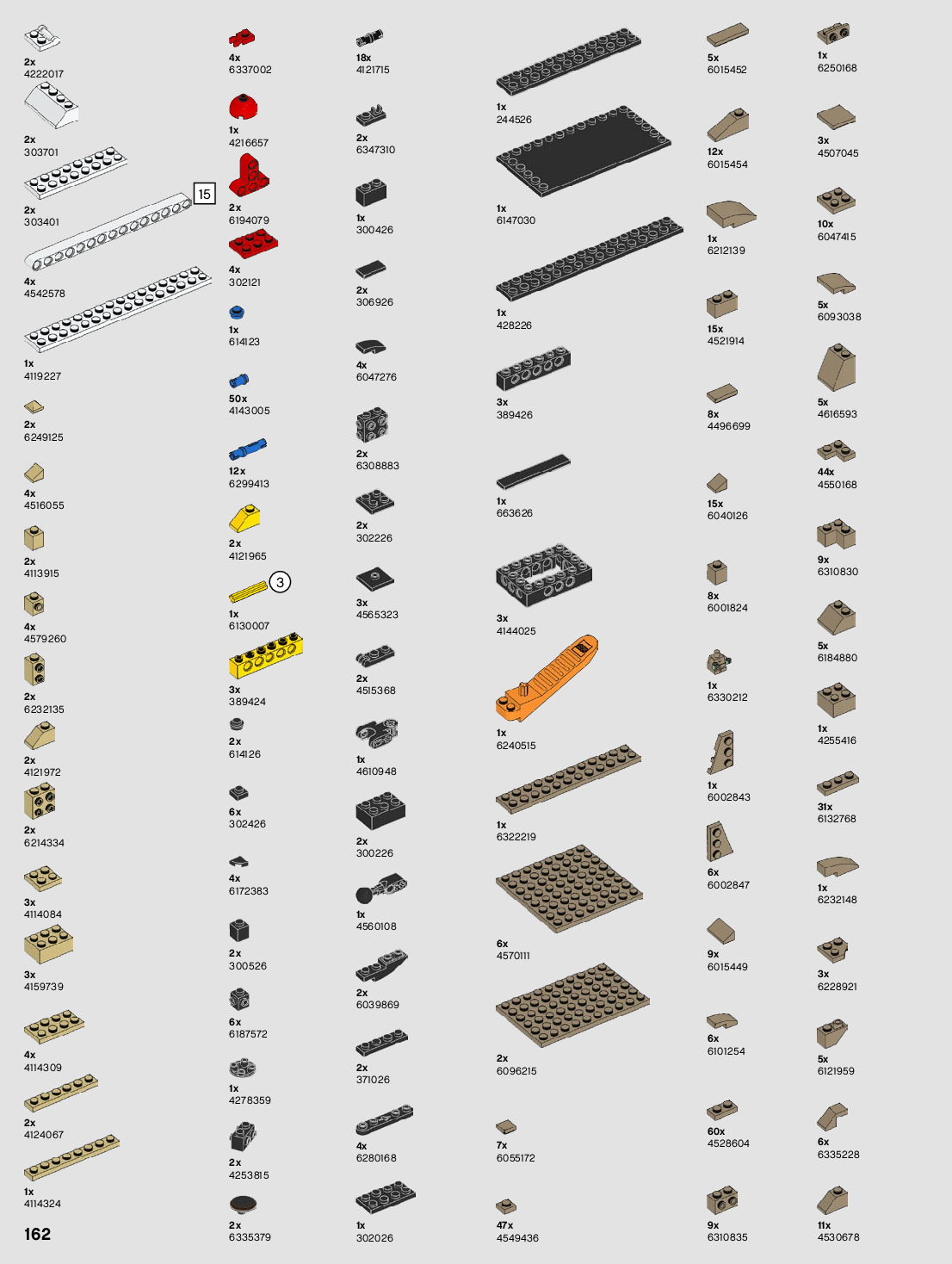 The assembly guide is prepared in a very understandable way for children and adult LEGO enthusiasts. A total of 164 picture galleries are shown, explaining the step-by-step construction stages for 1 different structures.