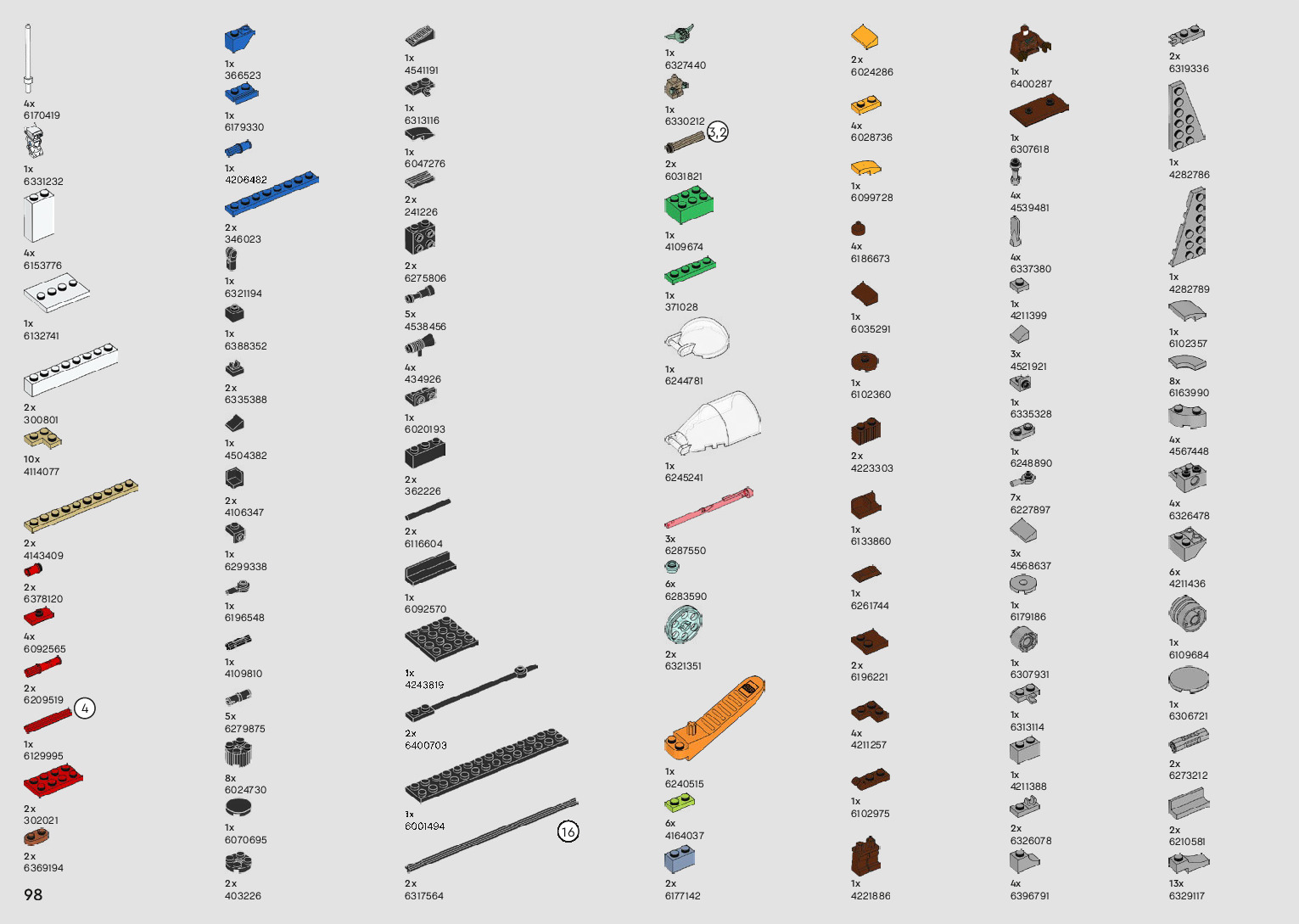 The assembly guide is prepared in a very understandable way for children and adult LEGO enthusiasts. A total of 100 picture galleries are shown, explaining the step-by-step construction stages for 1 different structures.
