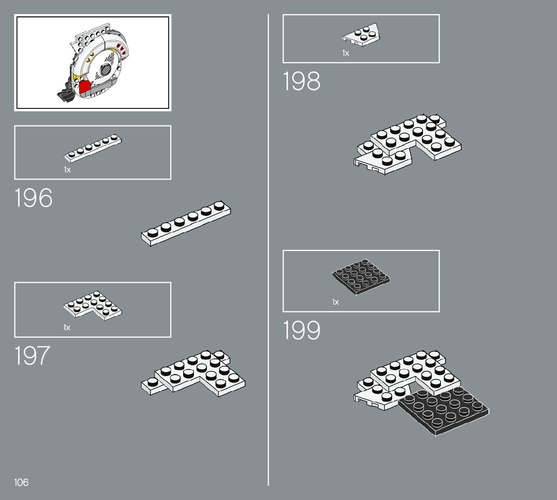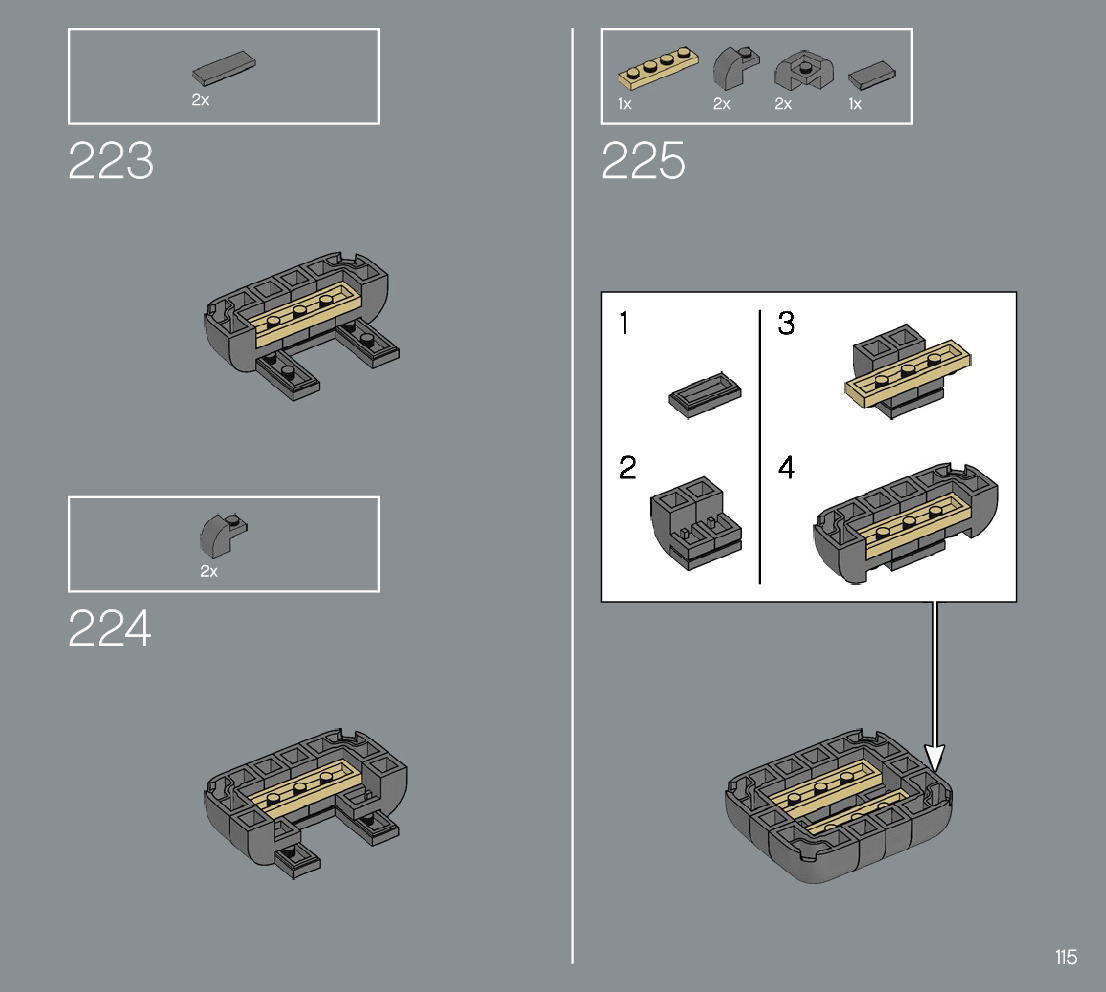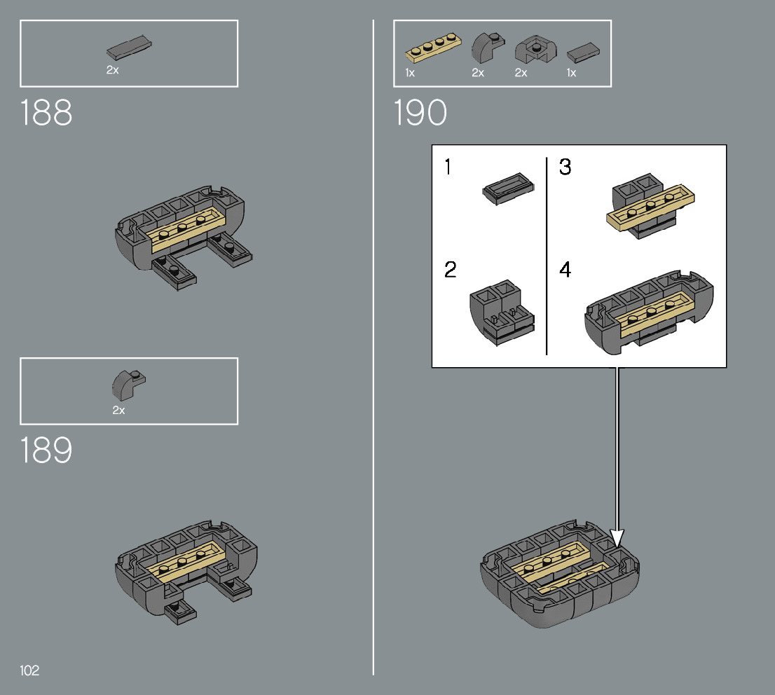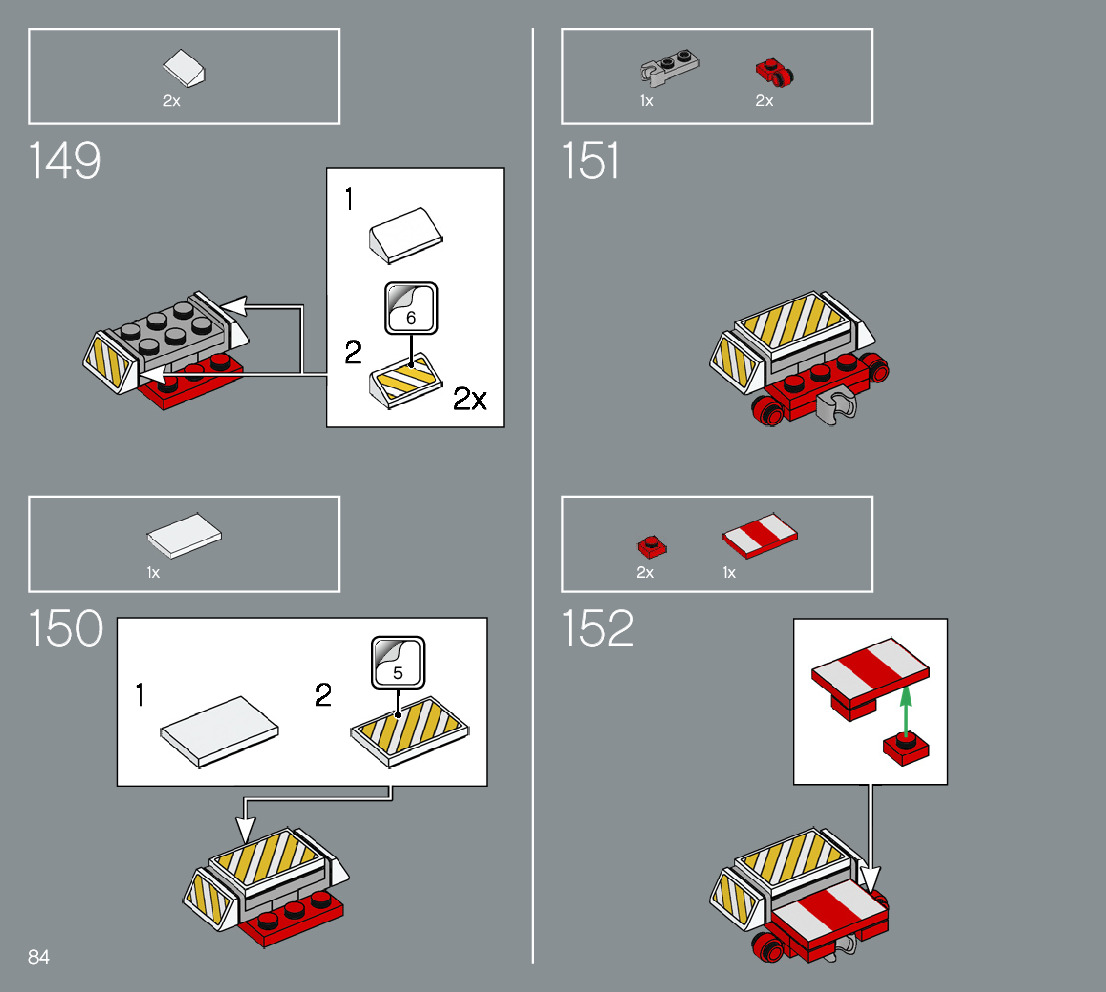 The assembly guide is prepared in a very understandable way for children and adult LEGO enthusiasts. A total of 128 picture galleries are shown, explaining the step-by-step construction stages for 1 different structures.