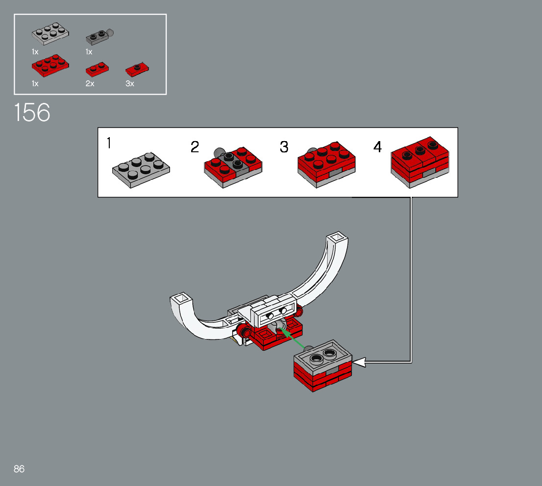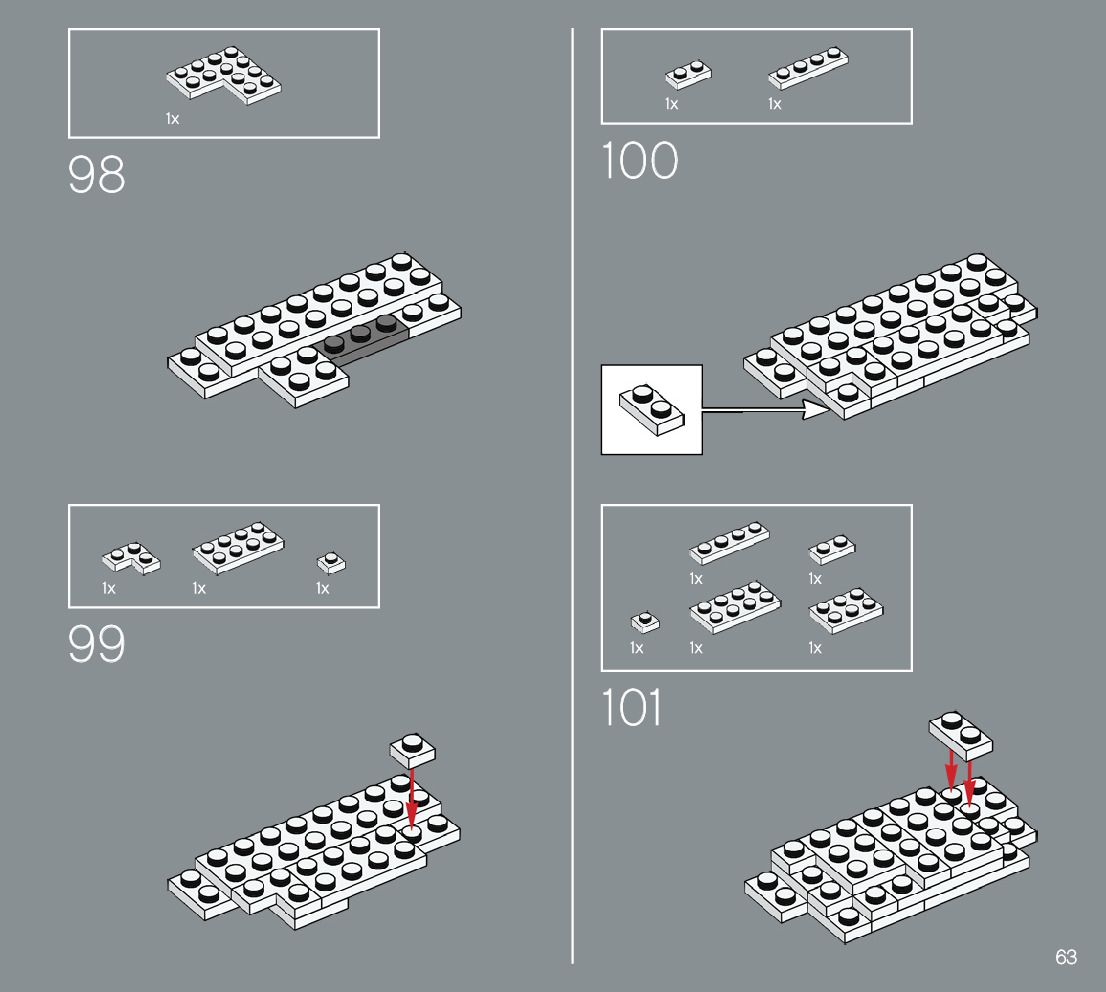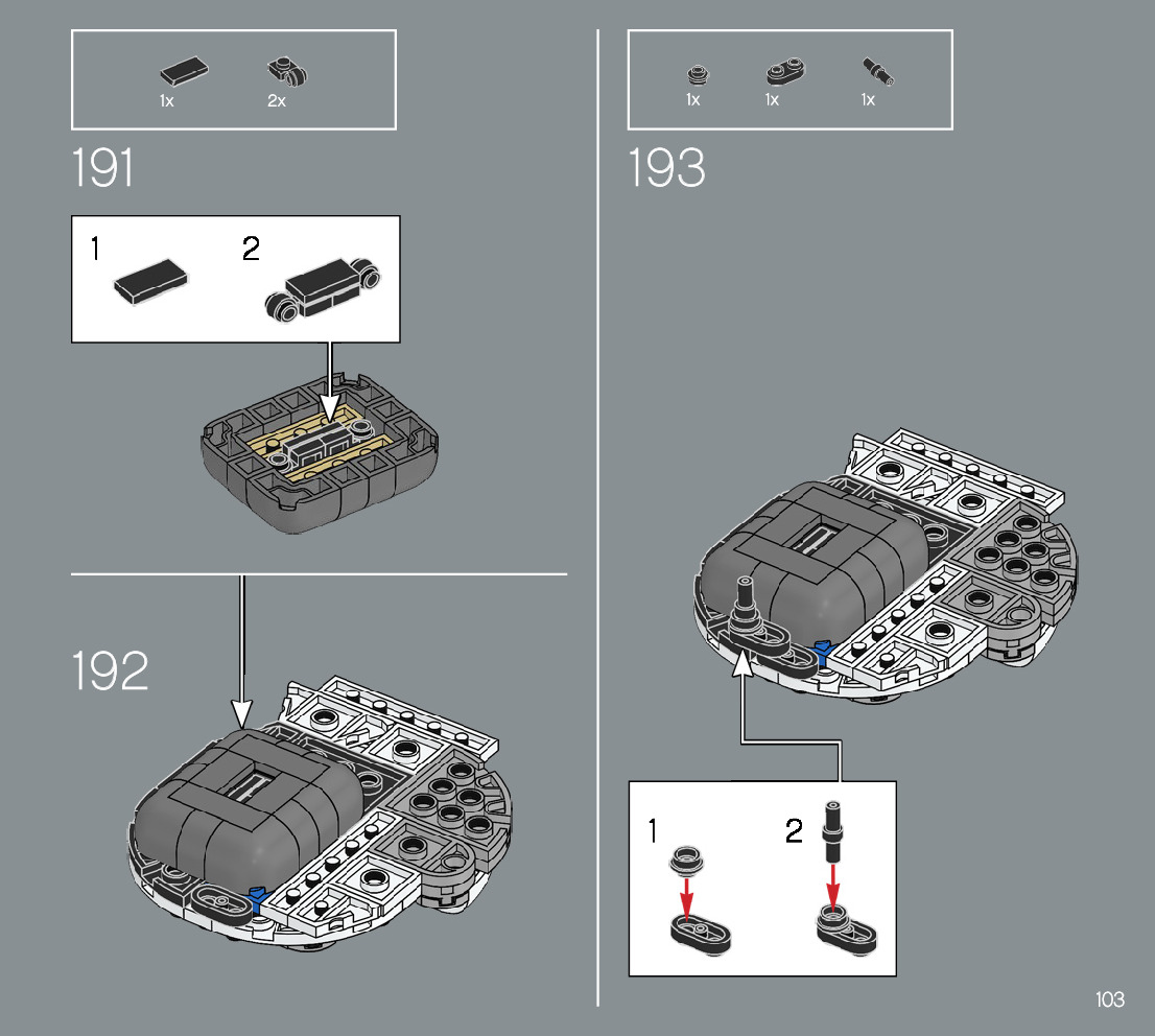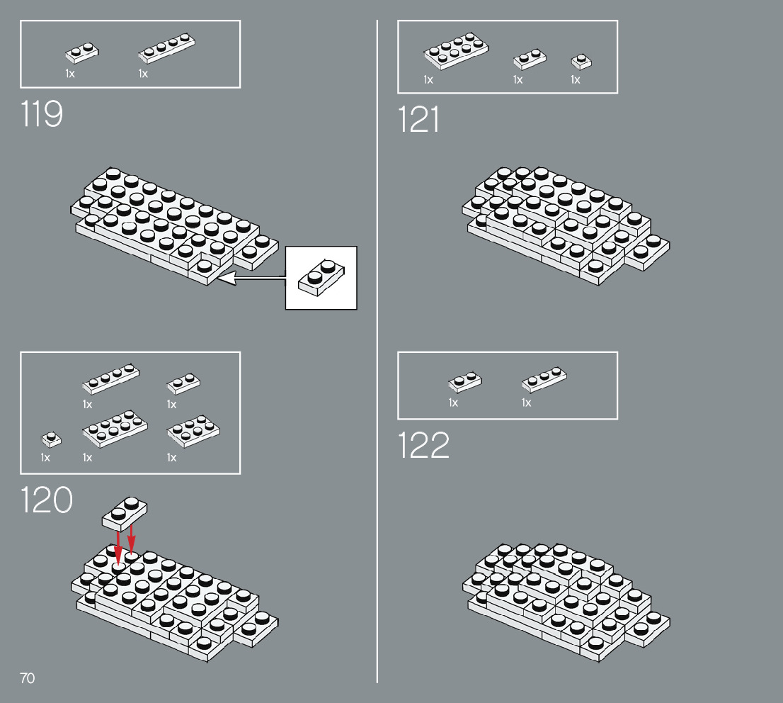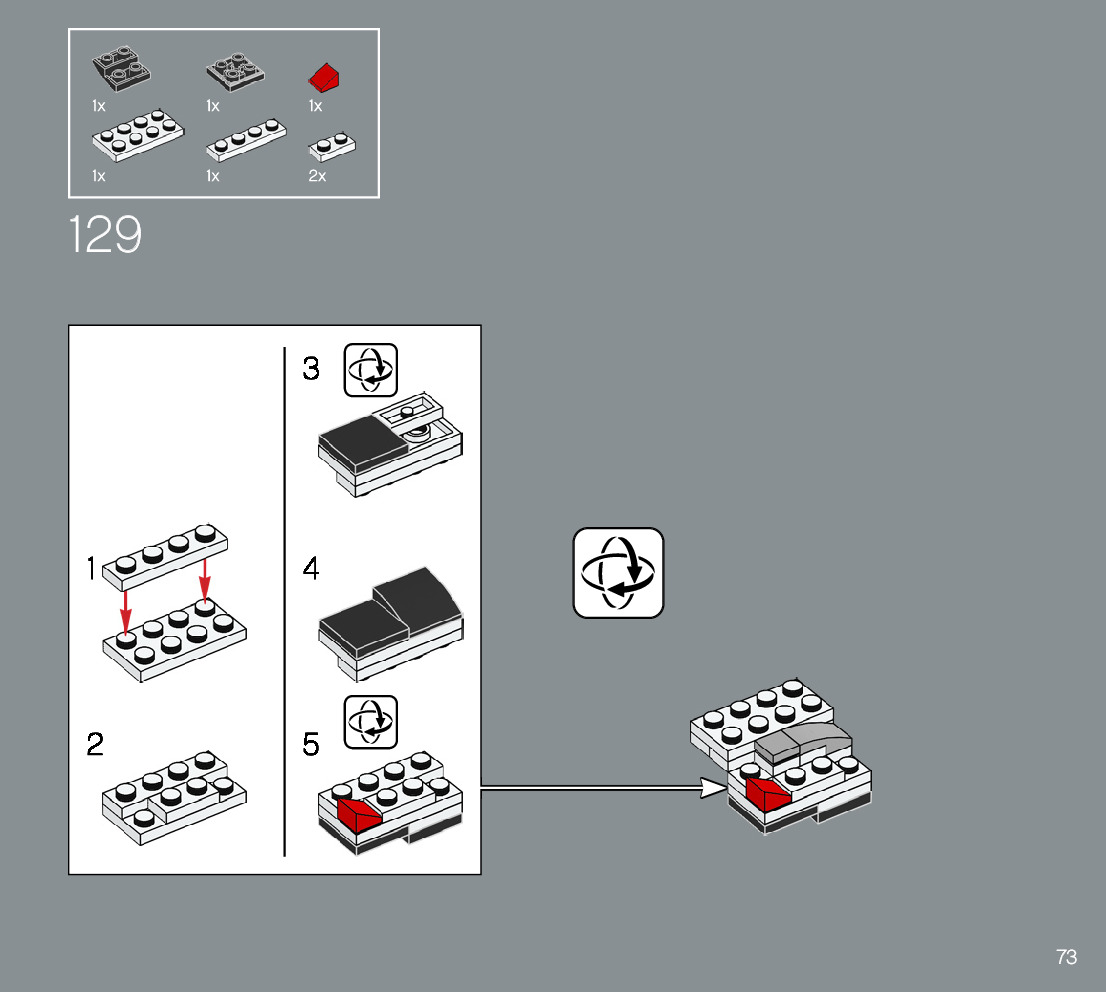 The assembly guide is prepared in a very understandable way for children and adult LEGO enthusiasts. A total of 128 picture galleries are shown, explaining the step-by-step construction stages for 1 different structures.