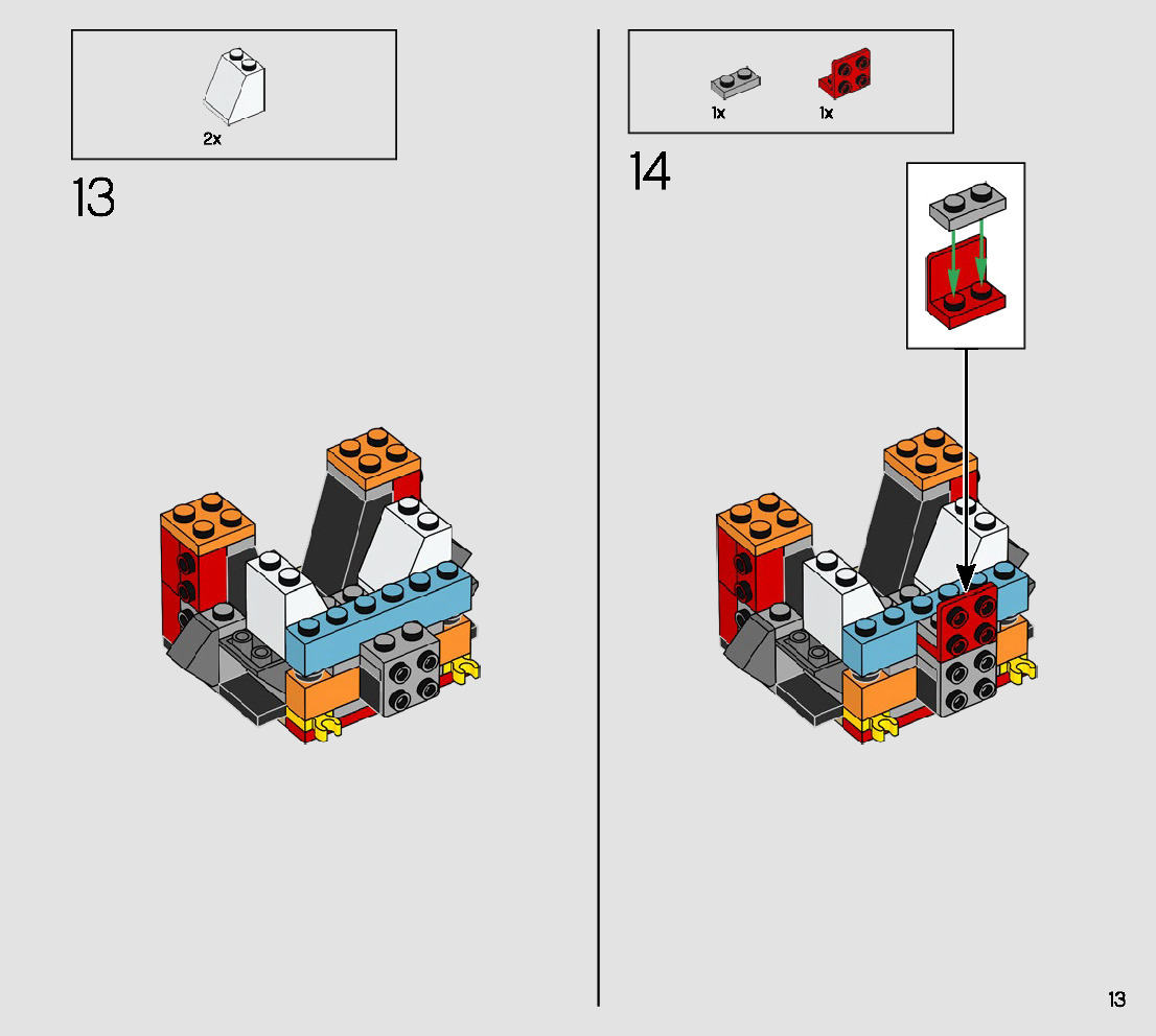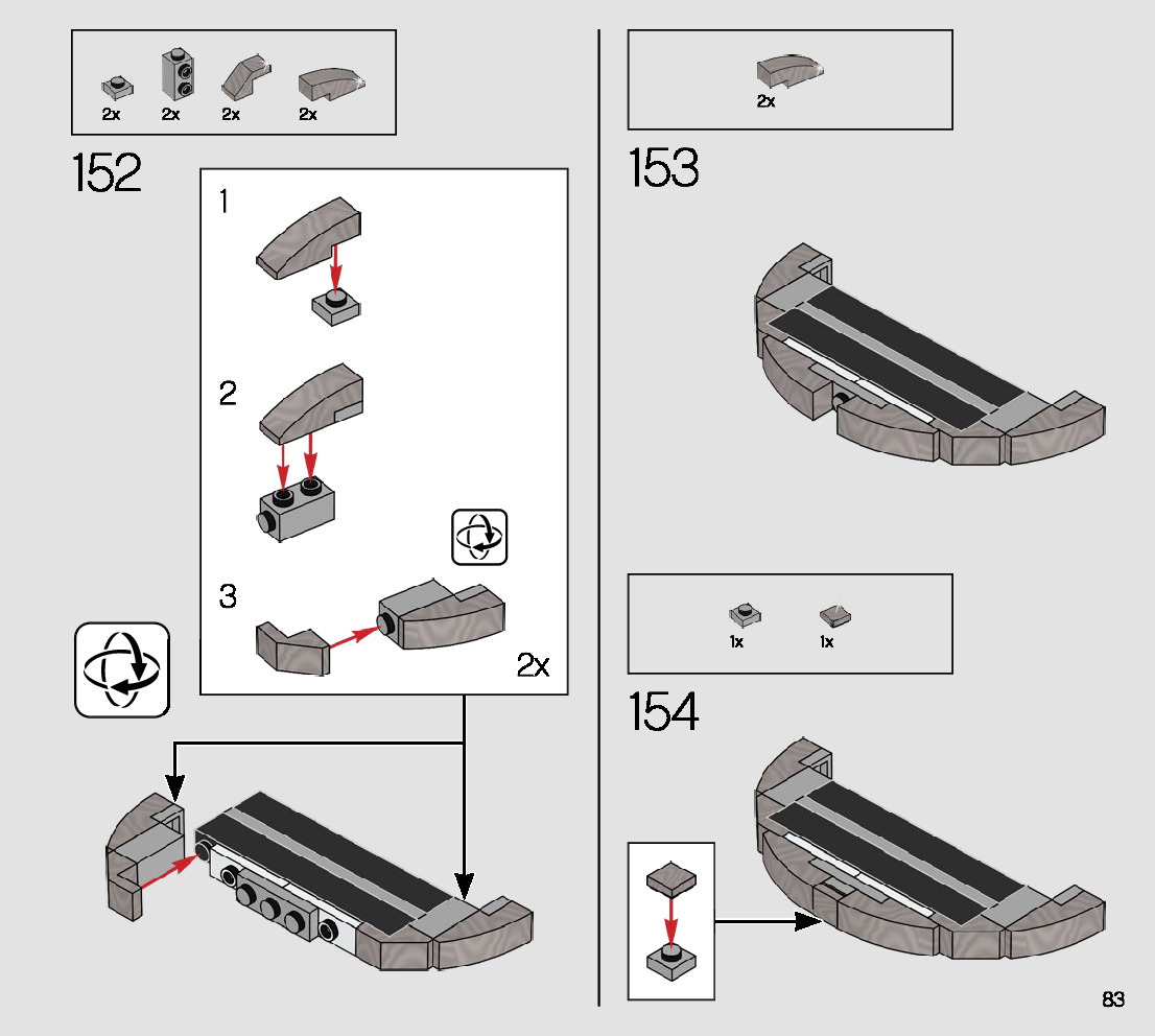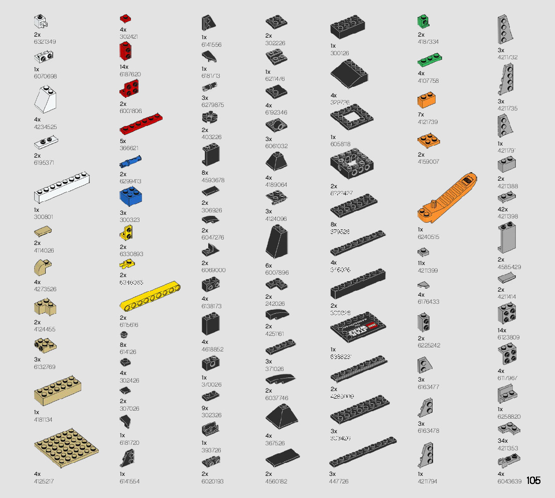 The assembly guide is prepared in a very understandable way for children and adult LEGO enthusiasts. A total of 108 picture galleries are shown, explaining the step-by-step construction stages for 1 different structures.